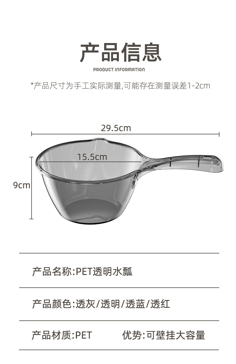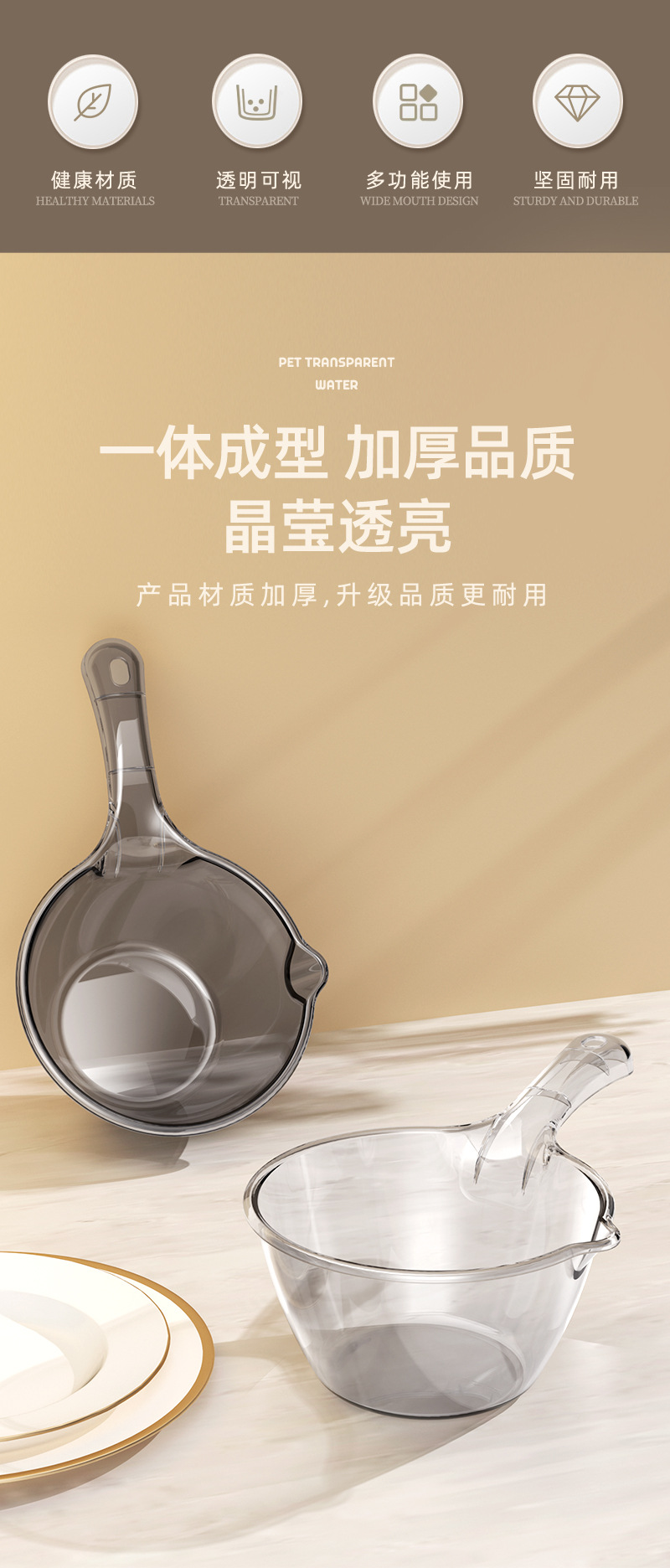 PET加厚透明家用厨房长柄水瓢带嘴水勺摔不烂塑料洗头水舀子