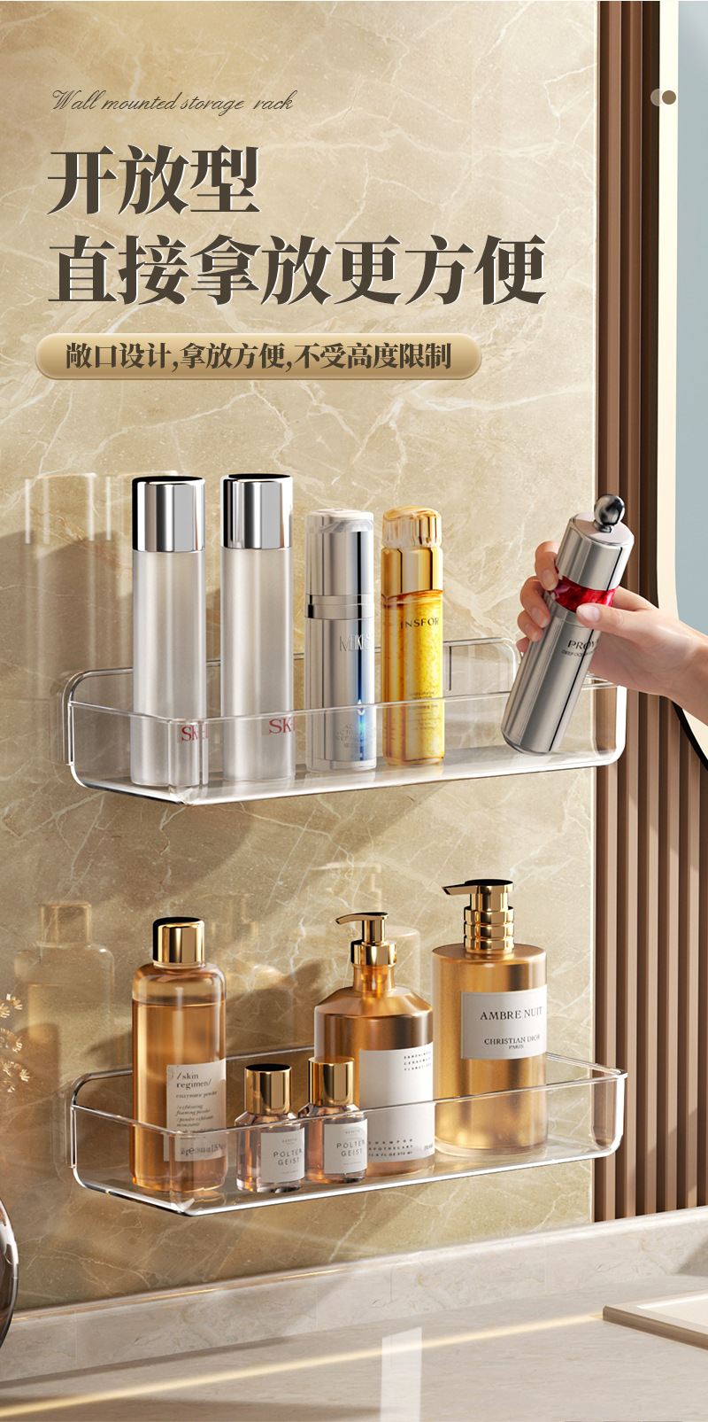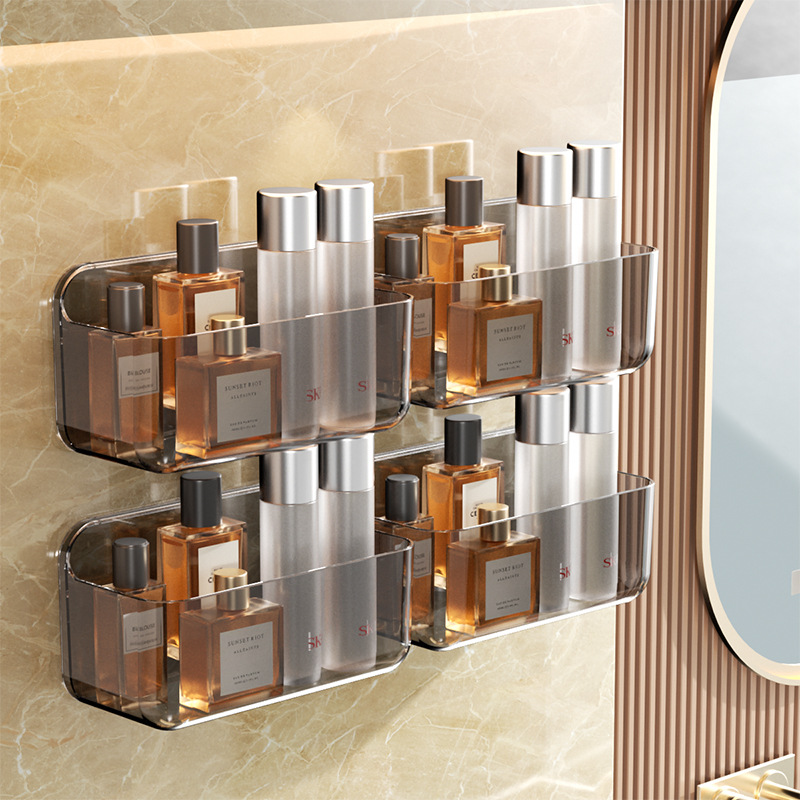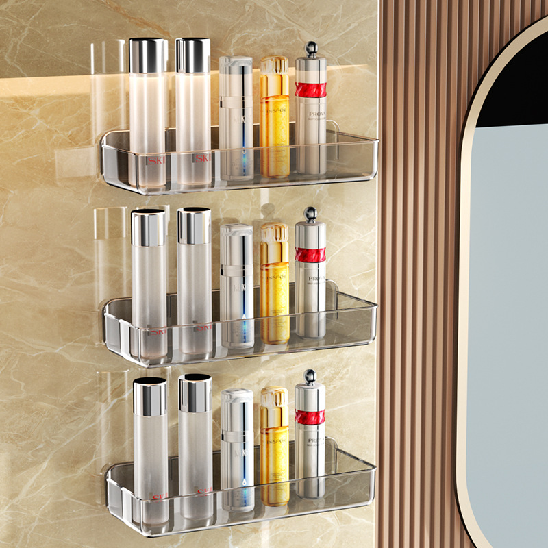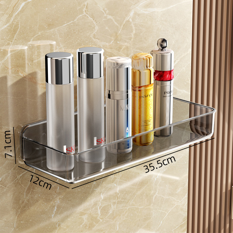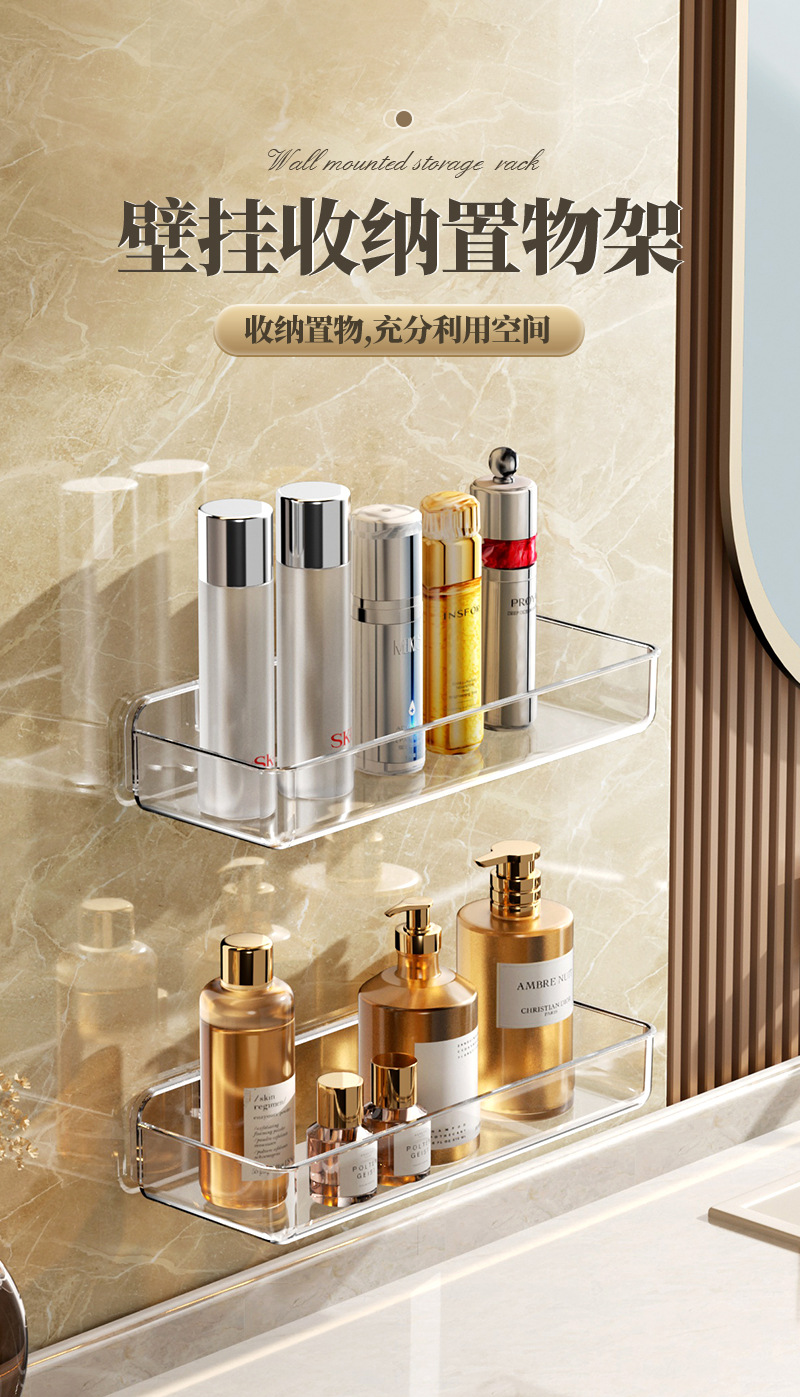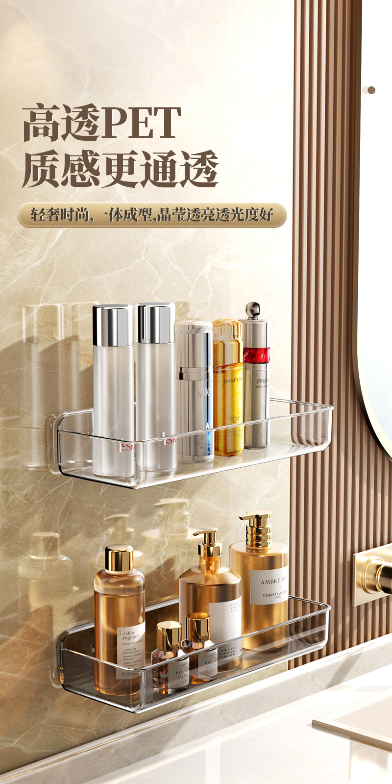 墙壁挂式卫生间置物架 厚实PET塑料上墙化妆品置物架底部过滤水孔