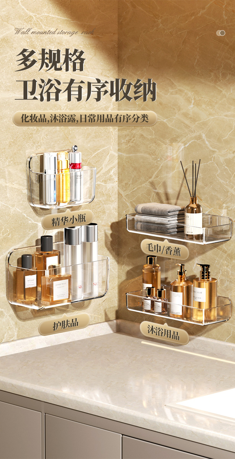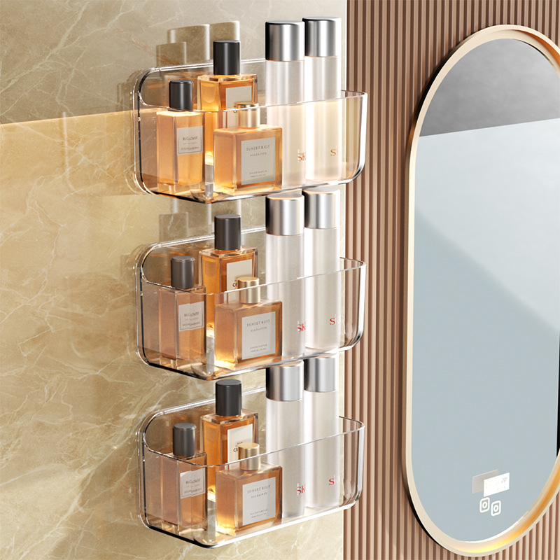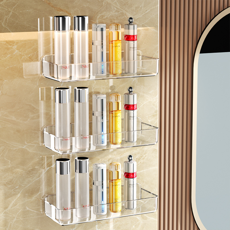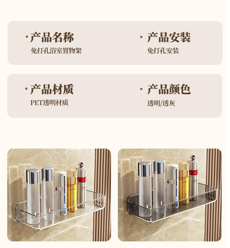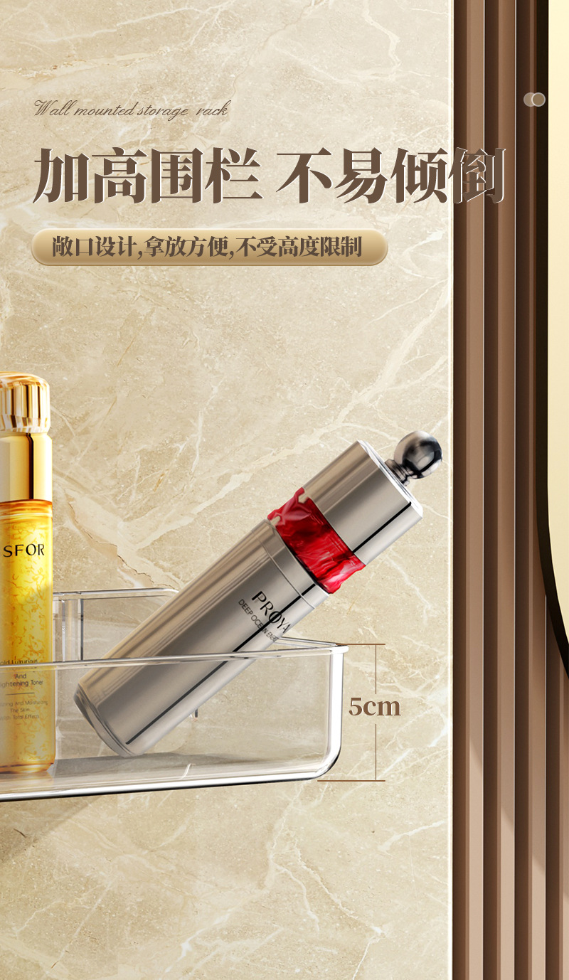 墙壁挂式卫生间置物架 厚实PET塑料上墙化妆品置物架底部过滤水孔