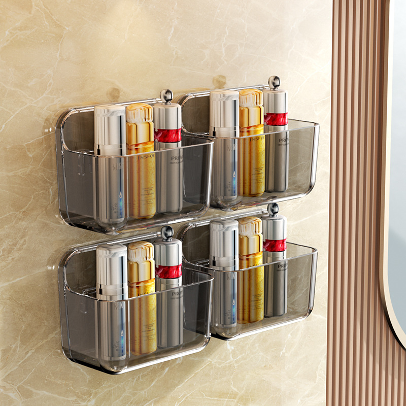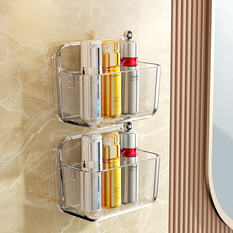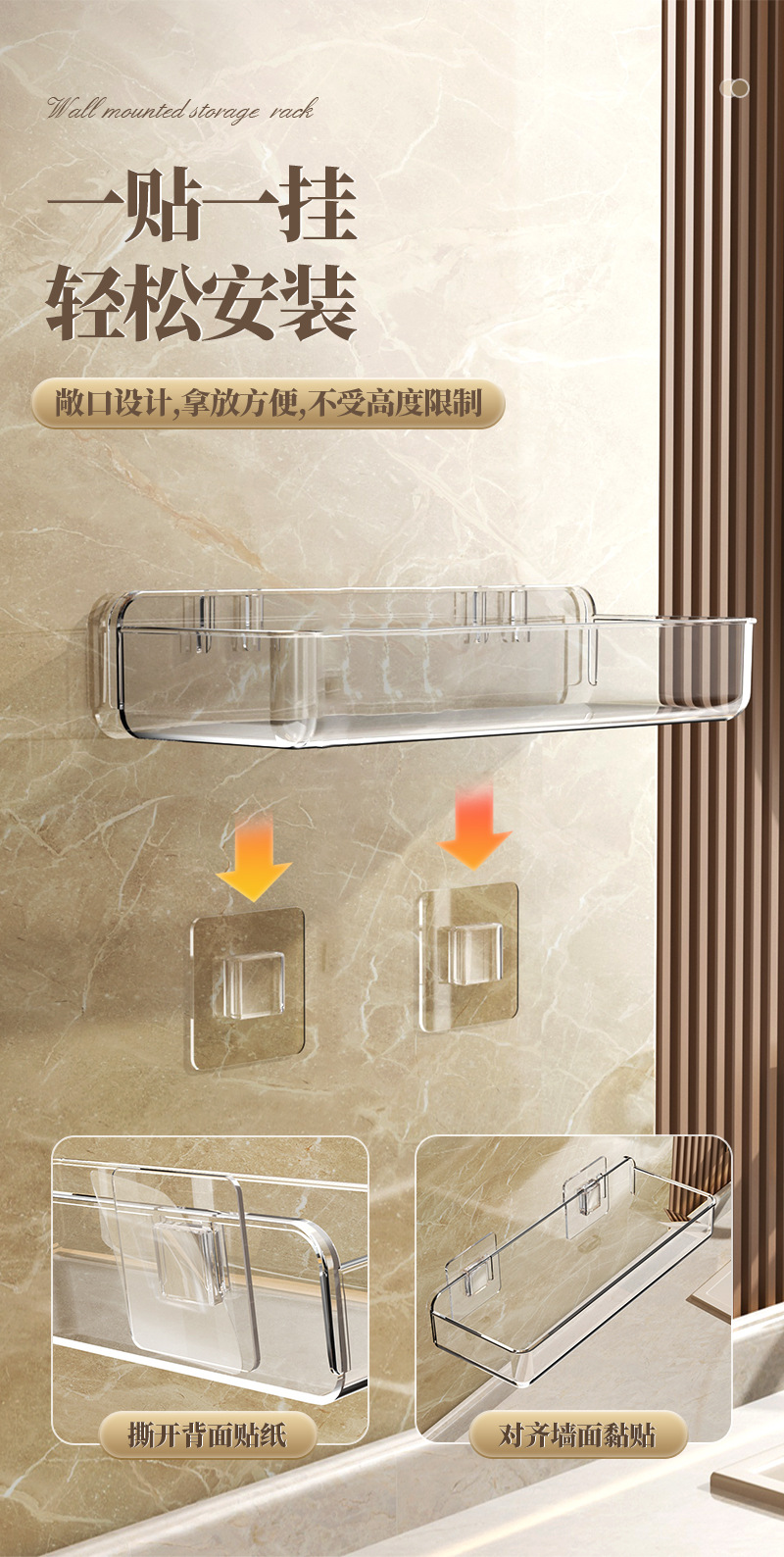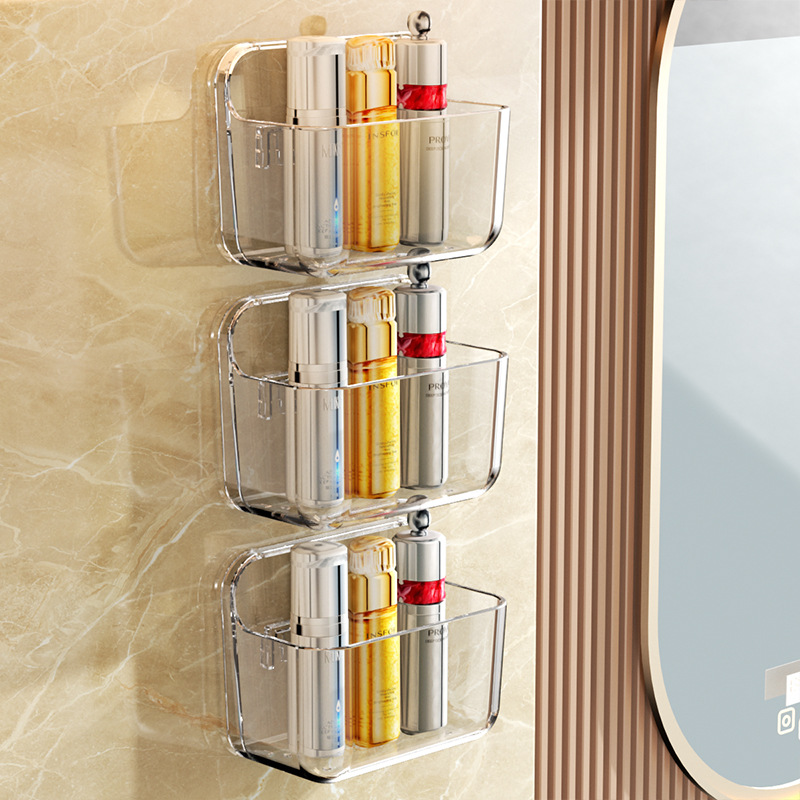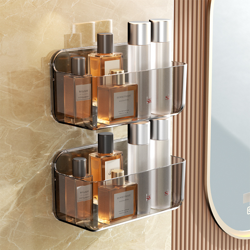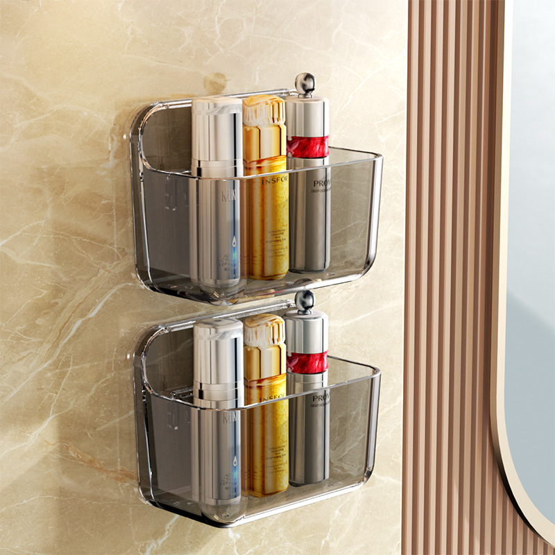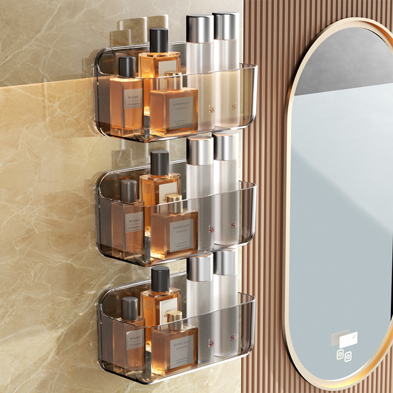 墙壁挂式卫生间置物架 厚实PET塑料上墙化妆品置物架底部过滤水孔