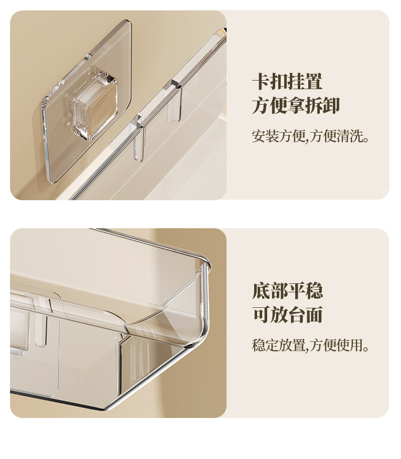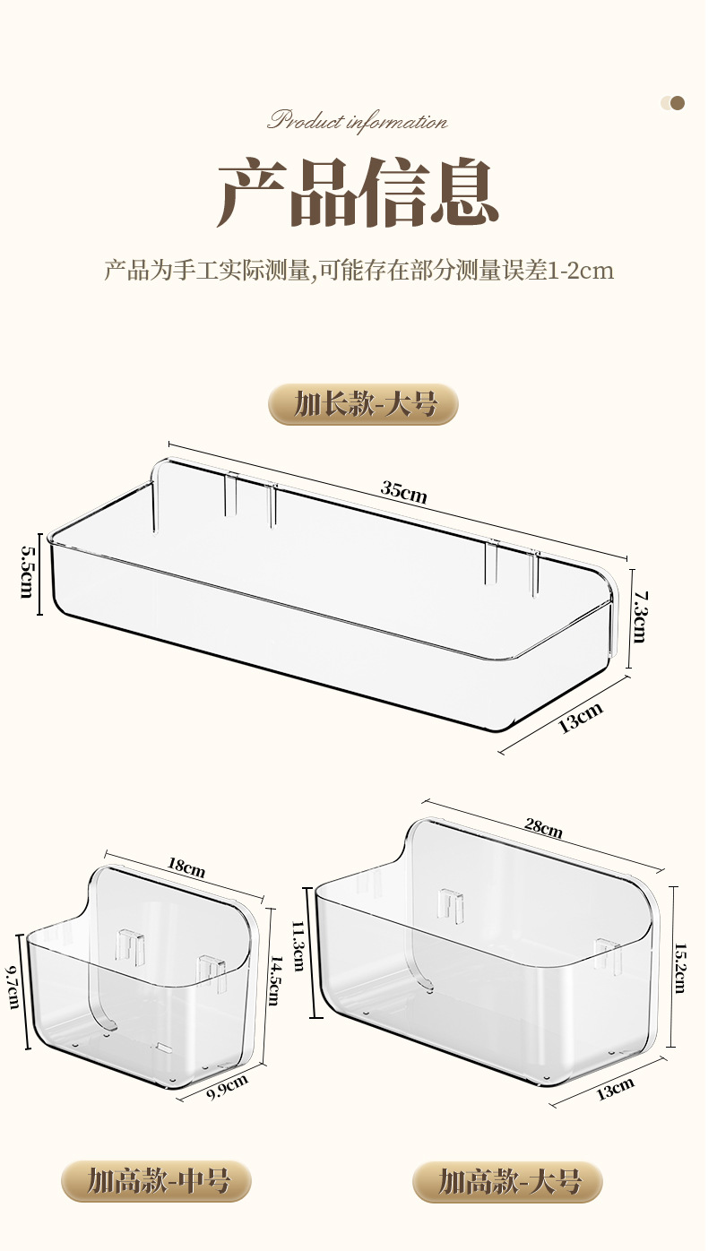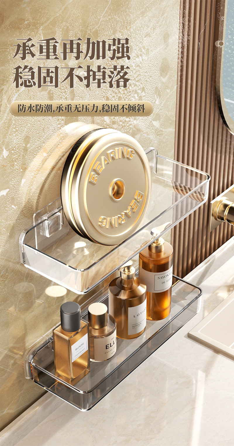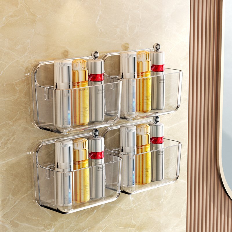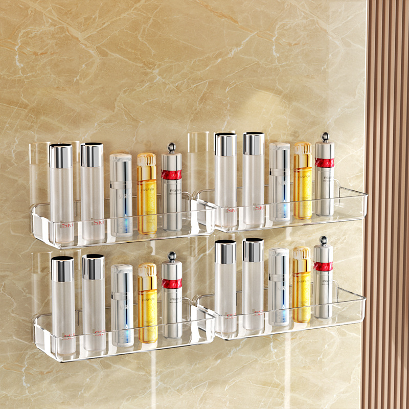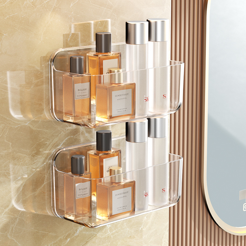 墙壁挂式卫生间置物架 厚实PET塑料上墙化妆品置物架底部过滤水孔