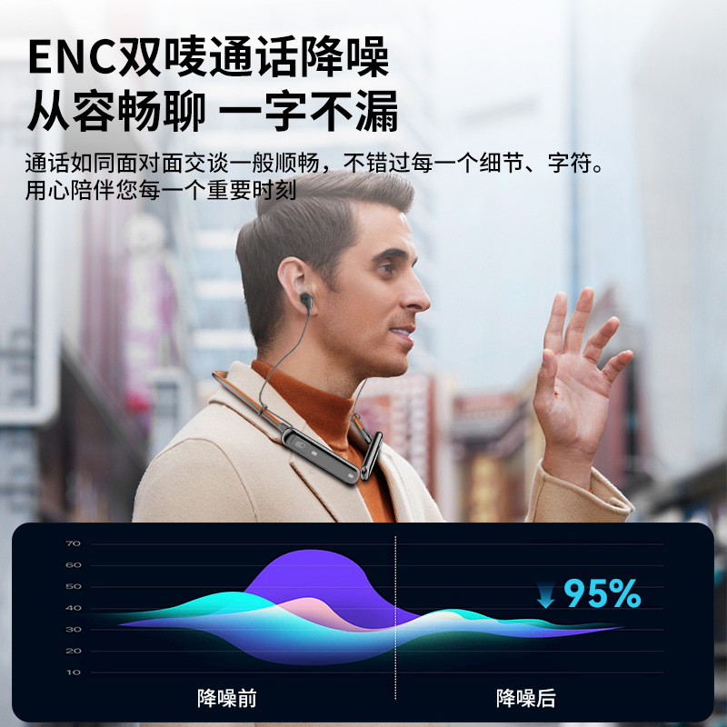 2024新款挂脖式无线蓝牙耳机智能降噪支持语音操作长续航运动耳机