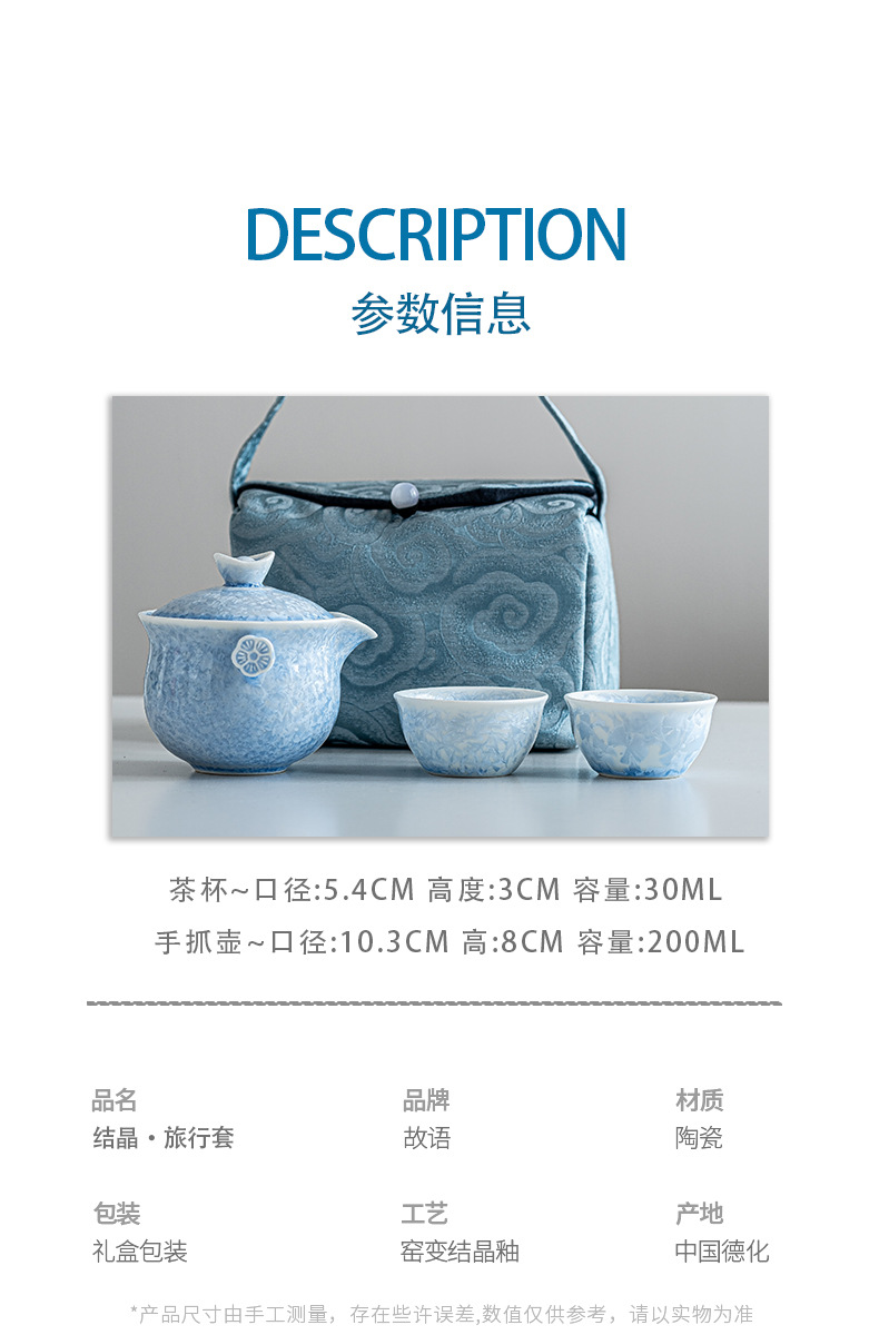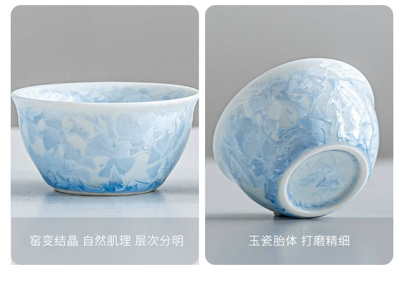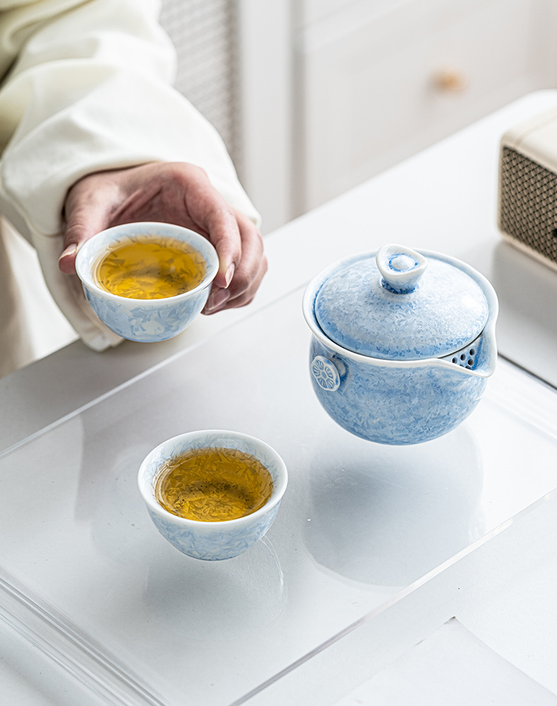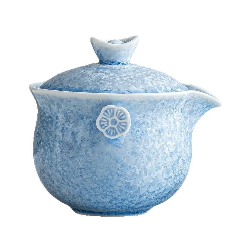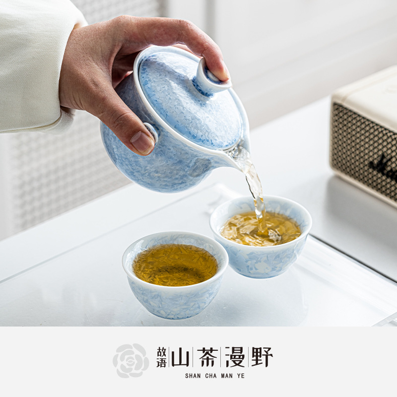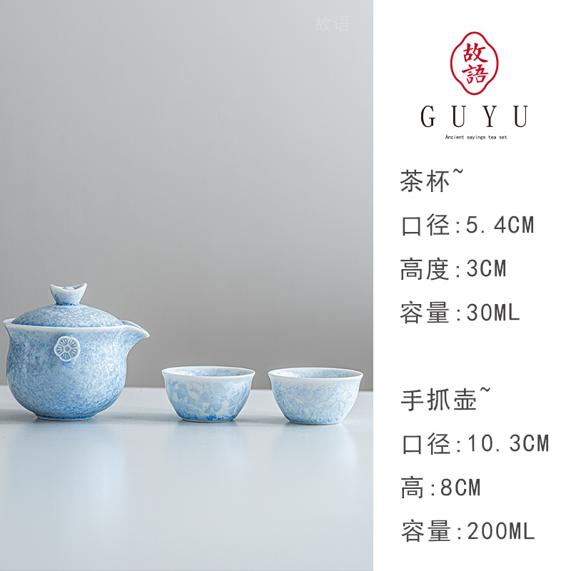 窑变结晶釉冰晶蓝高温茶具手抓壶茶杯一壶二杯功夫茶具旅行套装