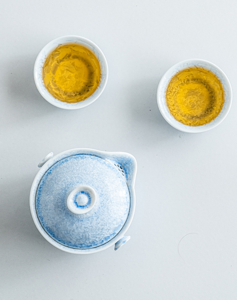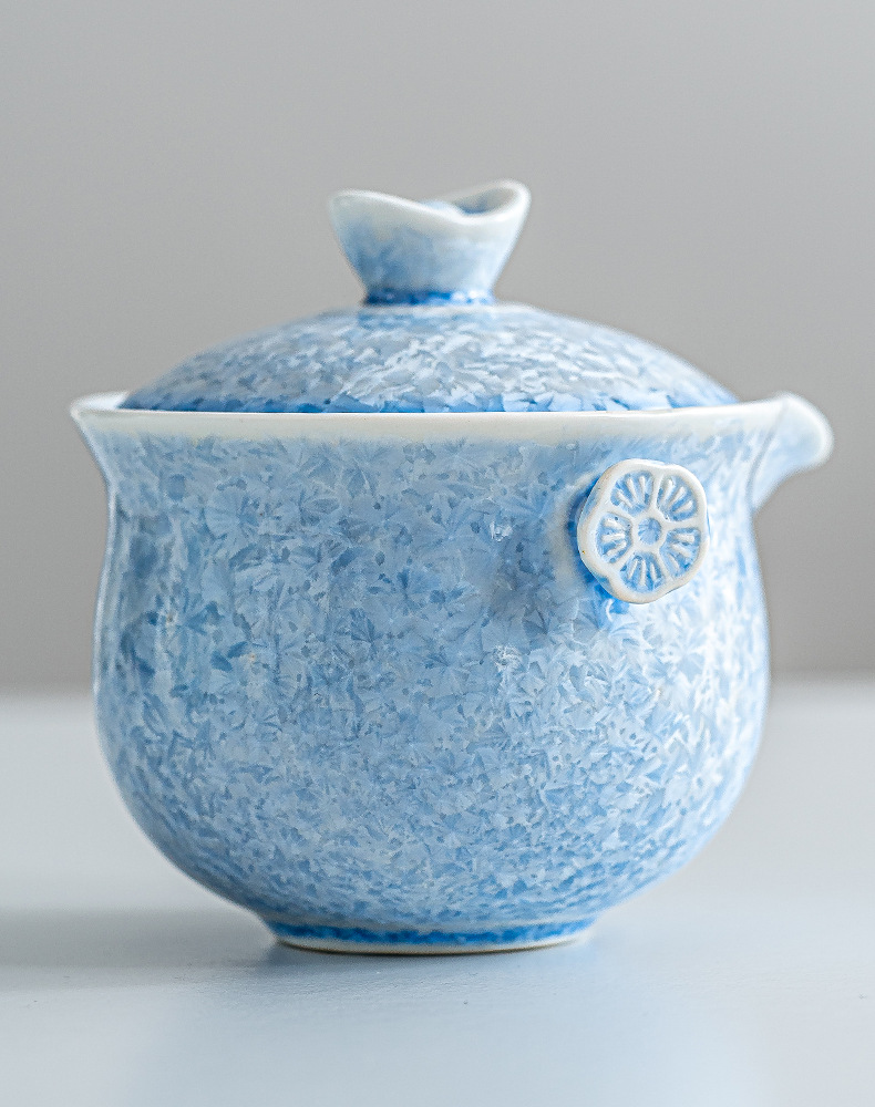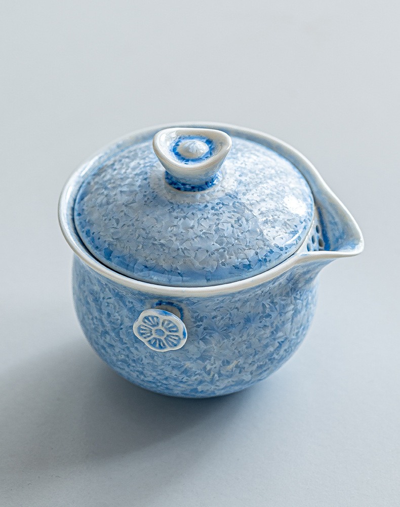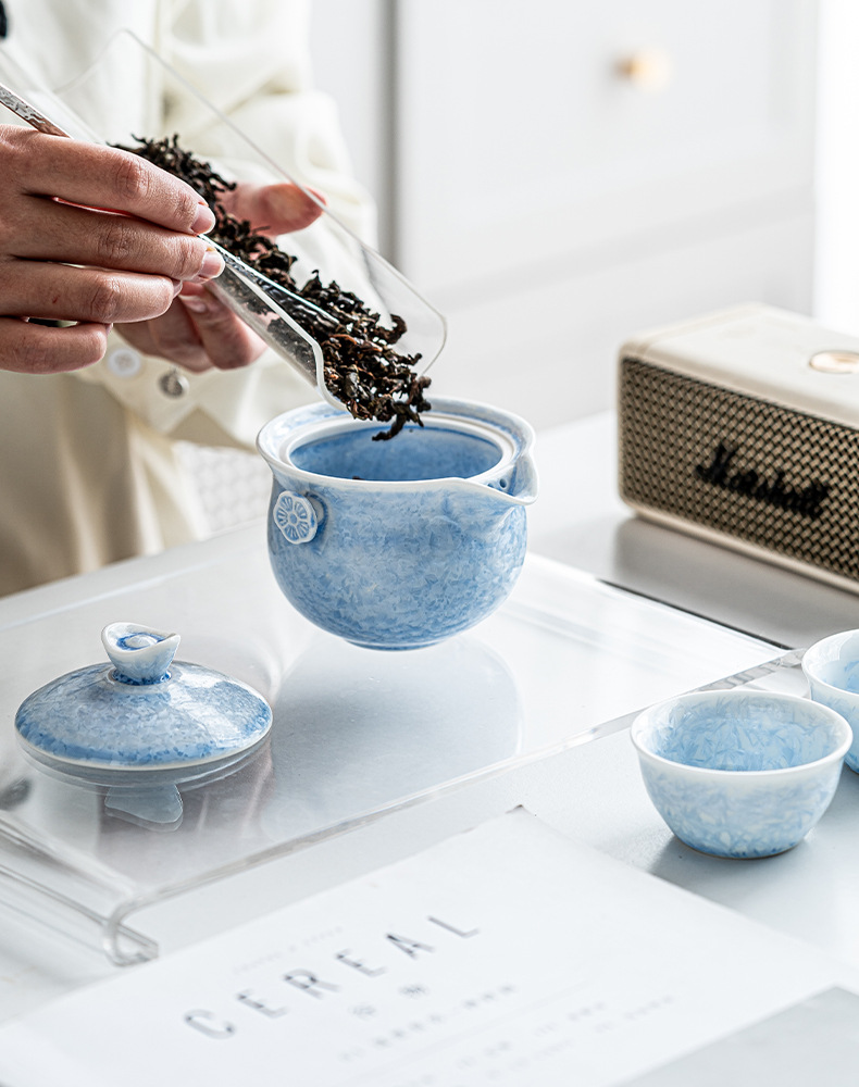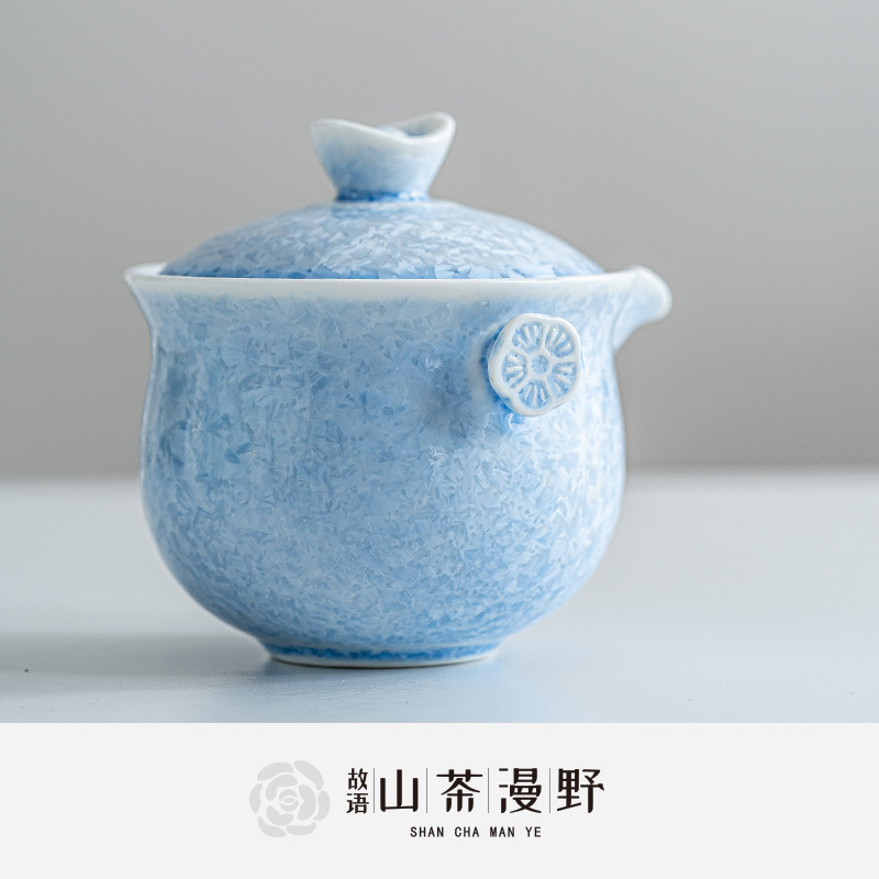 窑变结晶釉冰晶蓝高温茶具手抓壶茶杯一壶二杯功夫茶具旅行套装
