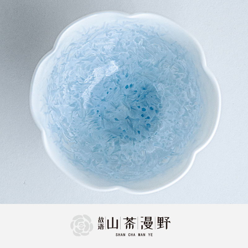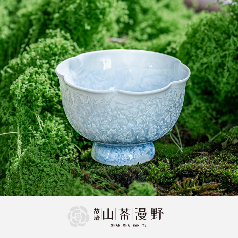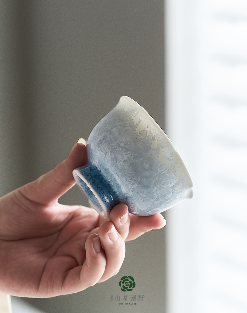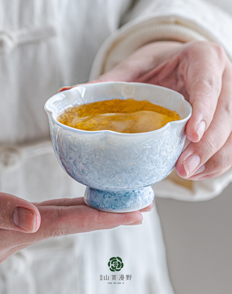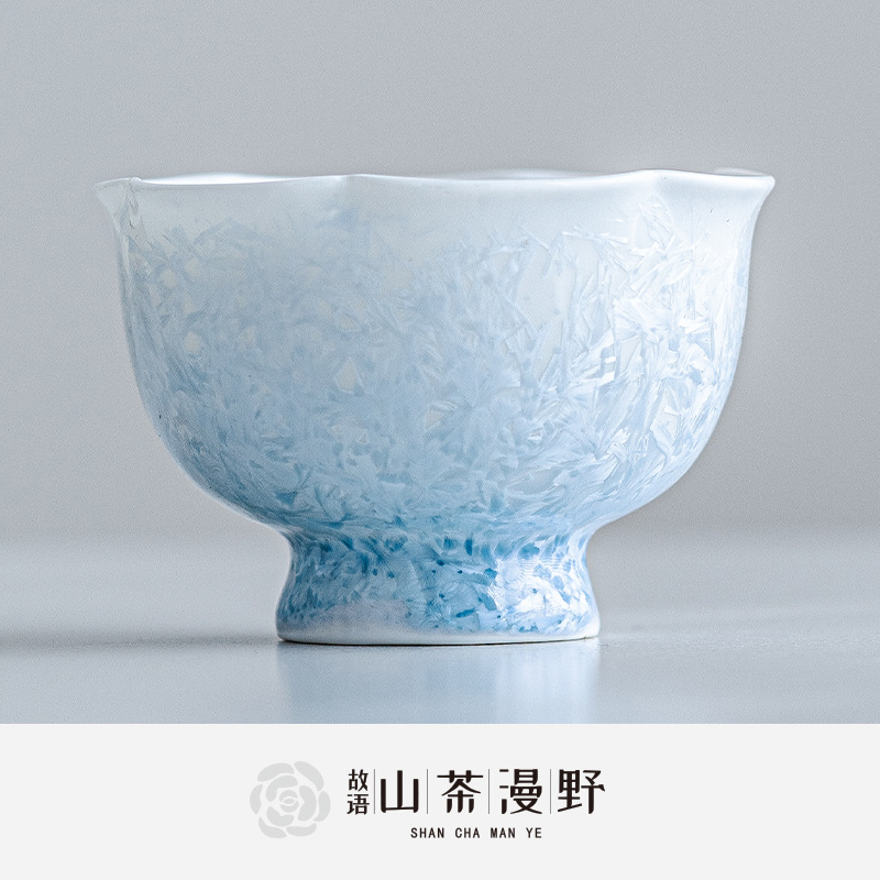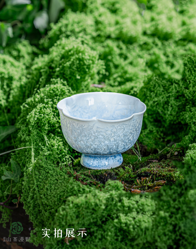 窑变结晶釉冰晶蓝花口杯主人杯茶杯单杯陶瓷喝茶品茗杯功夫茶盏