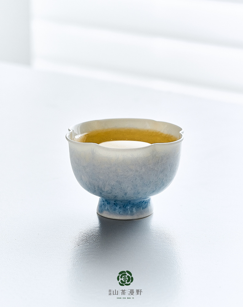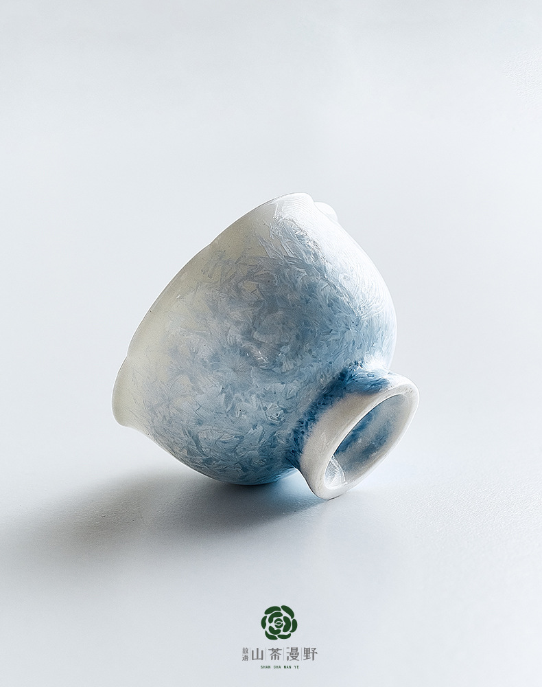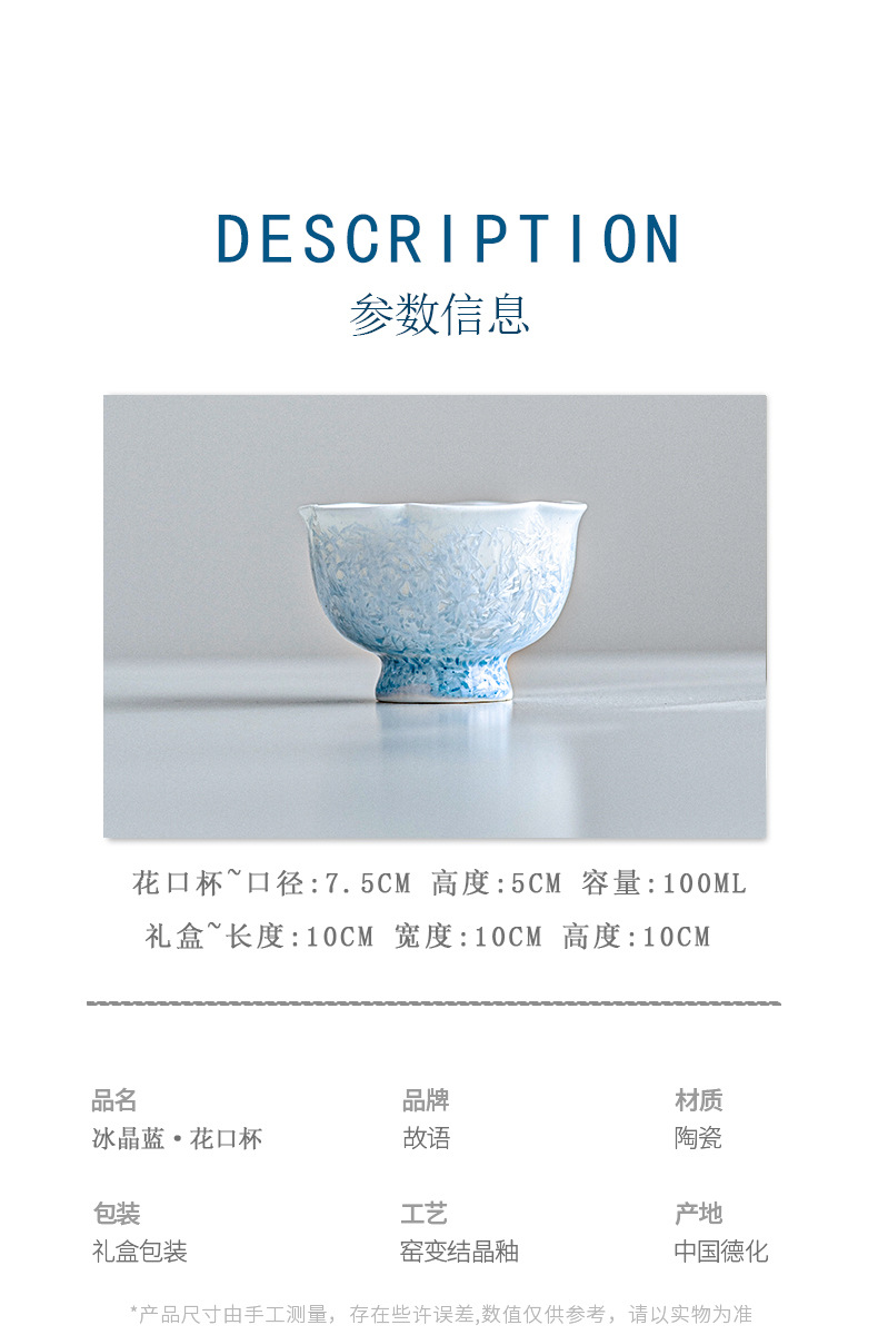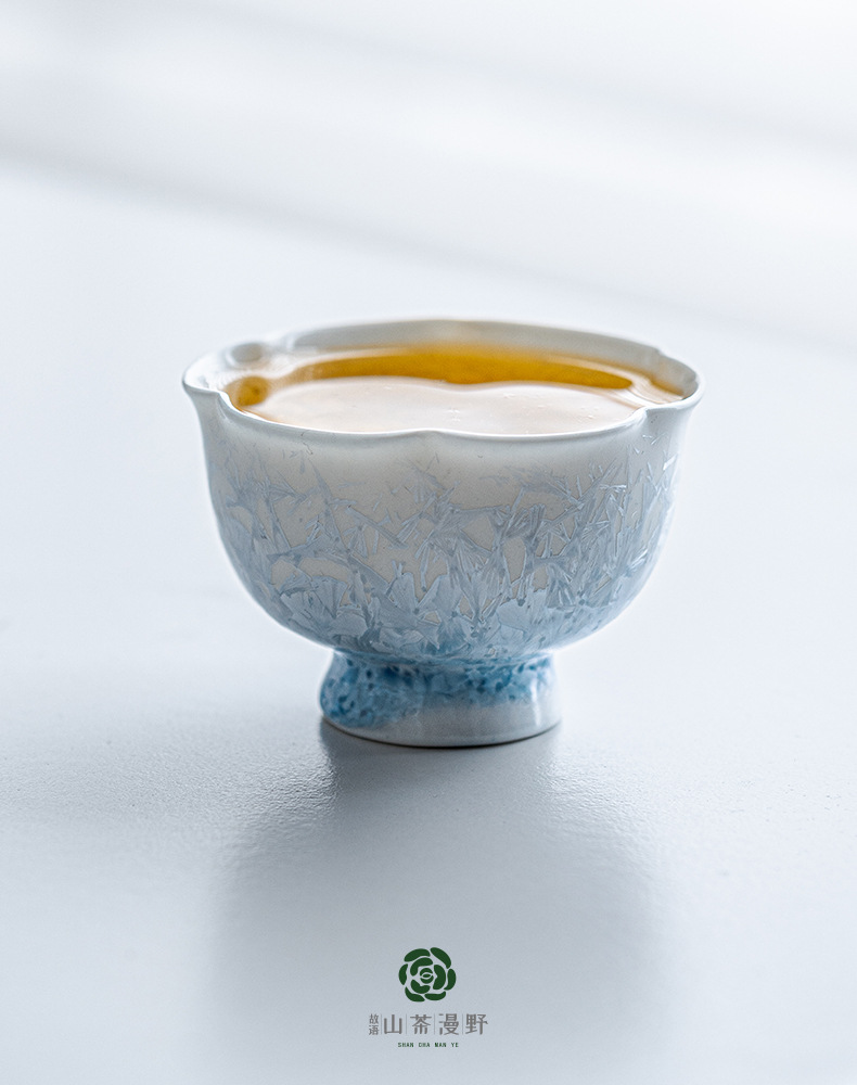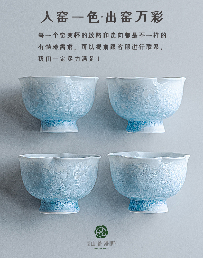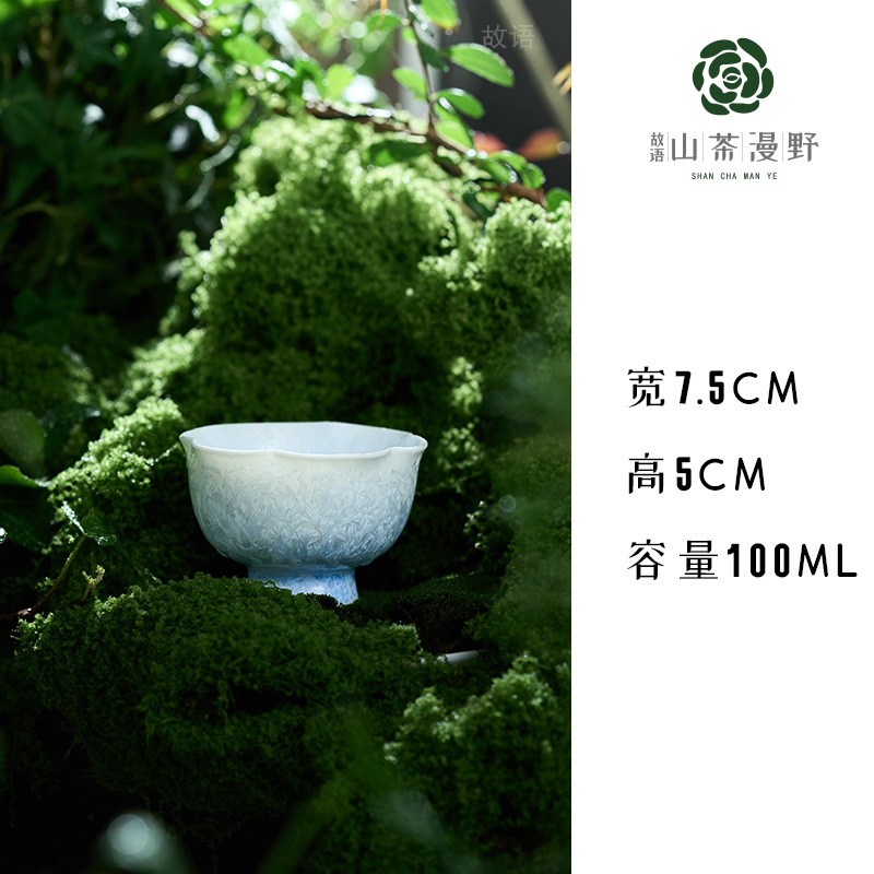 窑变结晶釉冰晶蓝花口杯主人杯茶杯单杯陶瓷喝茶品茗杯功夫茶盏