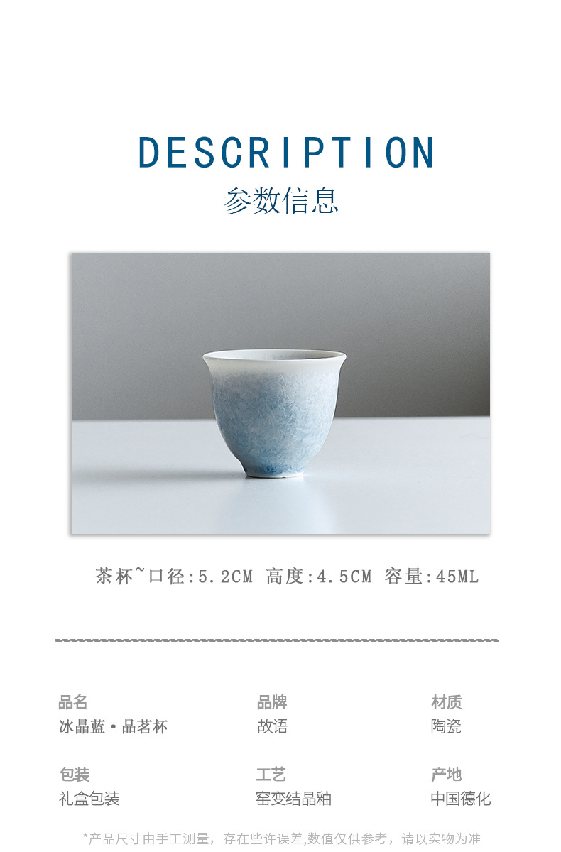 窑变结晶釉茶杯冰晶蓝客杯个人专用品茗杯喝茶单杯功夫茶具茶盏