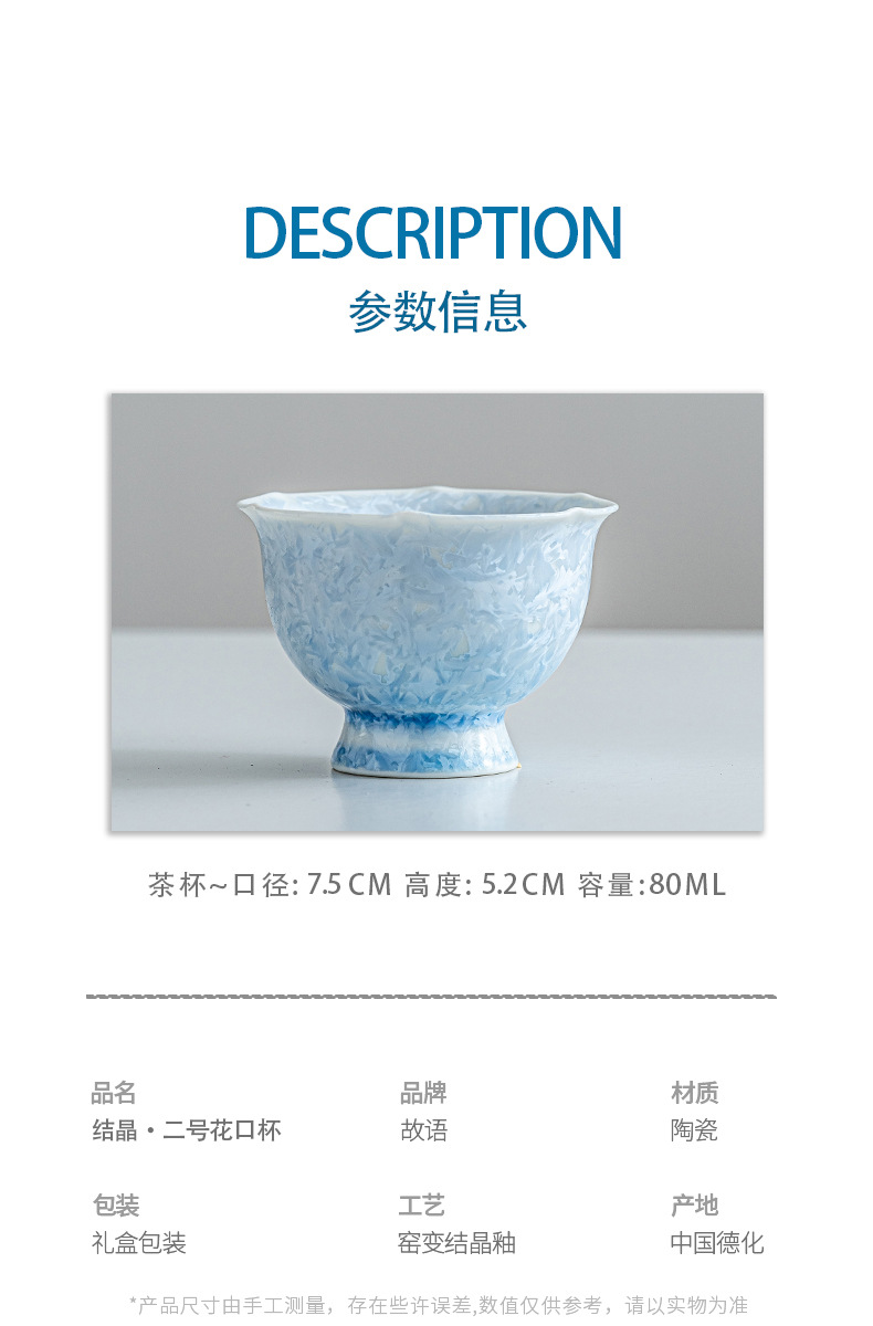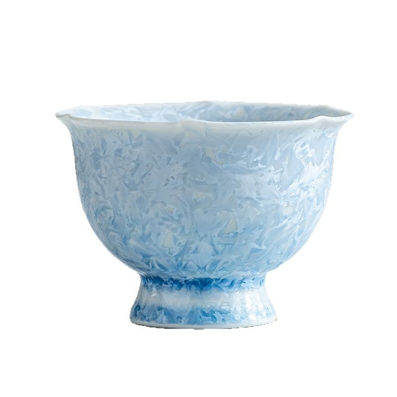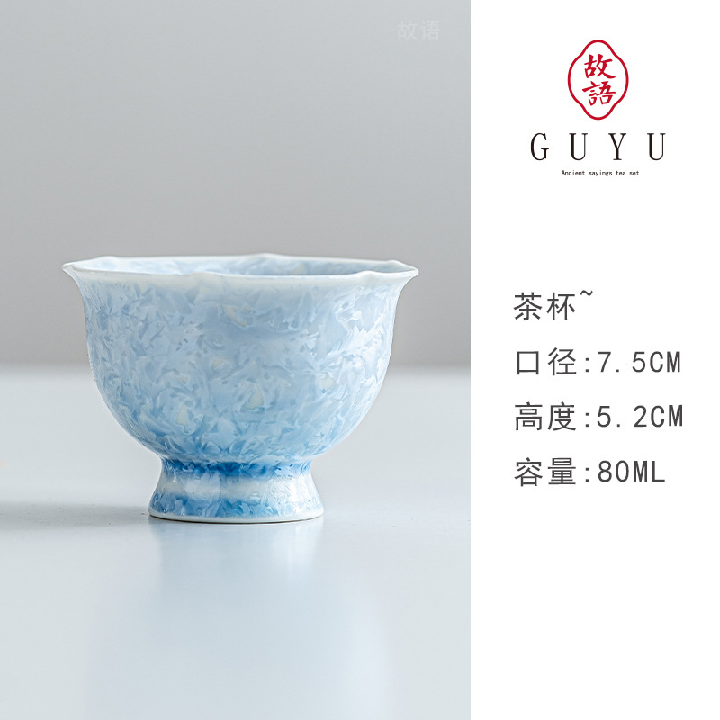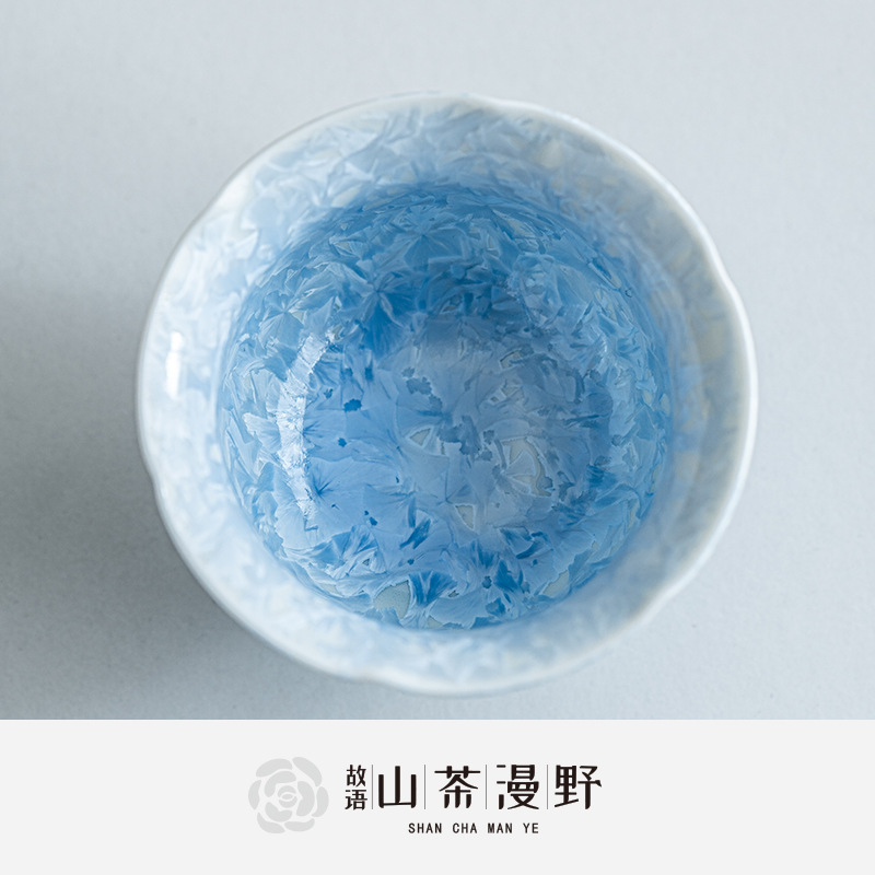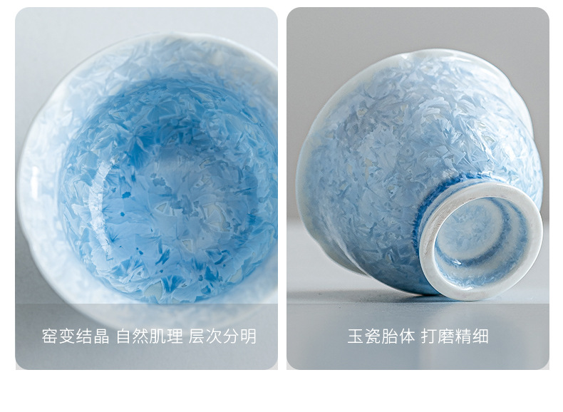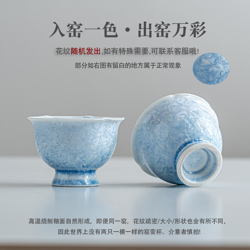 窑变结晶釉冰晶蓝花口杯茶杯主人杯个人专用功夫茶具茶盏品茗杯