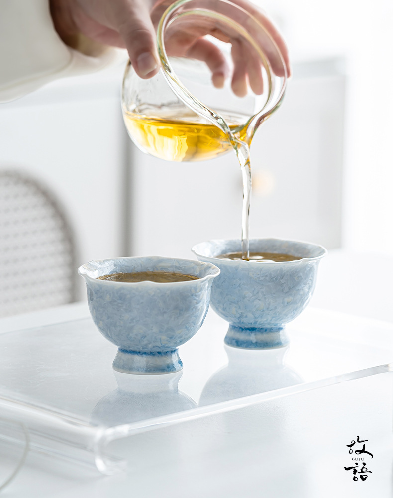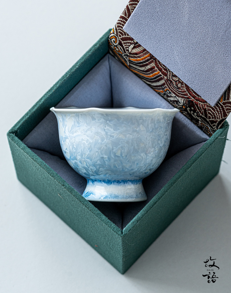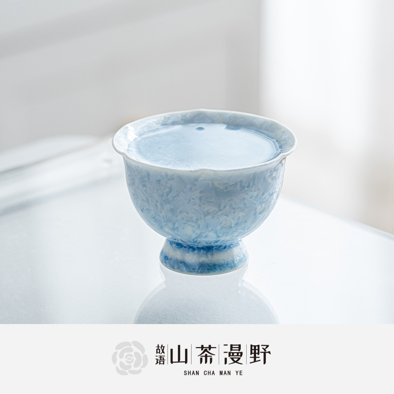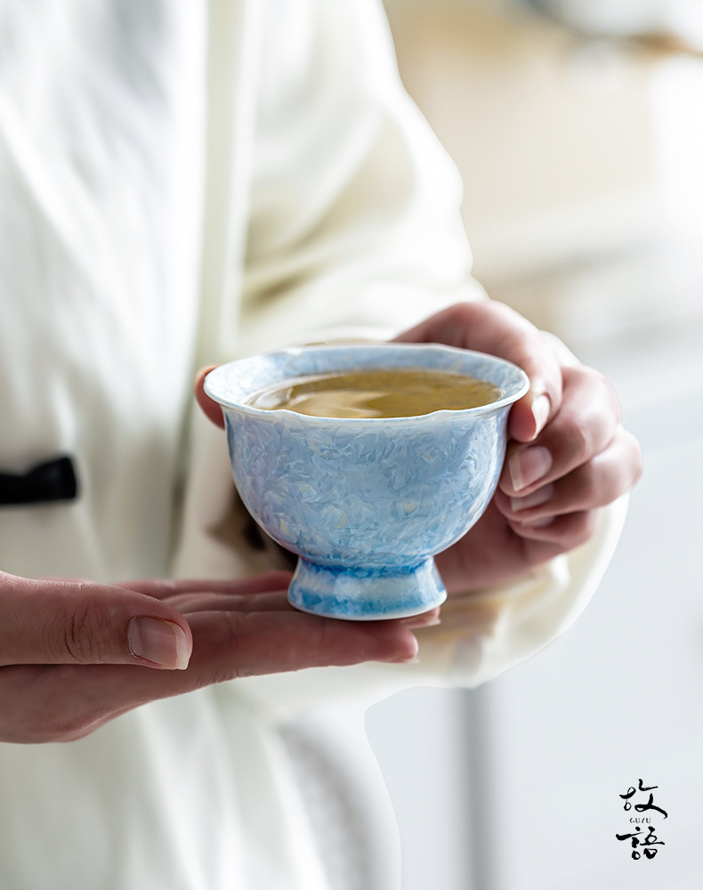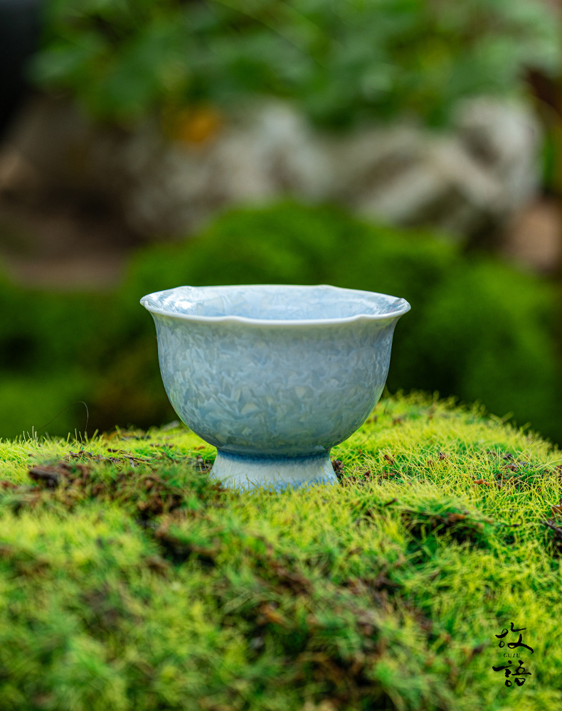 窑变结晶釉冰晶蓝花口杯茶杯主人杯个人专用功夫茶具茶盏品茗杯