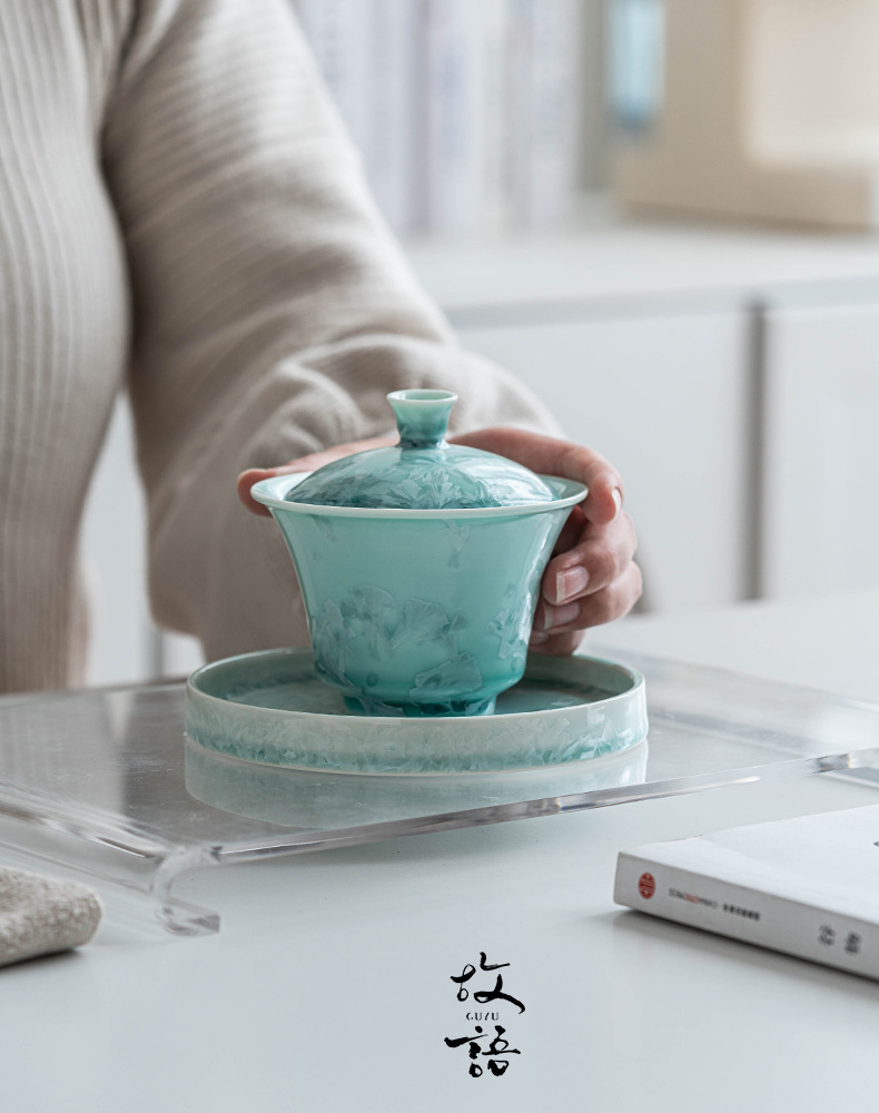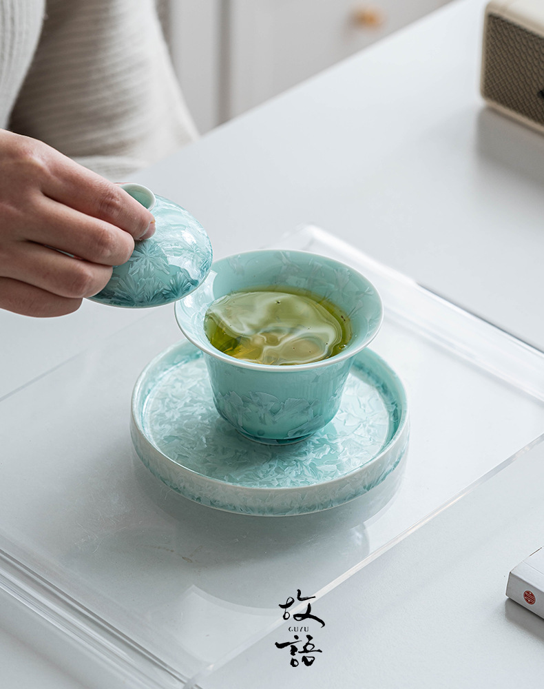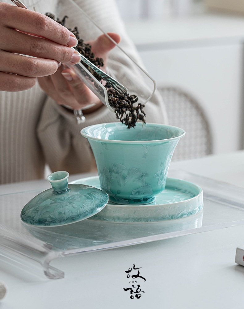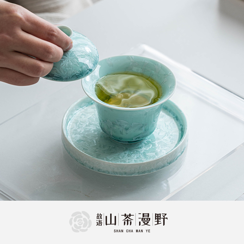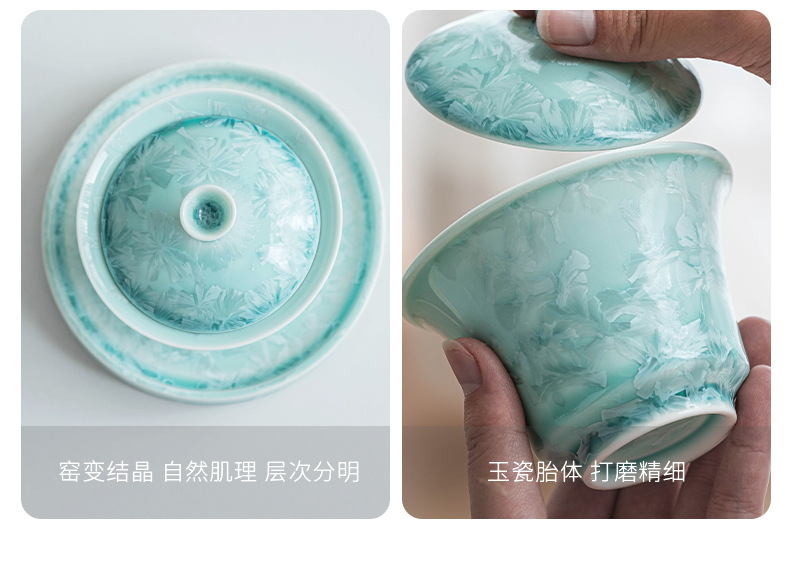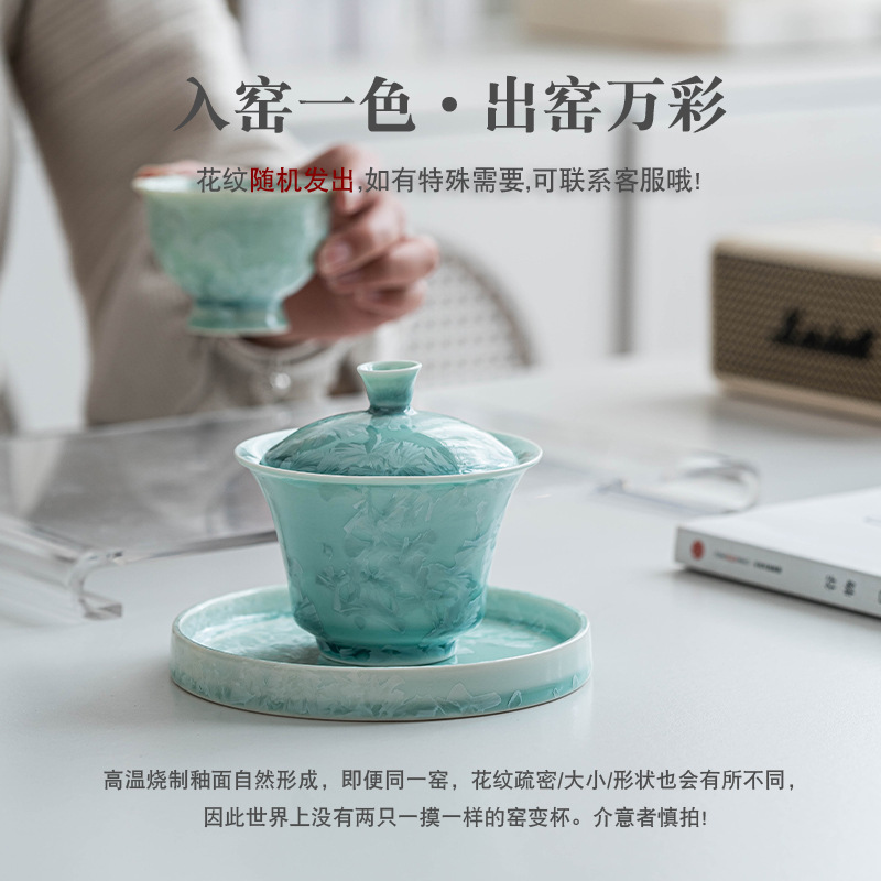 窑变结晶釉三才盖碗陶瓷功夫茶具单个大号泡茶盖碗家用茶具盖碗
