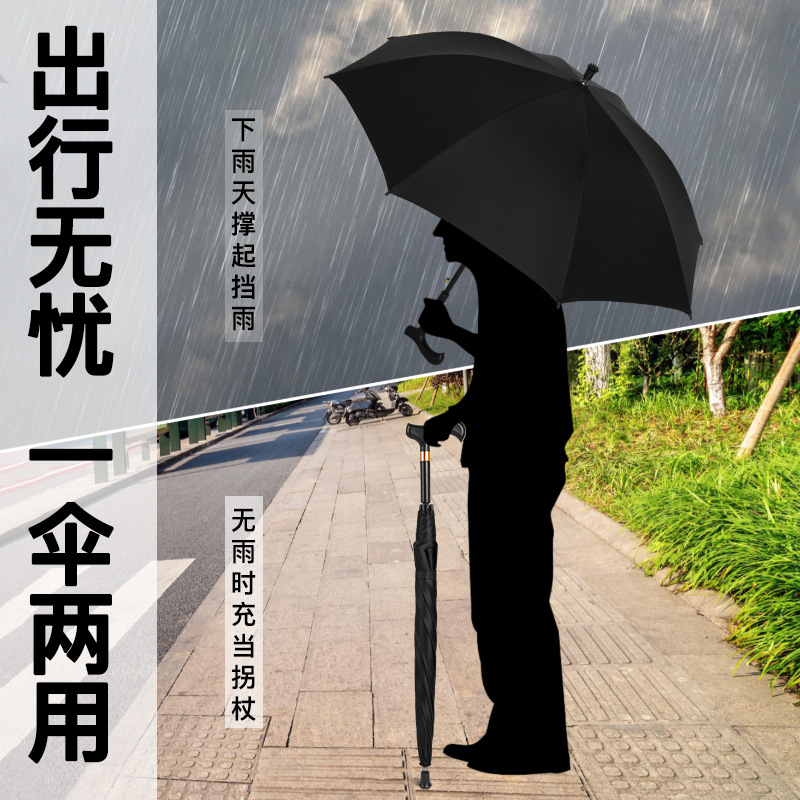 umbrella set long handle umbrella 23-inch automatic opening thickened double bone crutch umbrella non-slip mountaineering umbrella vinyl sun protective sunshade umbrella