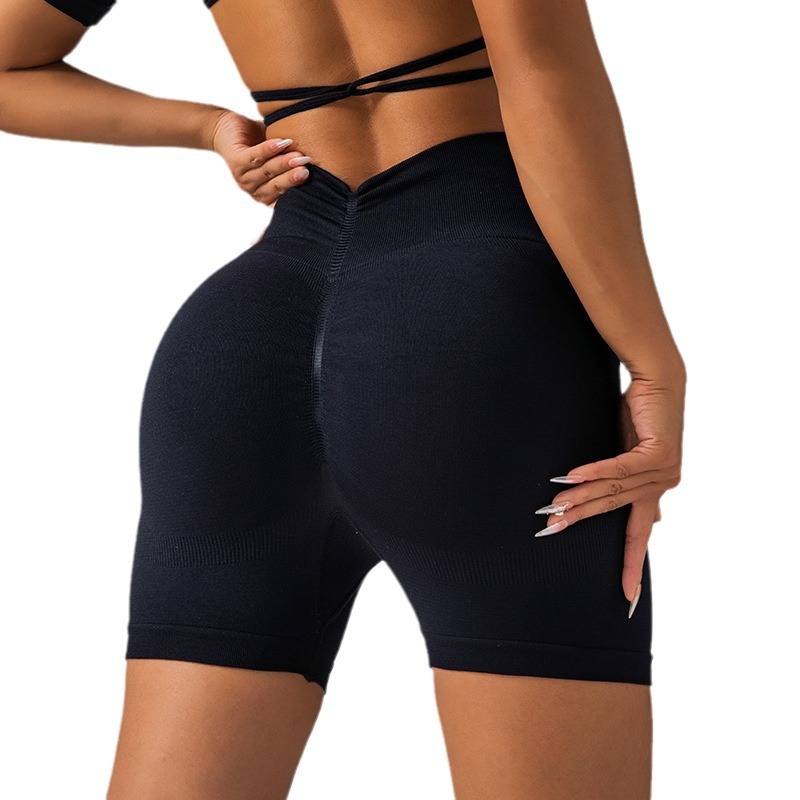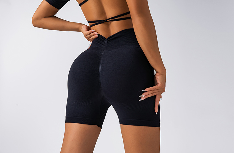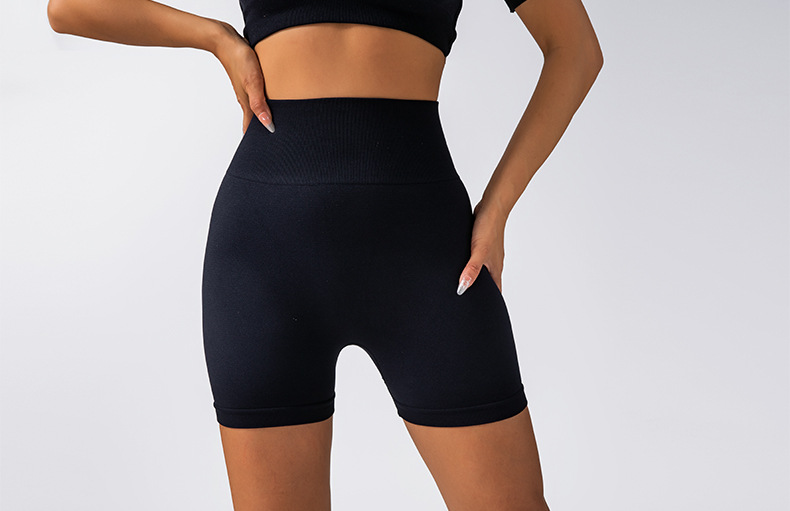 夏季新款纯色瑜伽短裤欧美骑行紧身高腰弹力运动健身三分瑜伽裤女