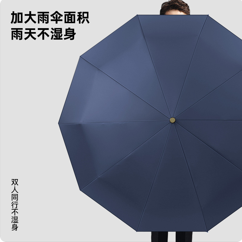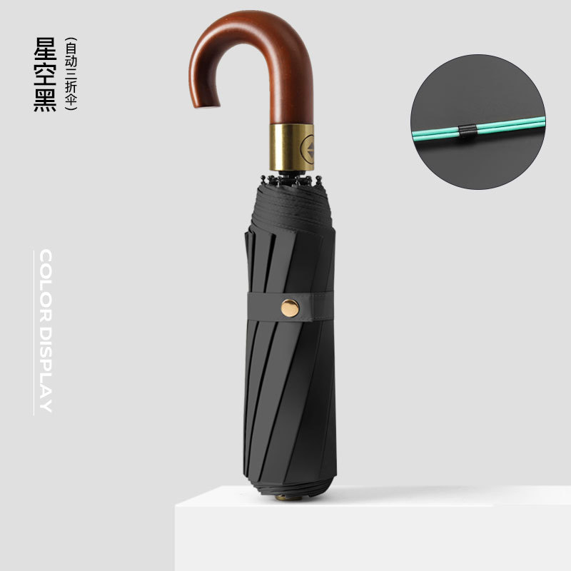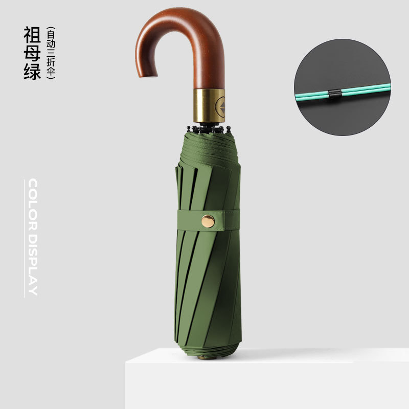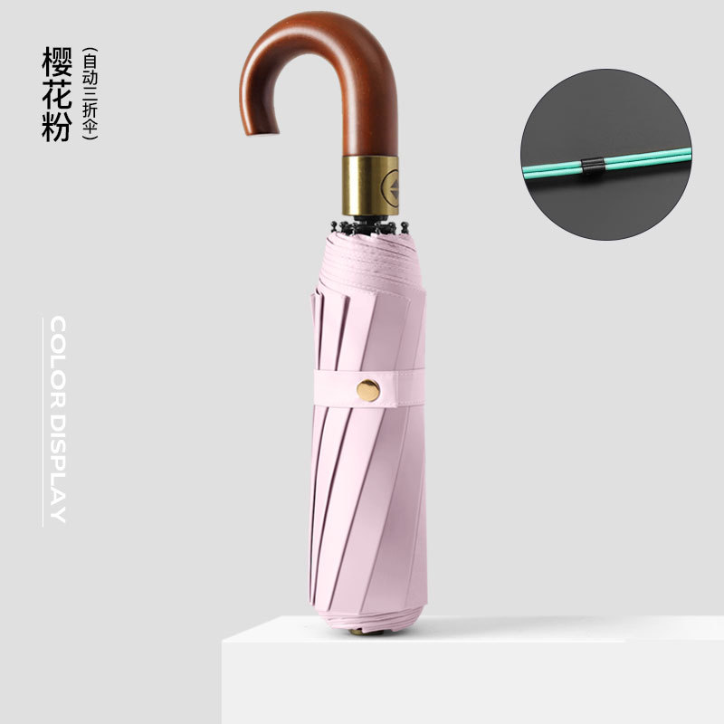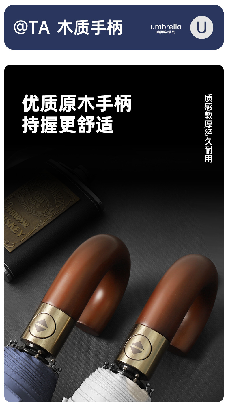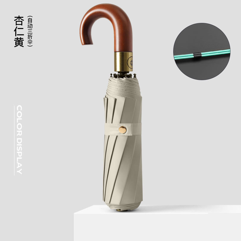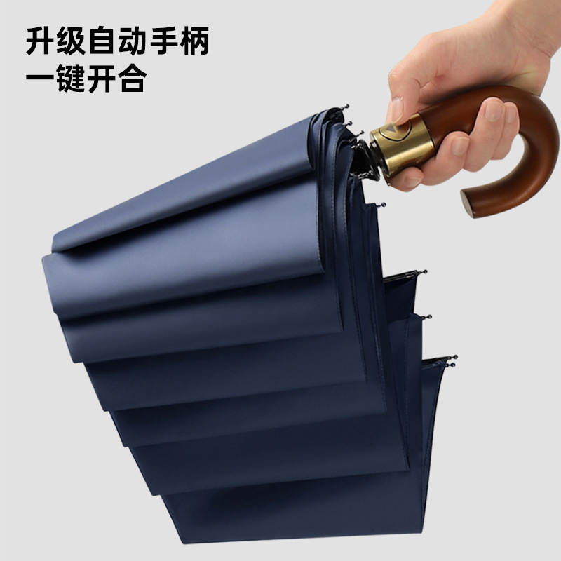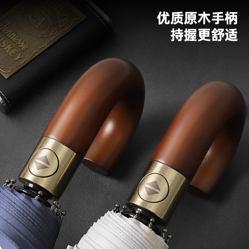 全自动晴雨伞折叠复古绅士雨伞三折实木弯柄彩胶加印logo广告雨伞
