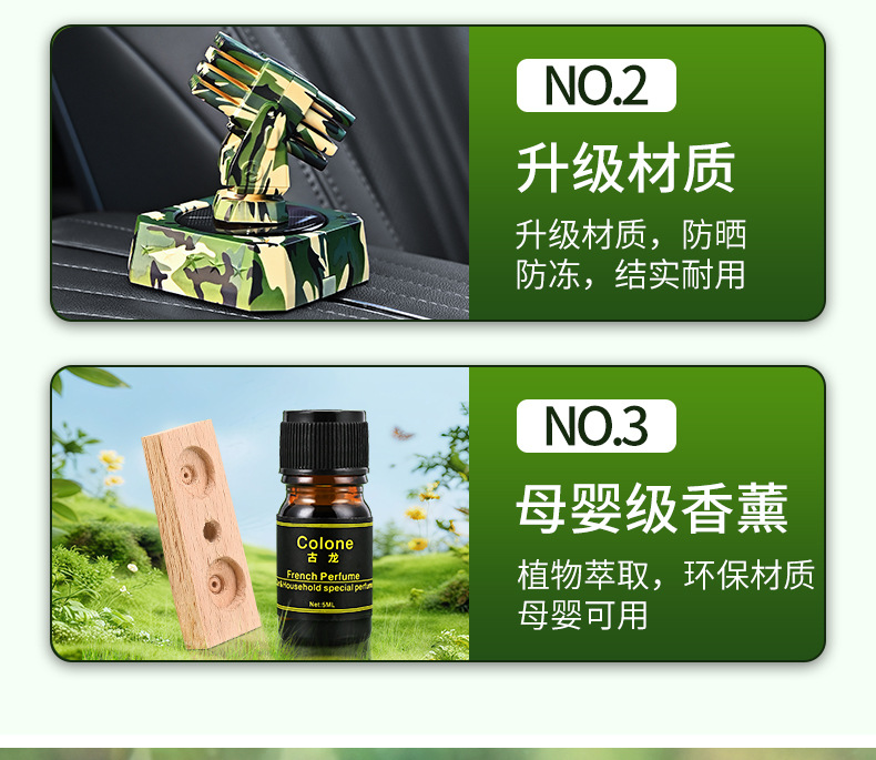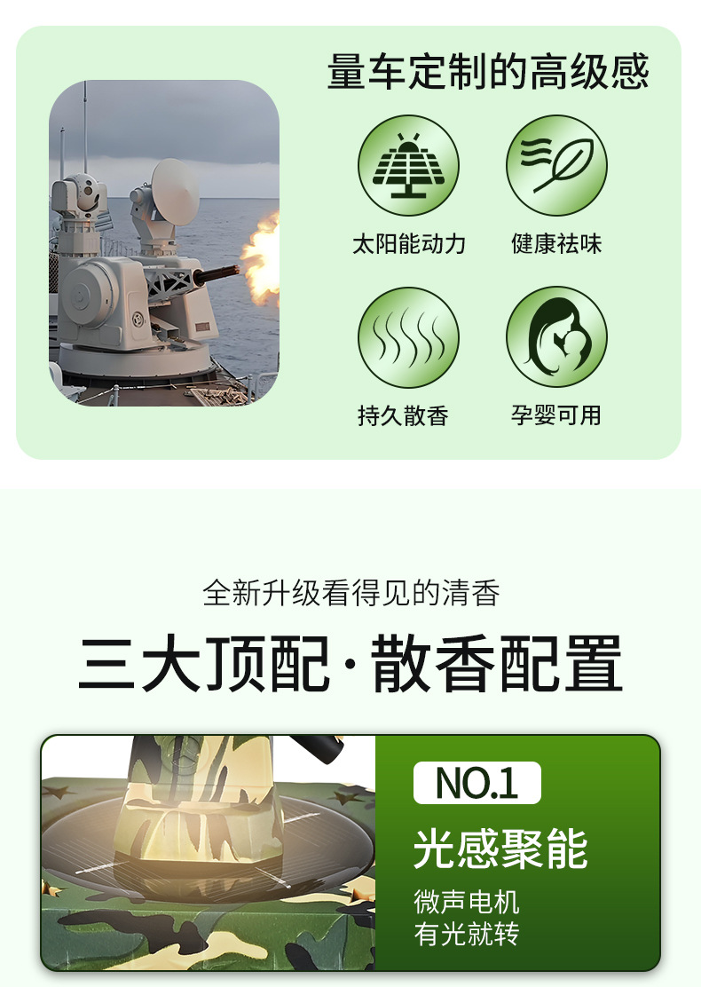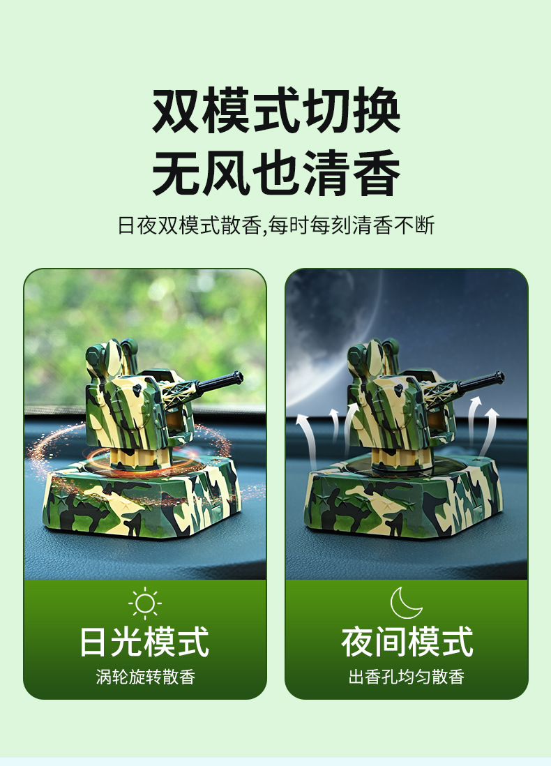 车载香薰近防炮太阳能旋转摆件汽车香水车内中控台持久清香装饰