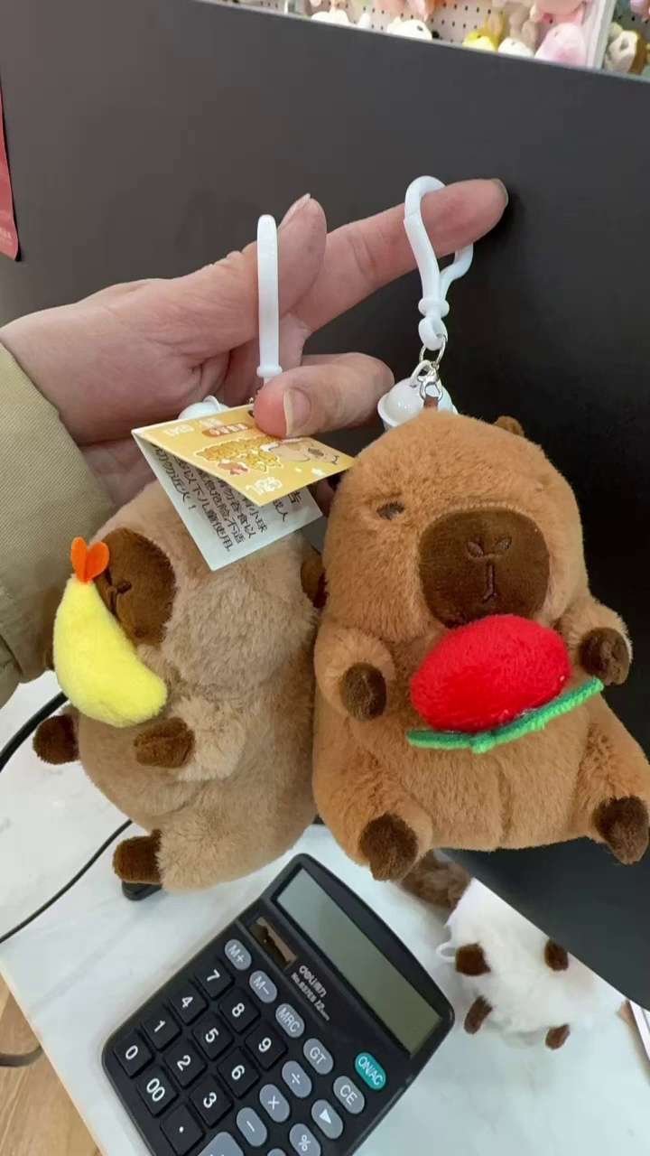 抖音卡皮巴拉吃货天妇罗毛绒公仔摇尾巴水豚草莓背包挂件毛绒玩具