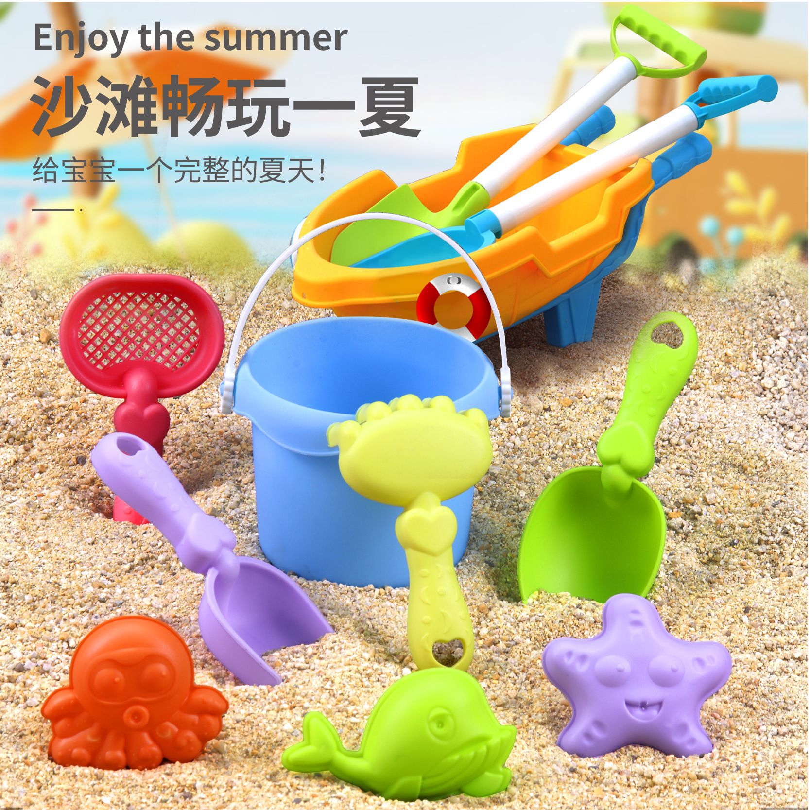儿童沙滩玩具套装沙滩车挖沙戏水玩具沙滩桶沙漏铲子海边玩沙工具