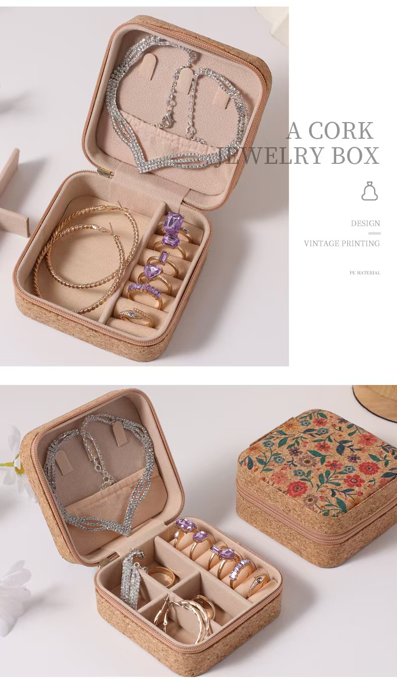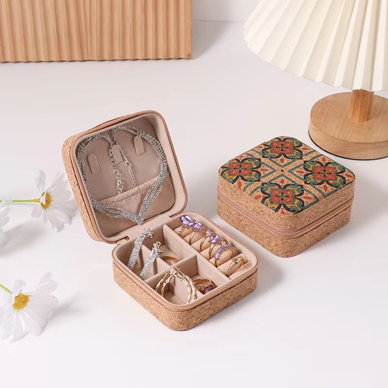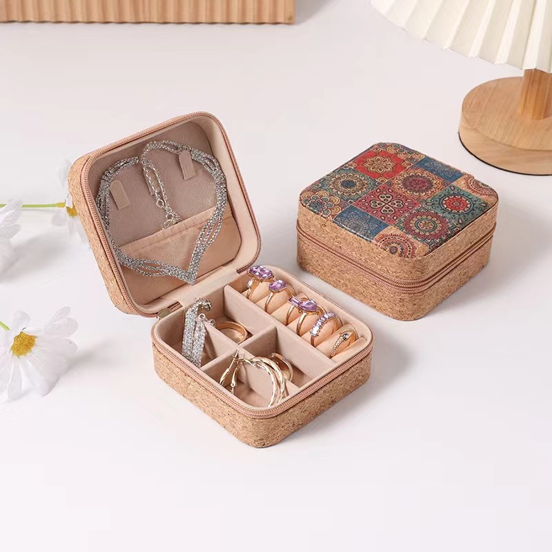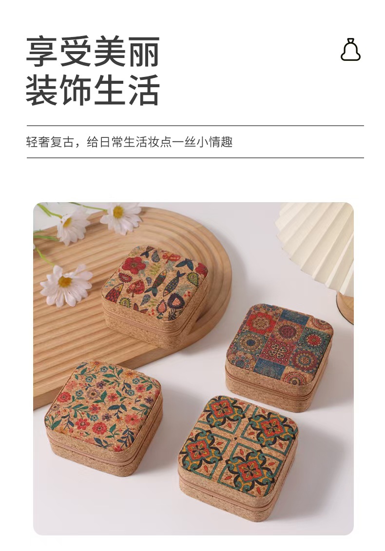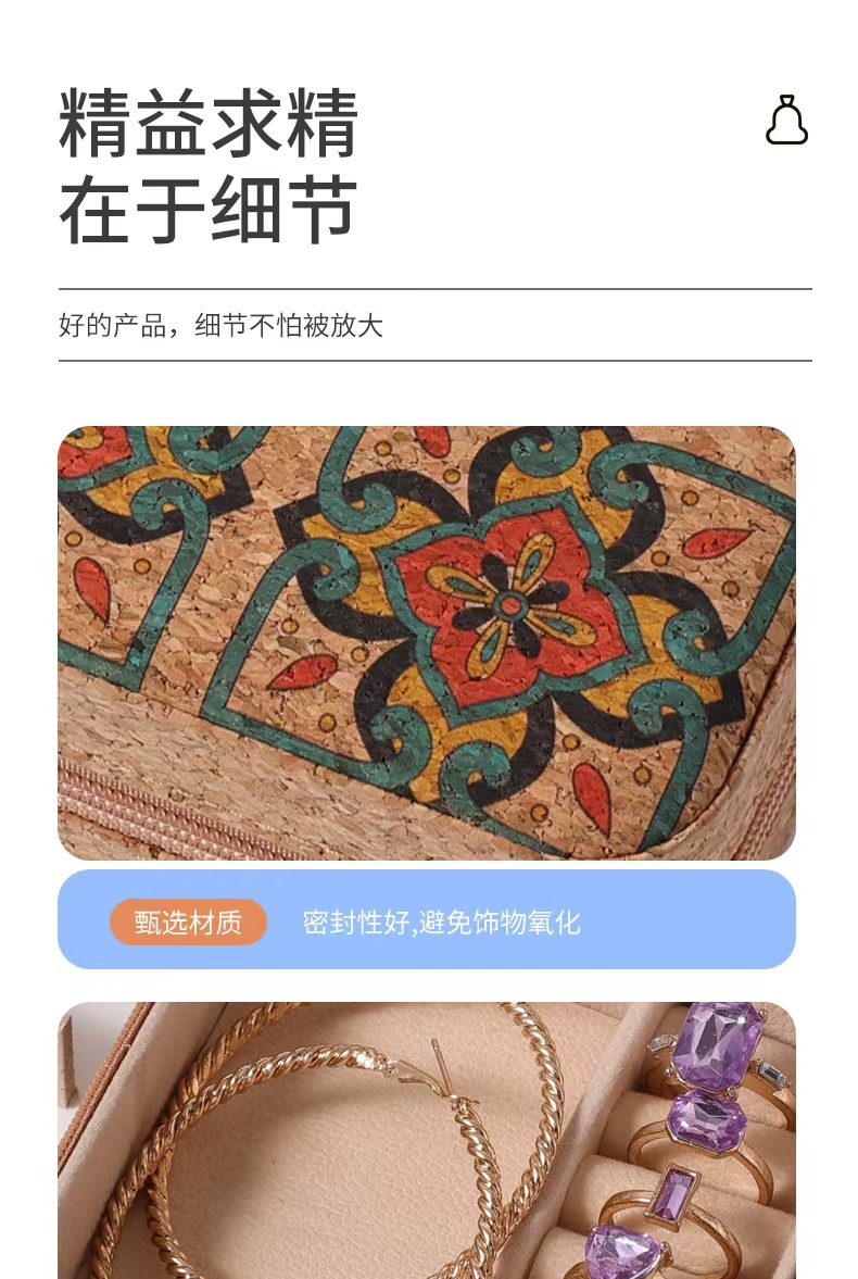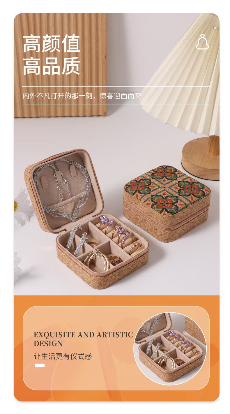 厂家直销精致轻奢软木首饰盒便携旅行耳环戒指项链时尚复古首饰盒
