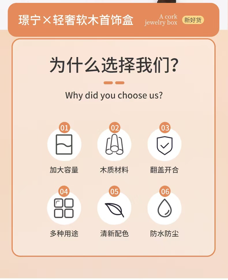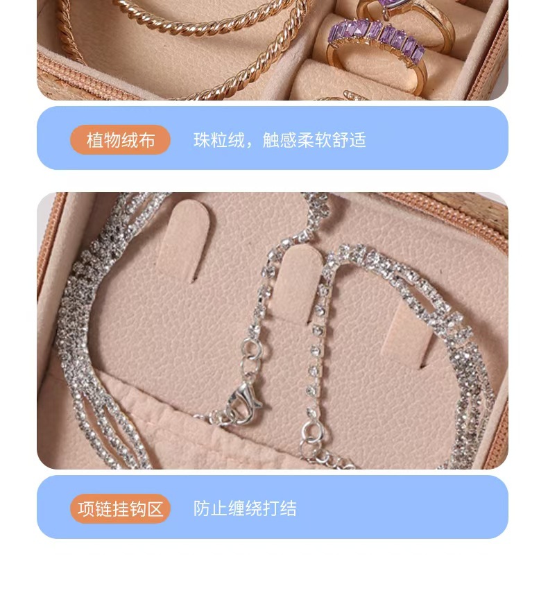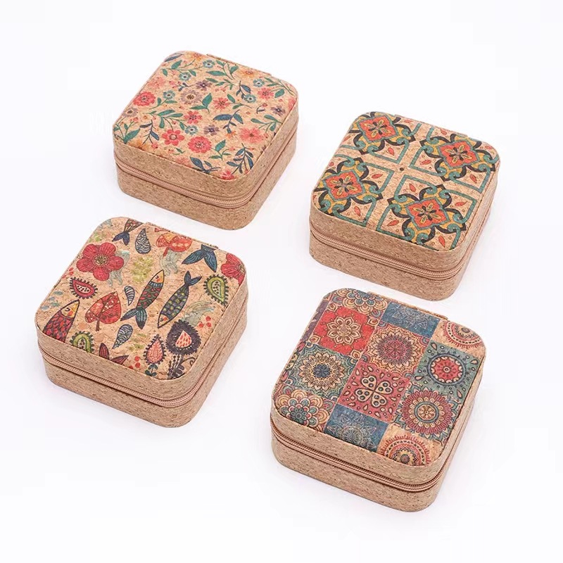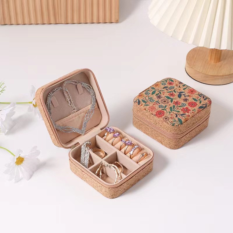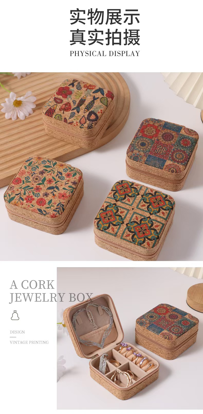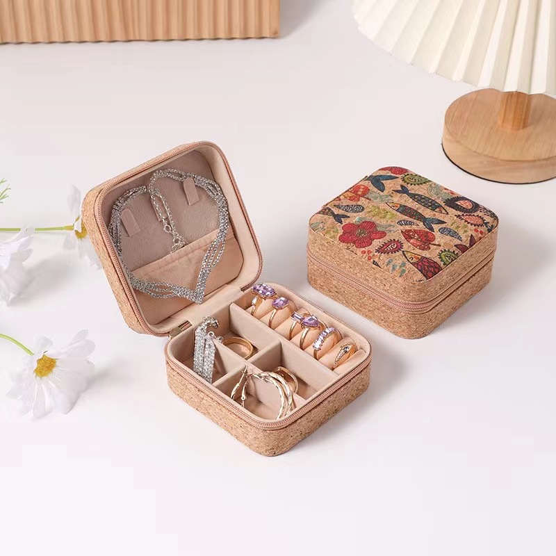 厂家直销精致轻奢软木首饰盒便携旅行耳环戒指项链时尚复古首饰盒