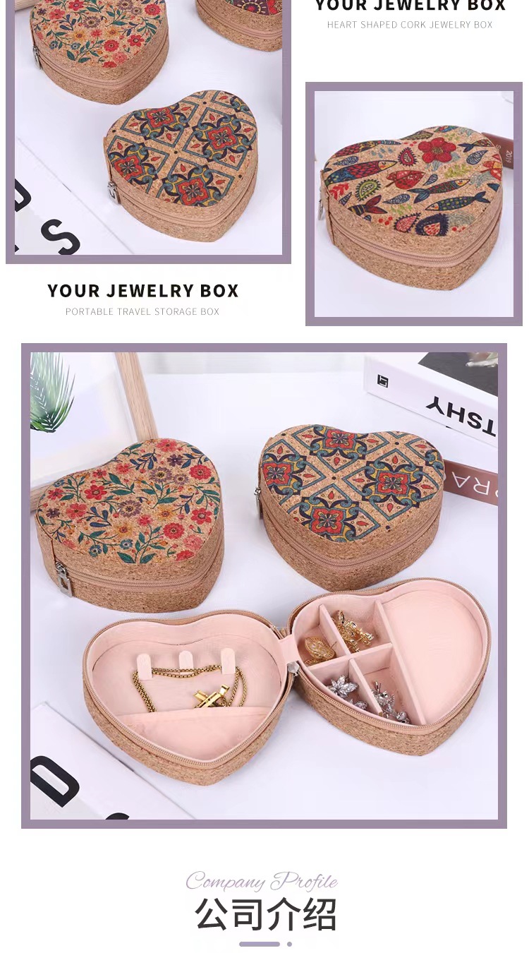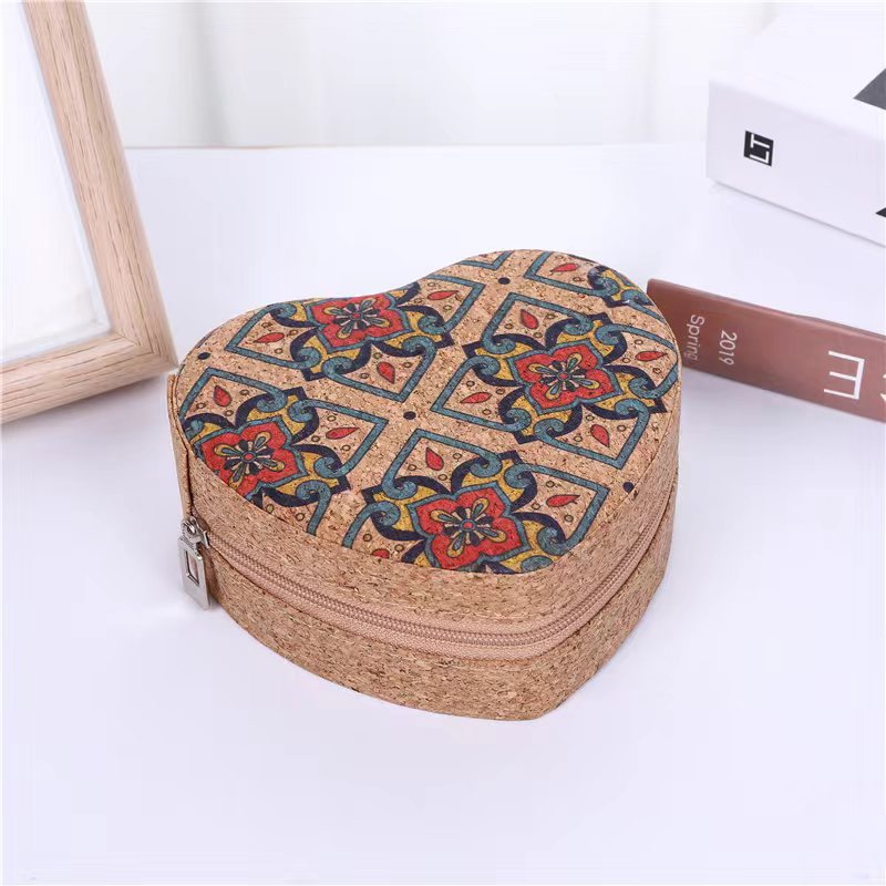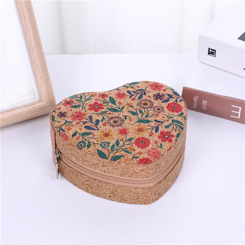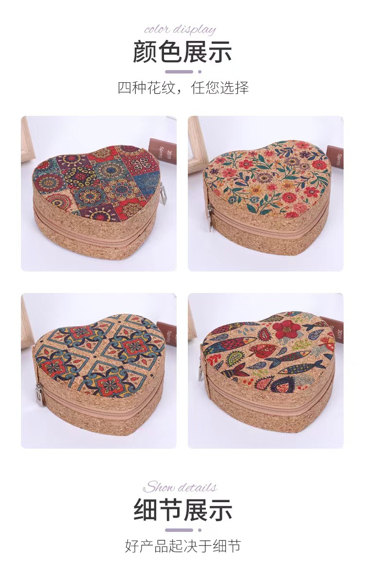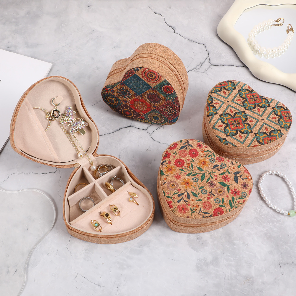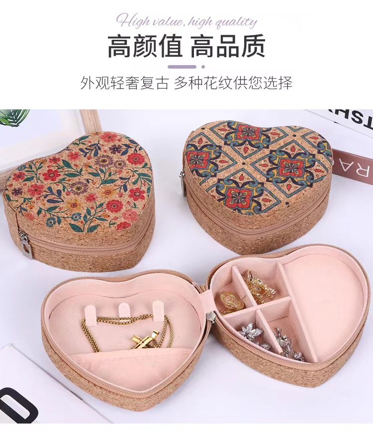 新款跨境原创软木首饰盒便携带旅行耳环戒指心形高级感首饰收纳盒