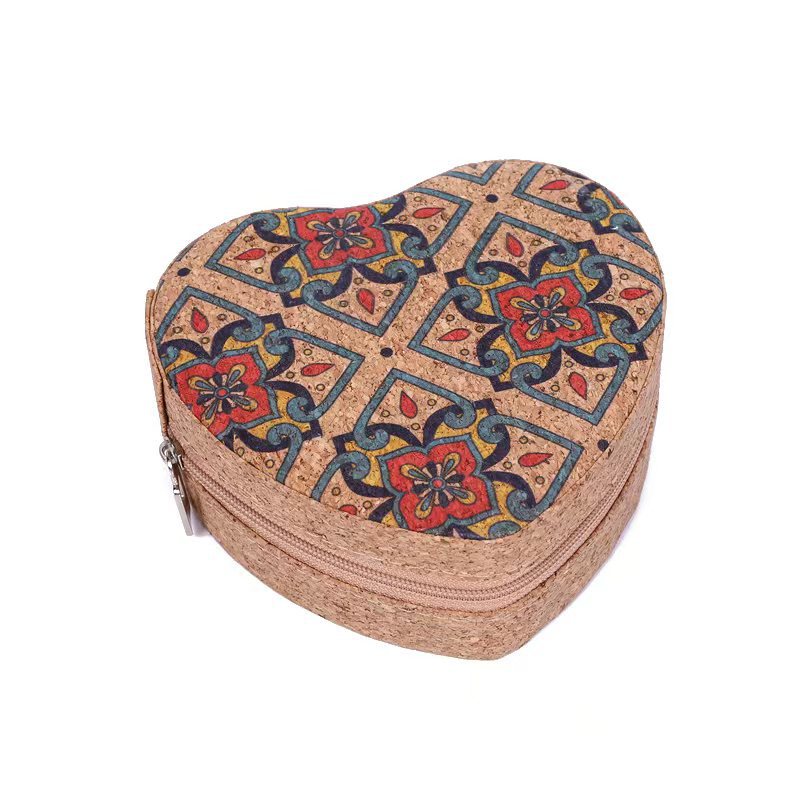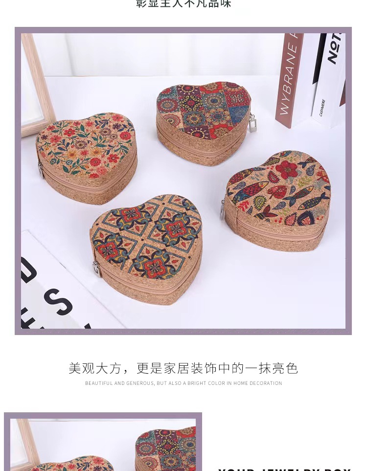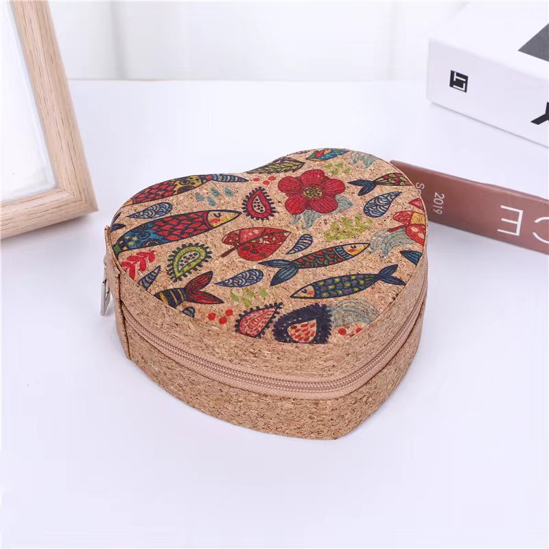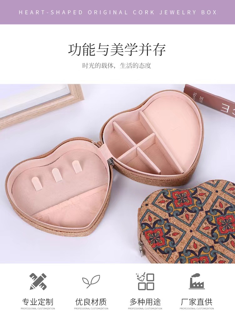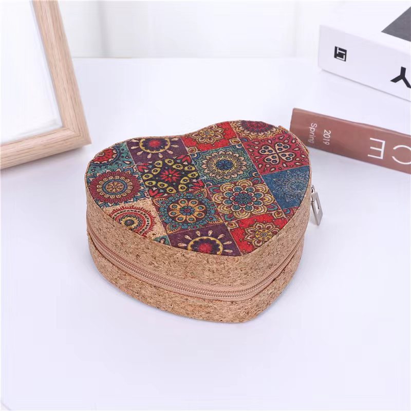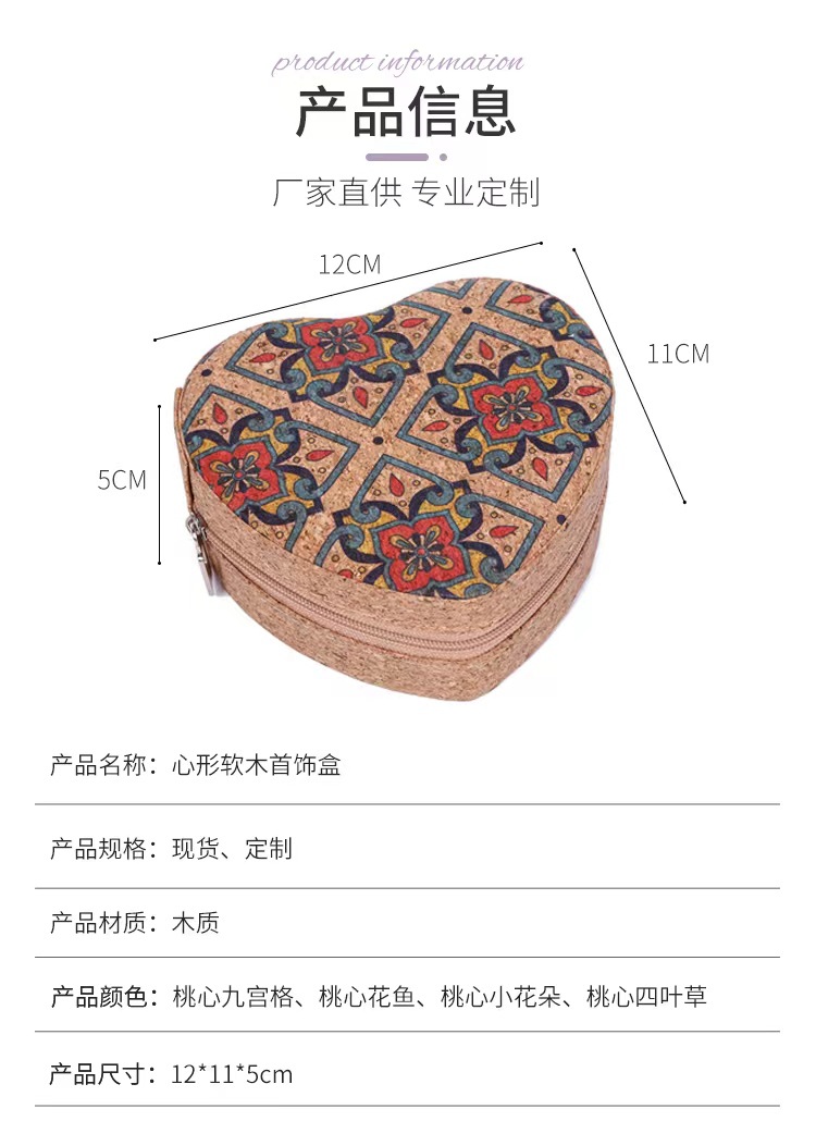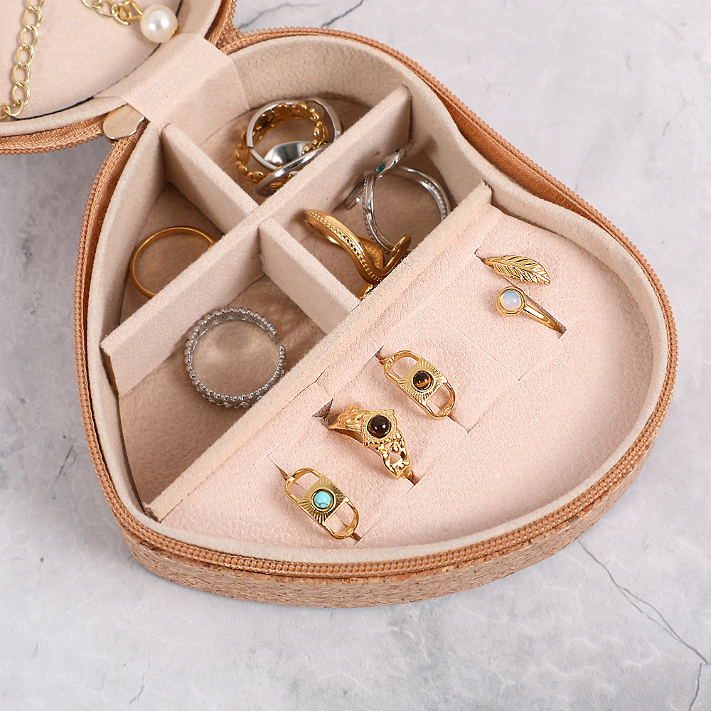 新款跨境原创软木首饰盒便携带旅行耳环戒指心形高级感首饰收纳盒