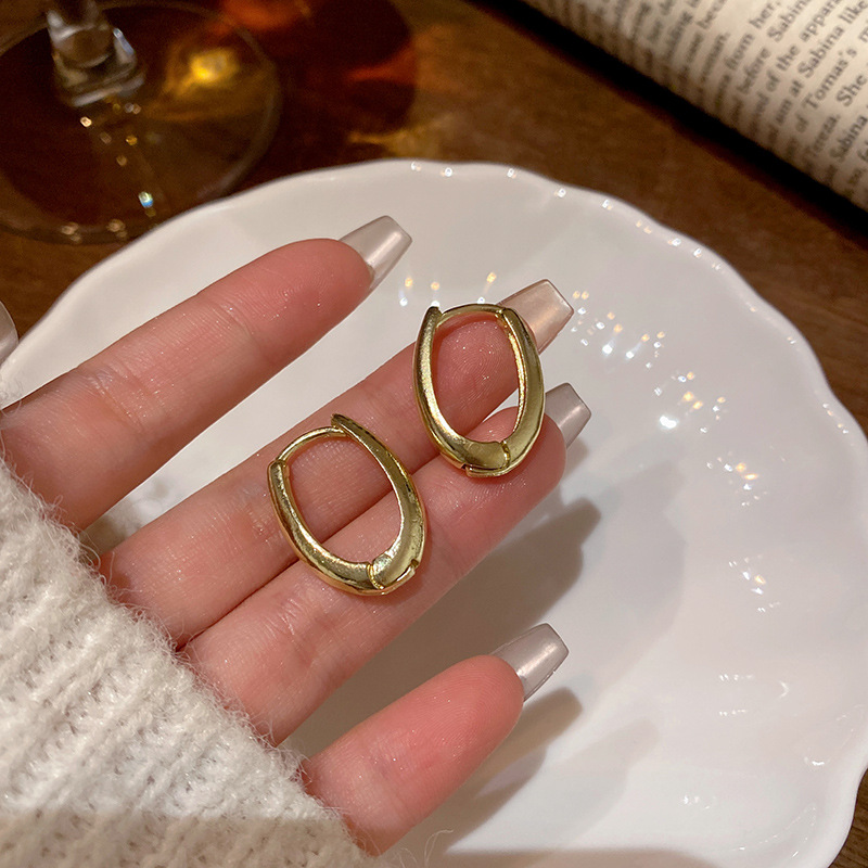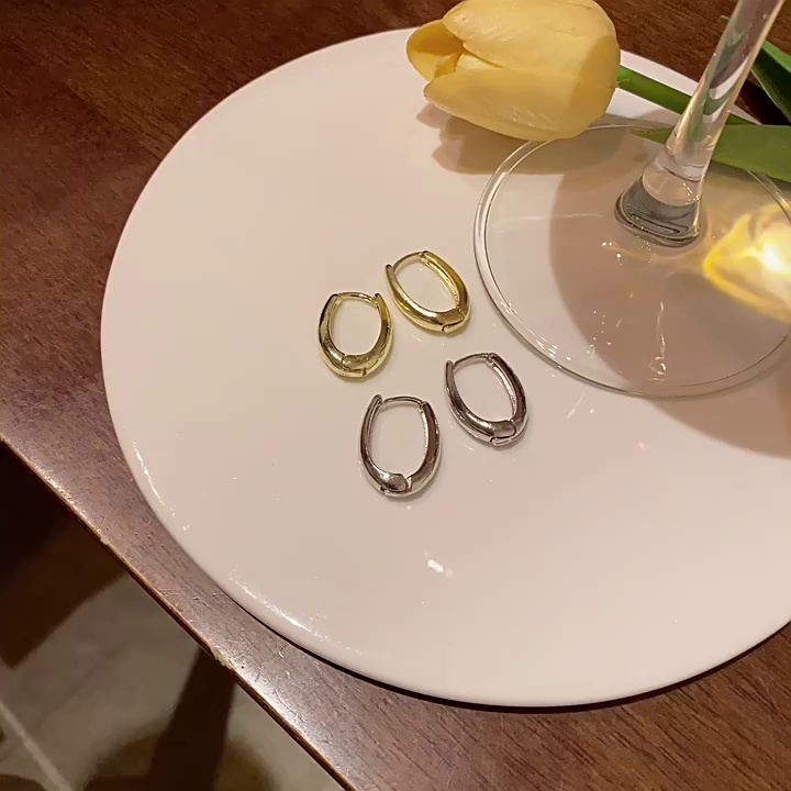 饰品时尚气质小众高级感圆圈耳环水滴形耳扣简约冷淡风金属感耳钉