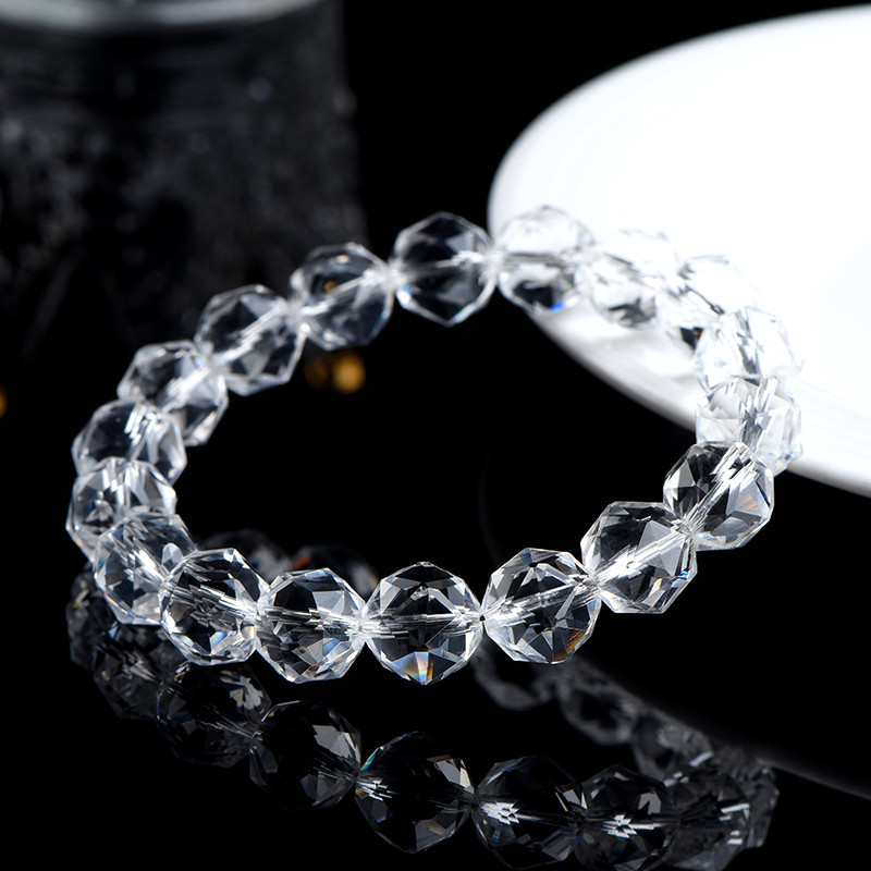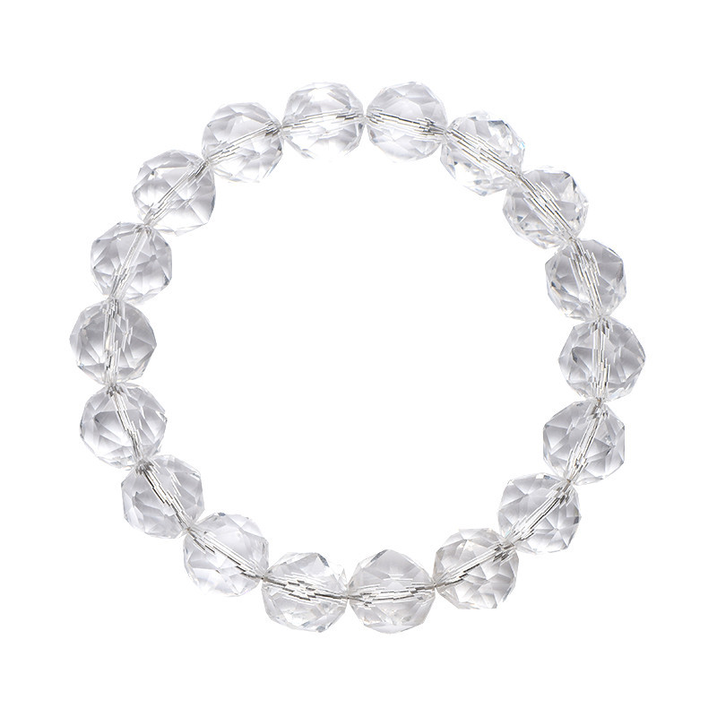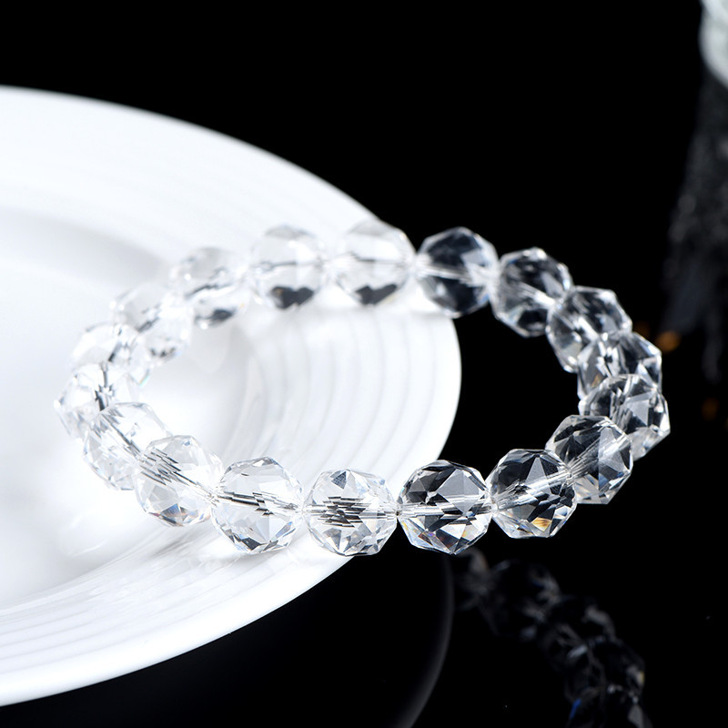 久雅水晶 天然白水晶钻石切面圆珠手链 白色水晶圆珠切角手串批发