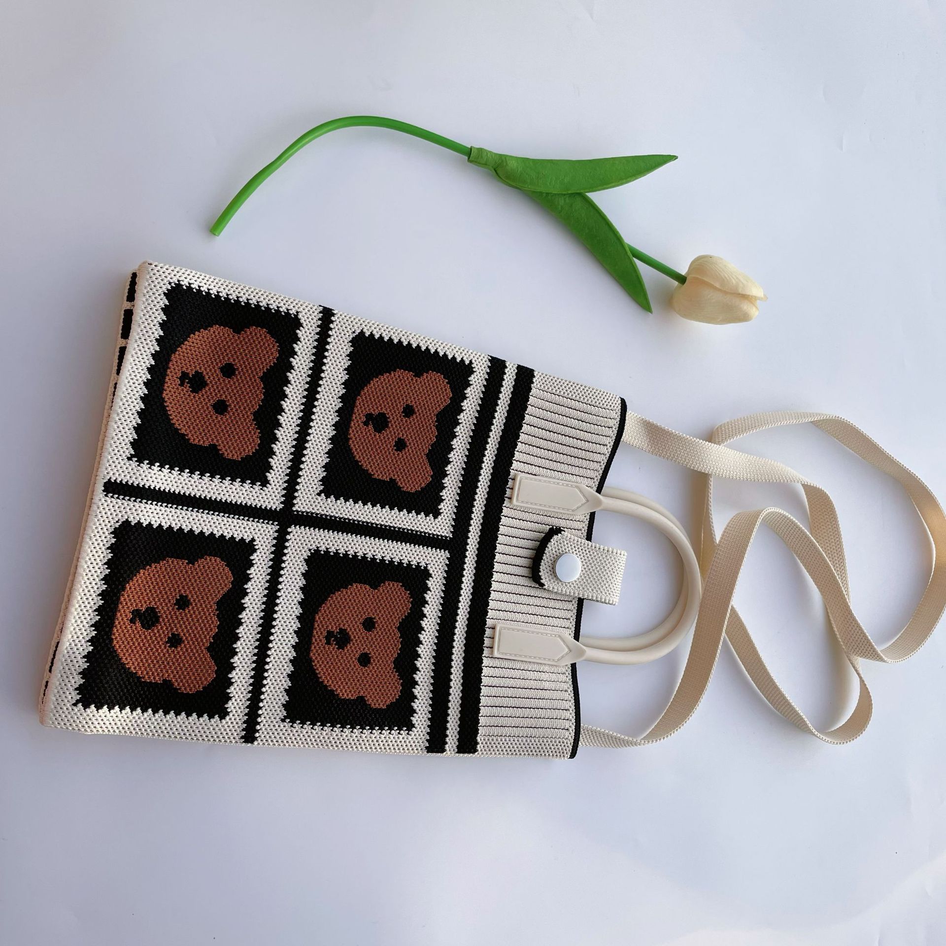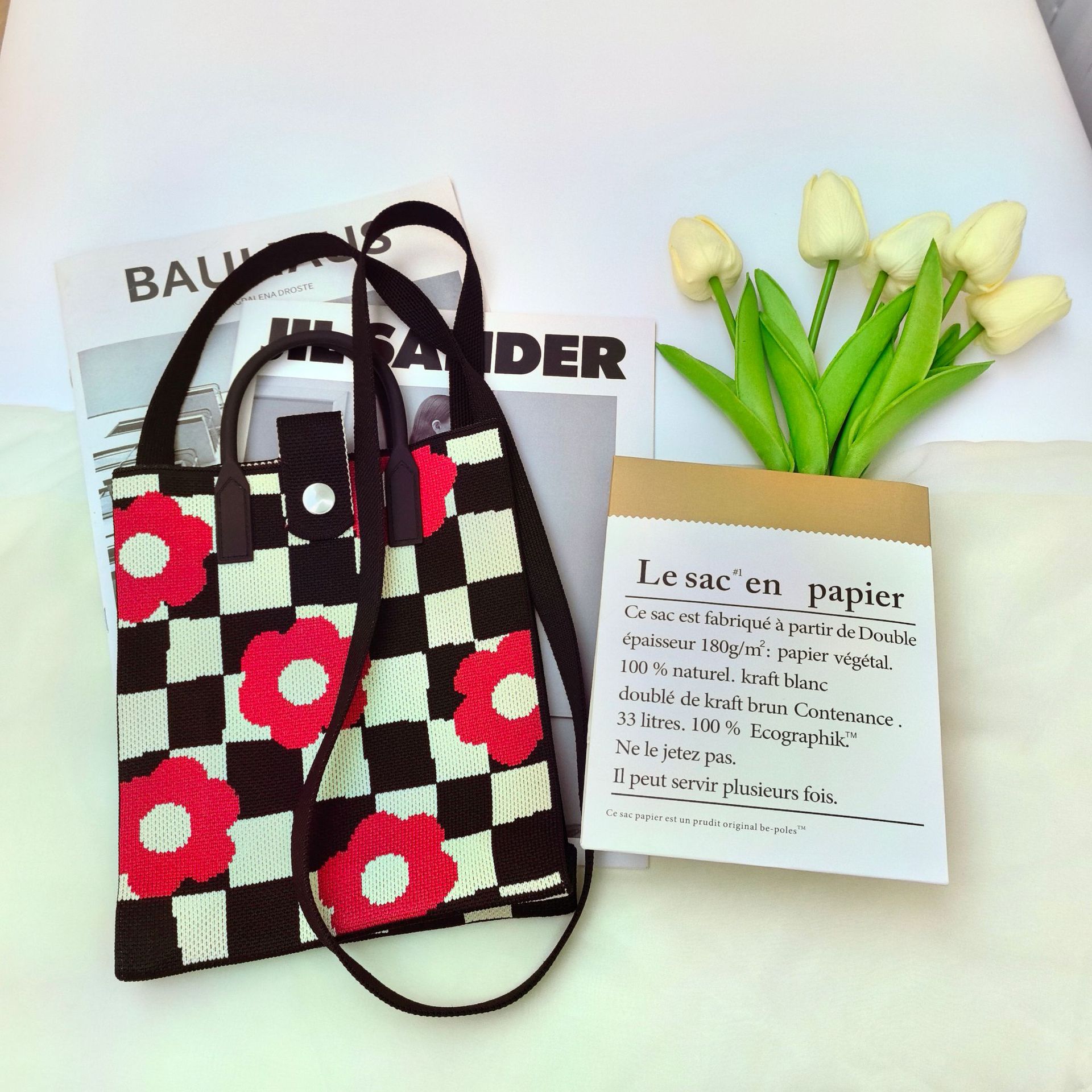 单肩斜挎针织小方包敞口手提大容量可爱小清新新款时尚零钱手机包