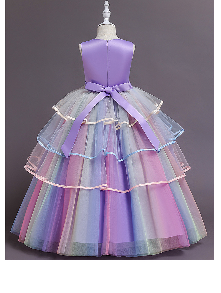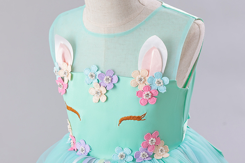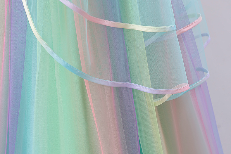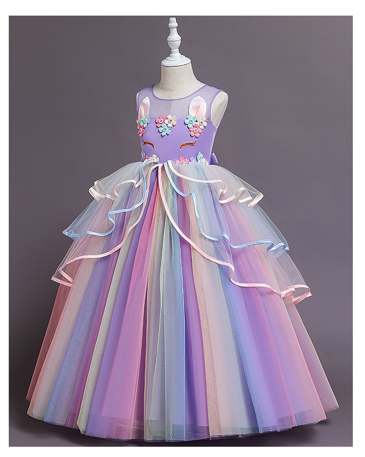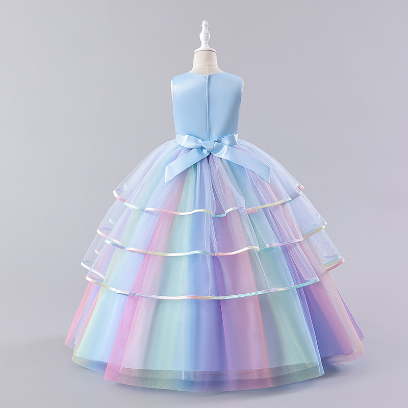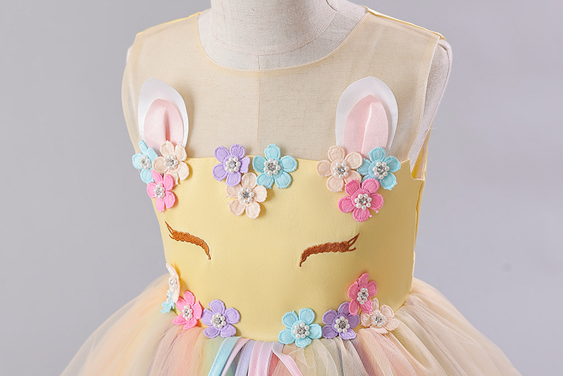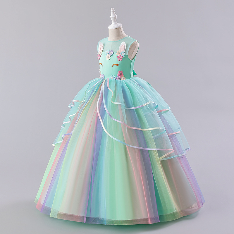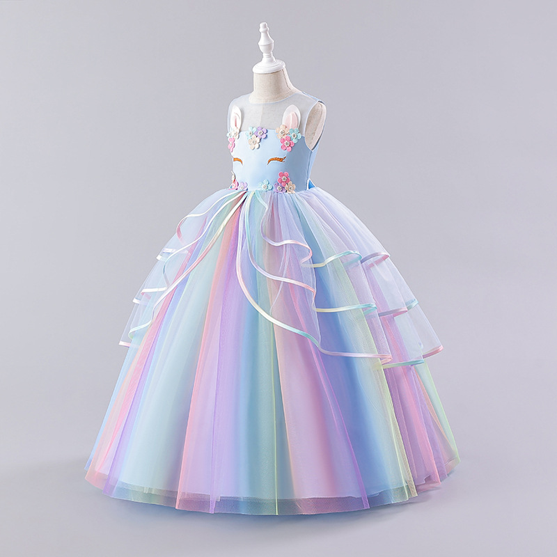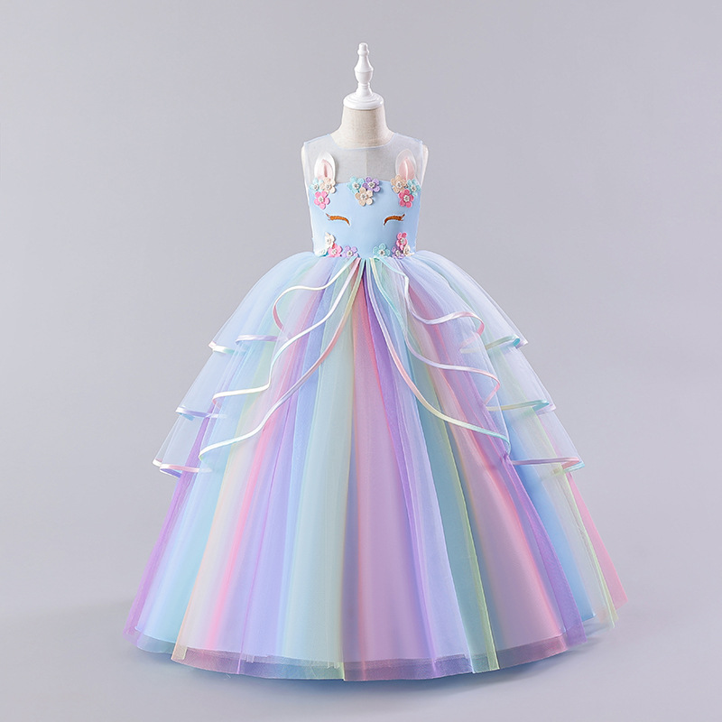 欧美儿童礼服裙女童连衣裙独角兽夏新彩虹蓬蓬网纱公主裙跨境童装