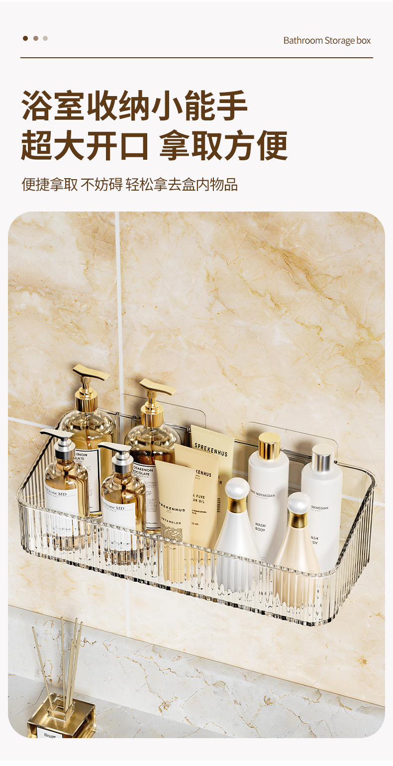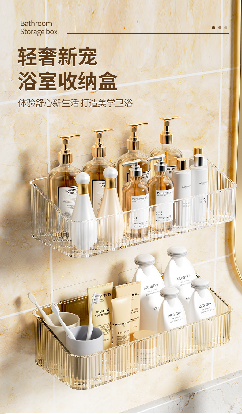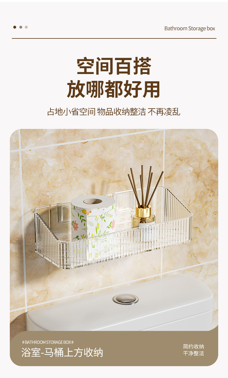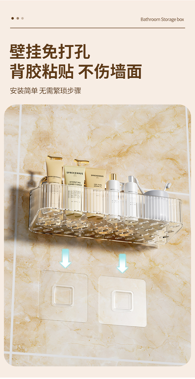 家用PET壁挂收纳盒浴室免钉沥水置物架 无痕强承重防水整理筐跨境