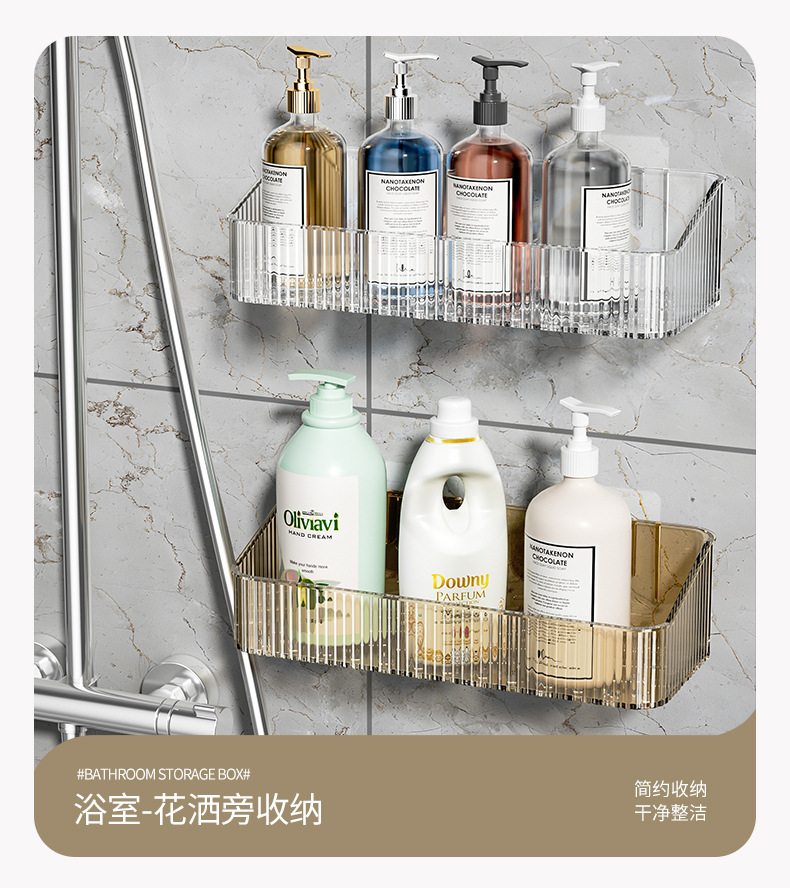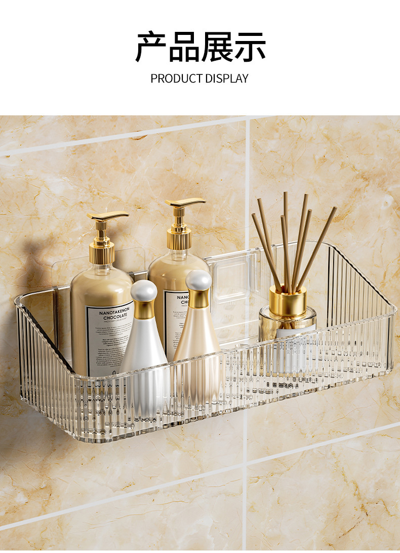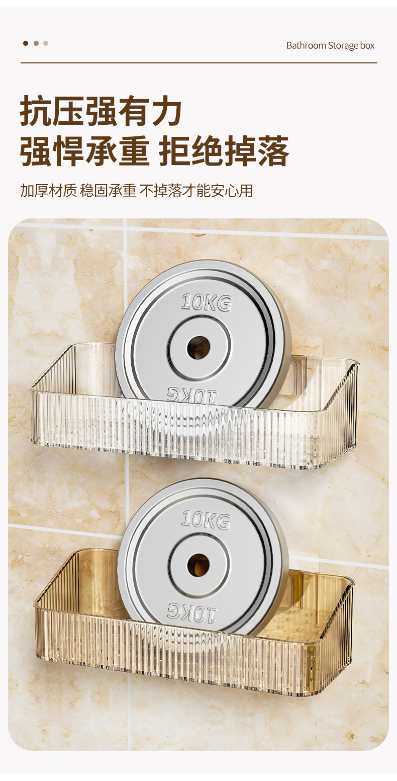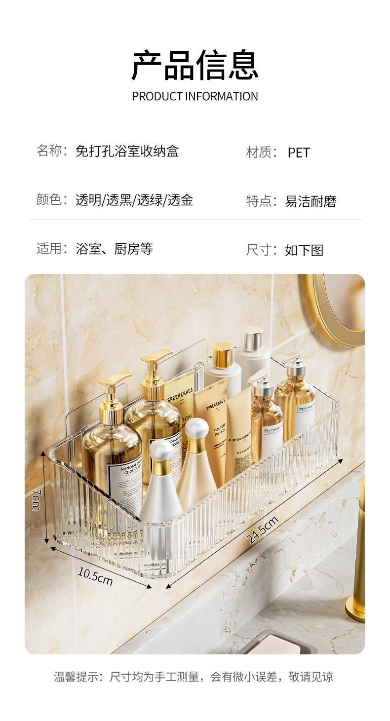 家用PET壁挂收纳盒浴室免钉沥水置物架 无痕强承重防水整理筐跨境