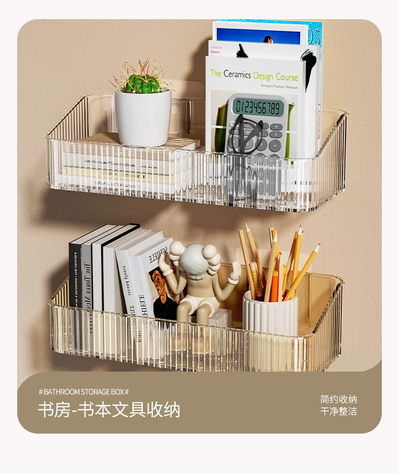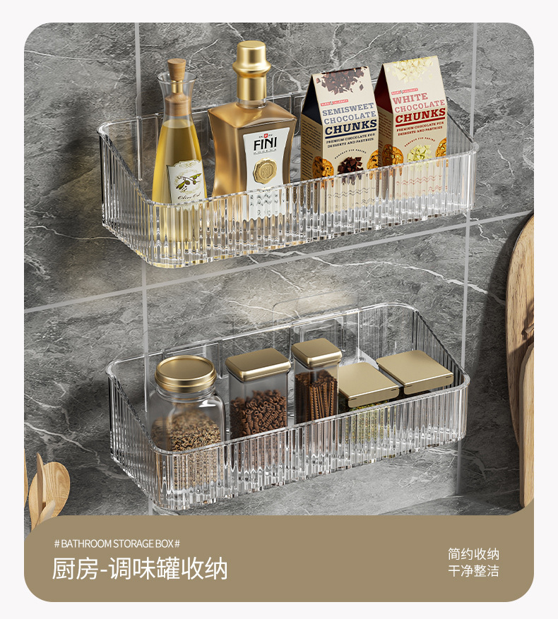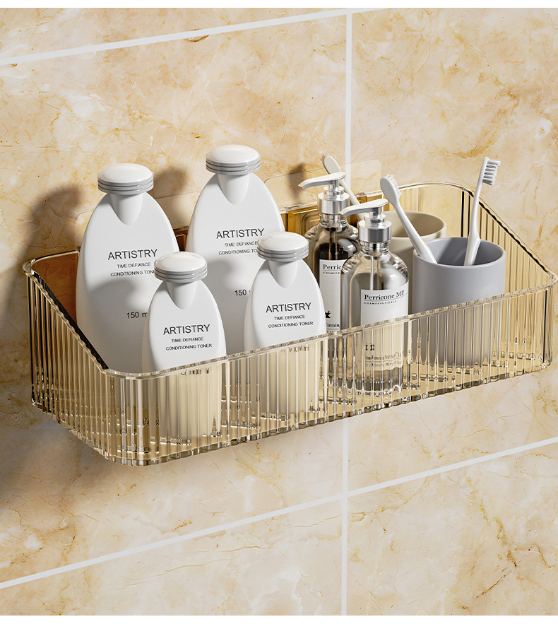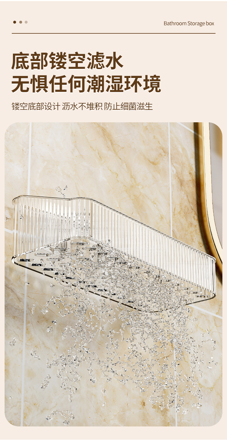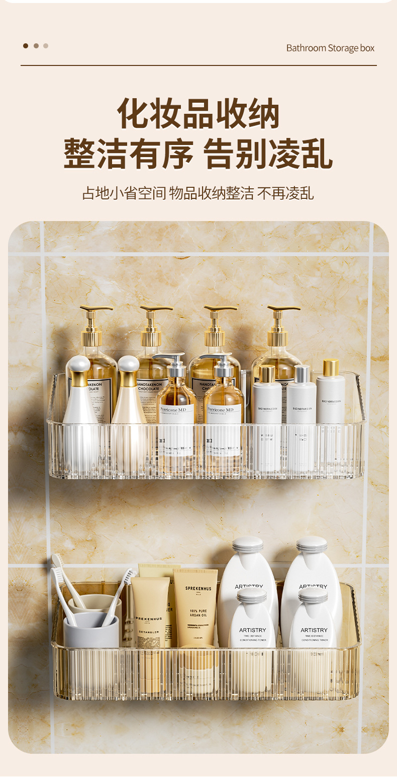 家用PET壁挂收纳盒浴室免钉沥水置物架 无痕强承重防水整理筐跨境