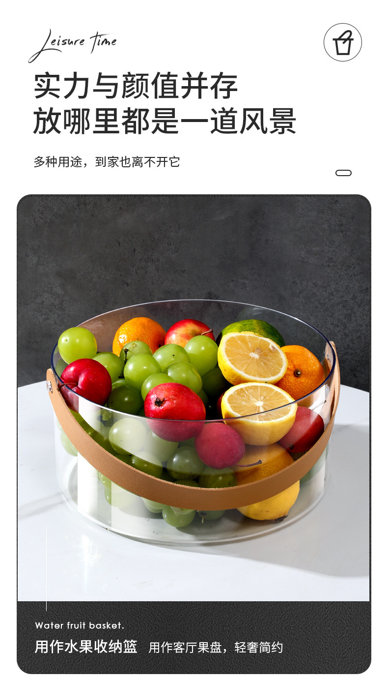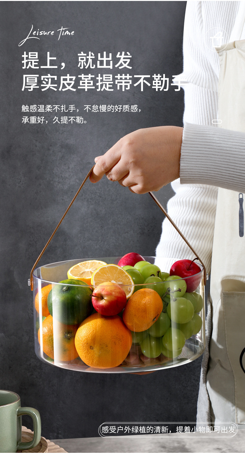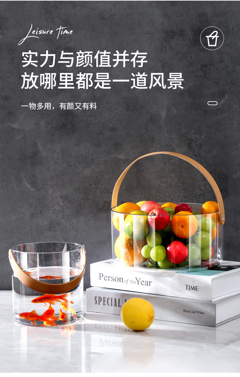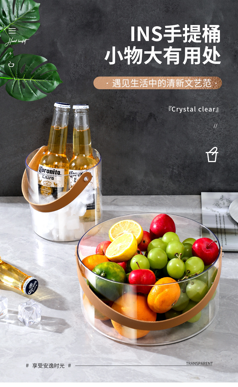 居家高颜值透明桌面收纳桶 多功能收纳盒创意手提篮冰桶PET水果篮