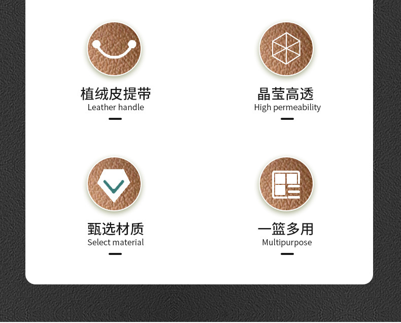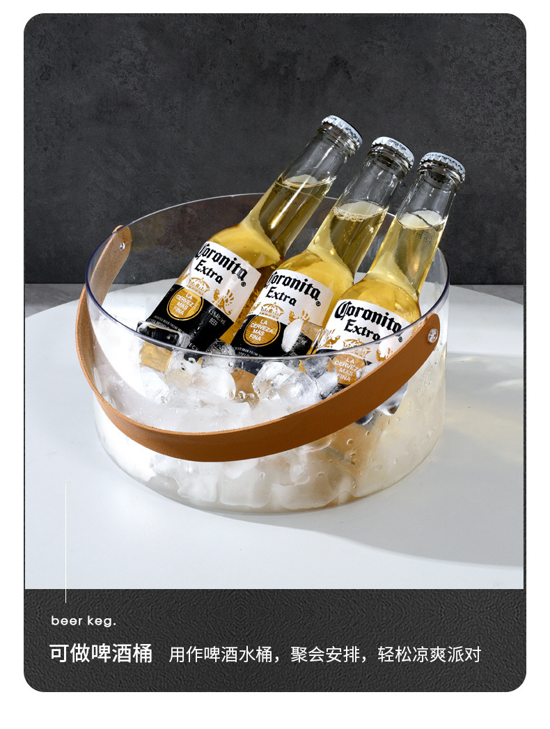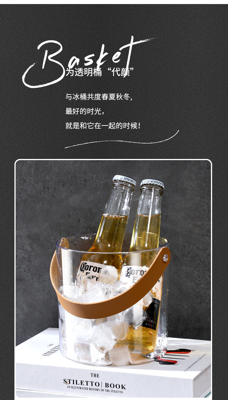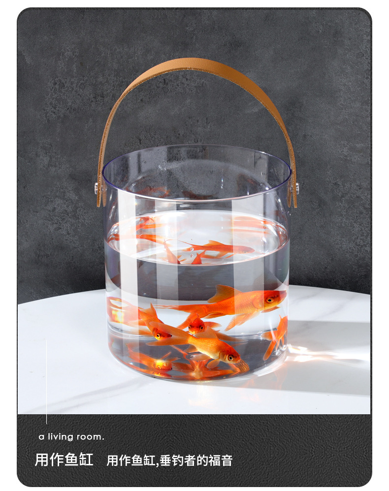 居家高颜值透明桌面收纳桶 多功能收纳盒创意手提篮冰桶PET水果篮