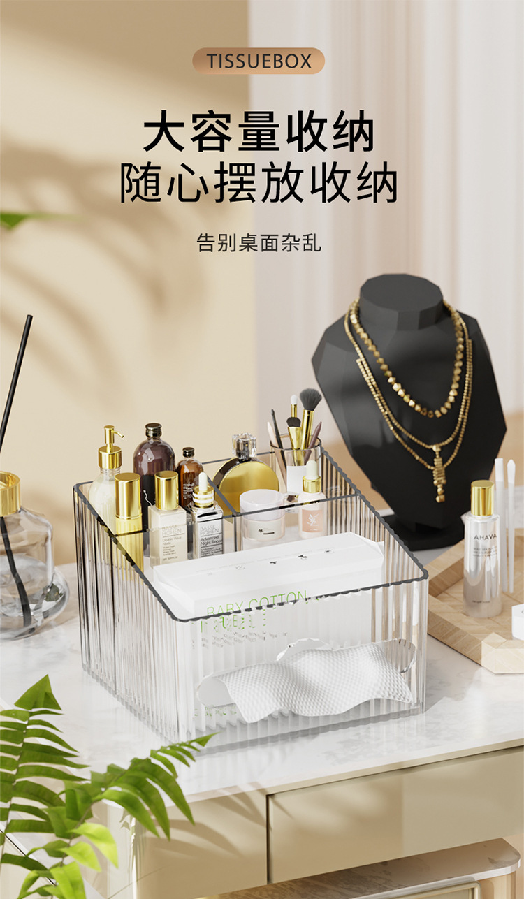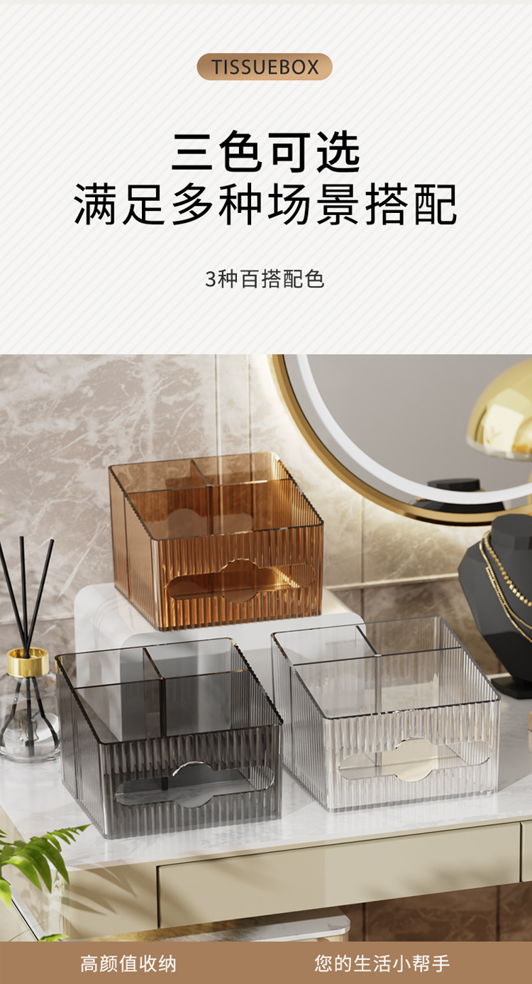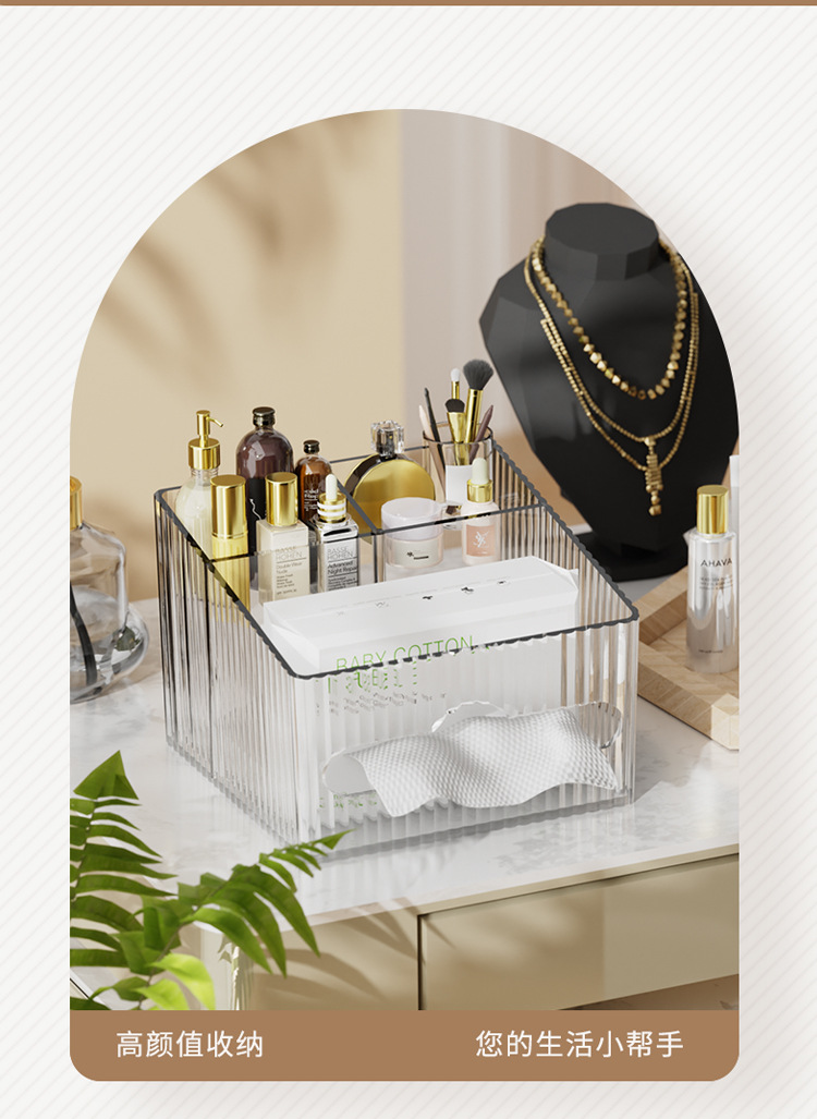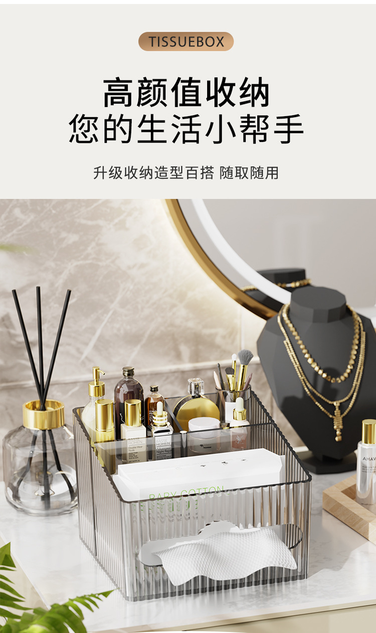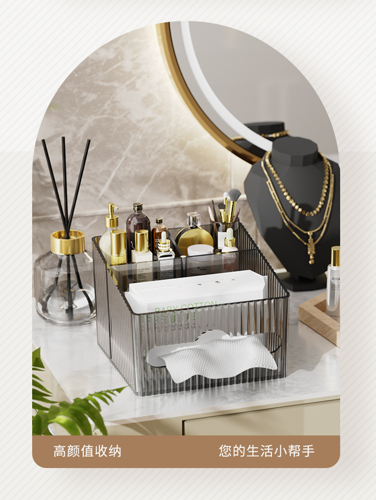 轻奢百搭桌面置物盒家用多功能纸巾盒化妆品收纳整理高颜值抽纸盒