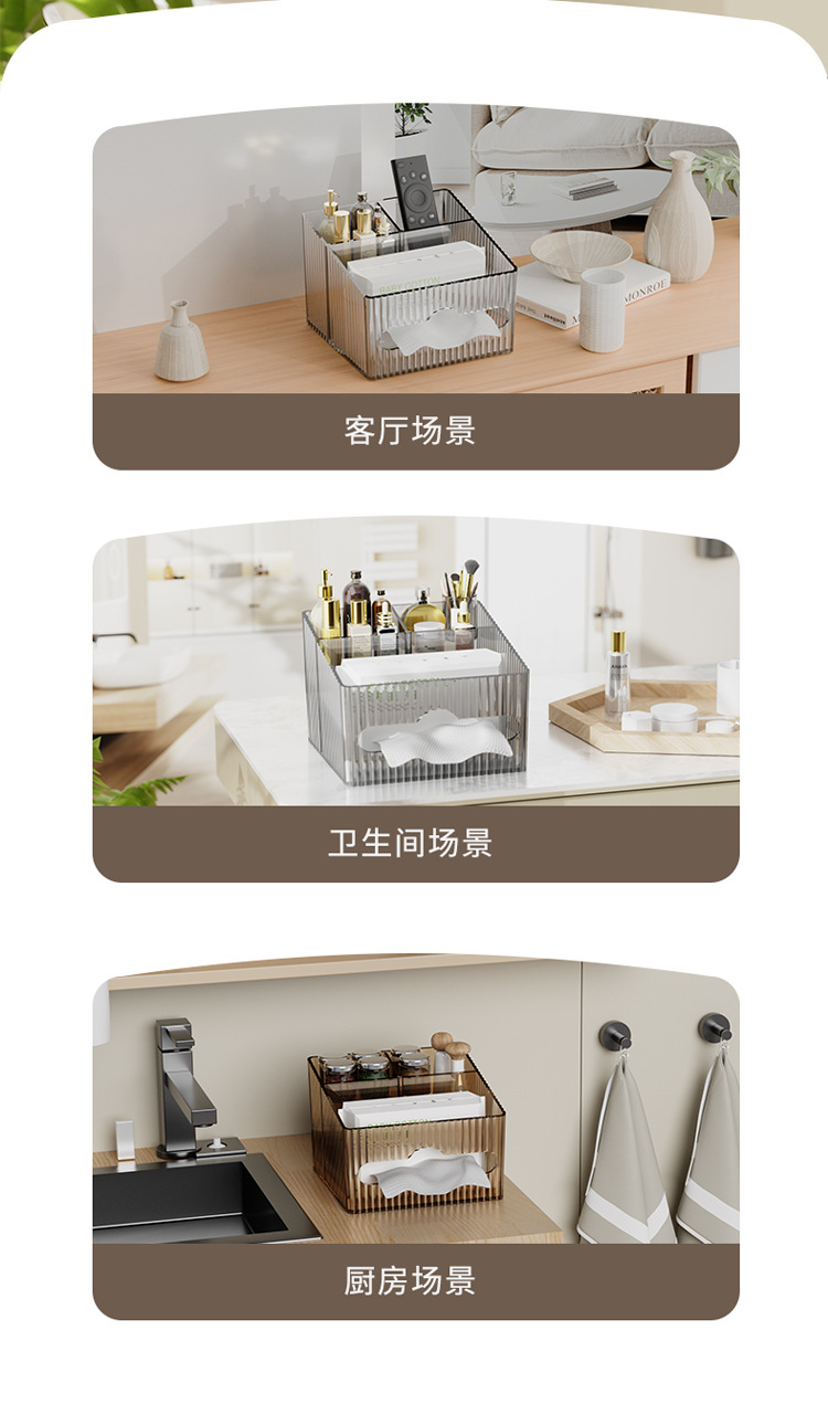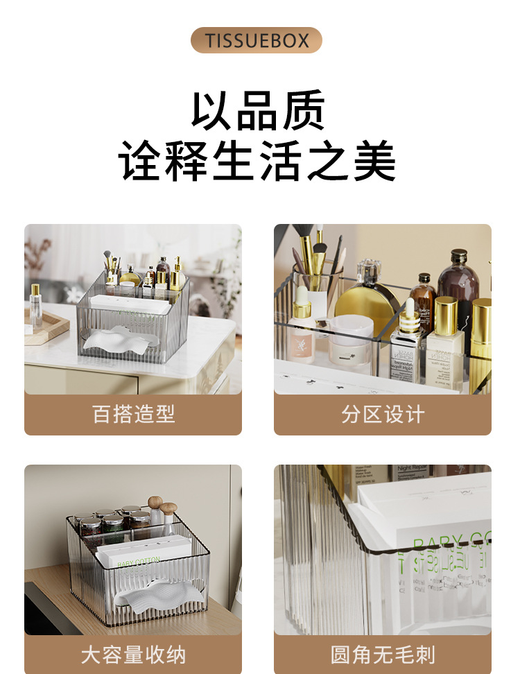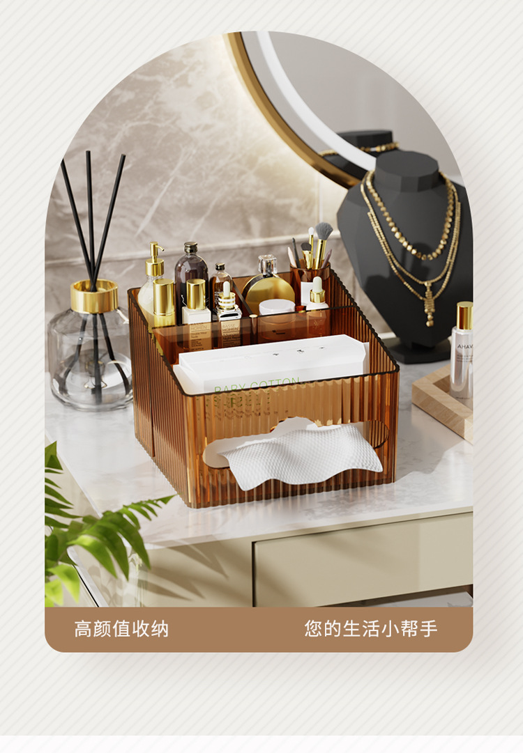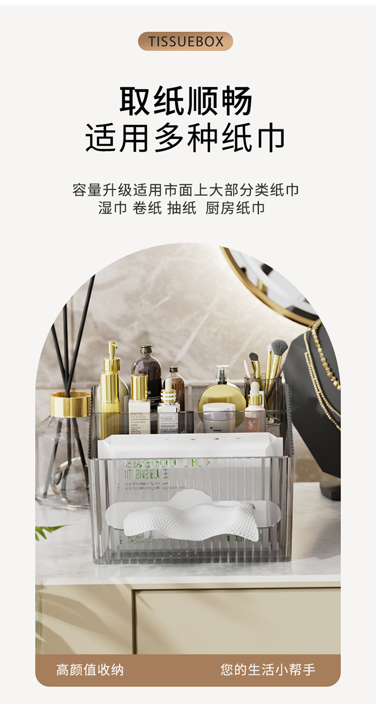 轻奢百搭桌面置物盒家用多功能纸巾盒化妆品收纳整理高颜值抽纸盒