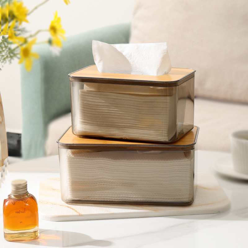 家用高颜值透明天然竹盖纸巾收纳盒客厅茶几桌面抽纸盒防尘纸巾盒