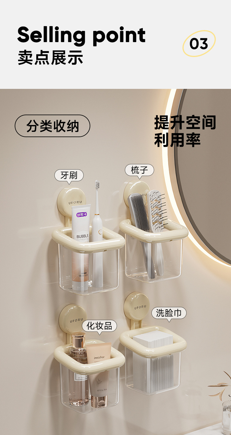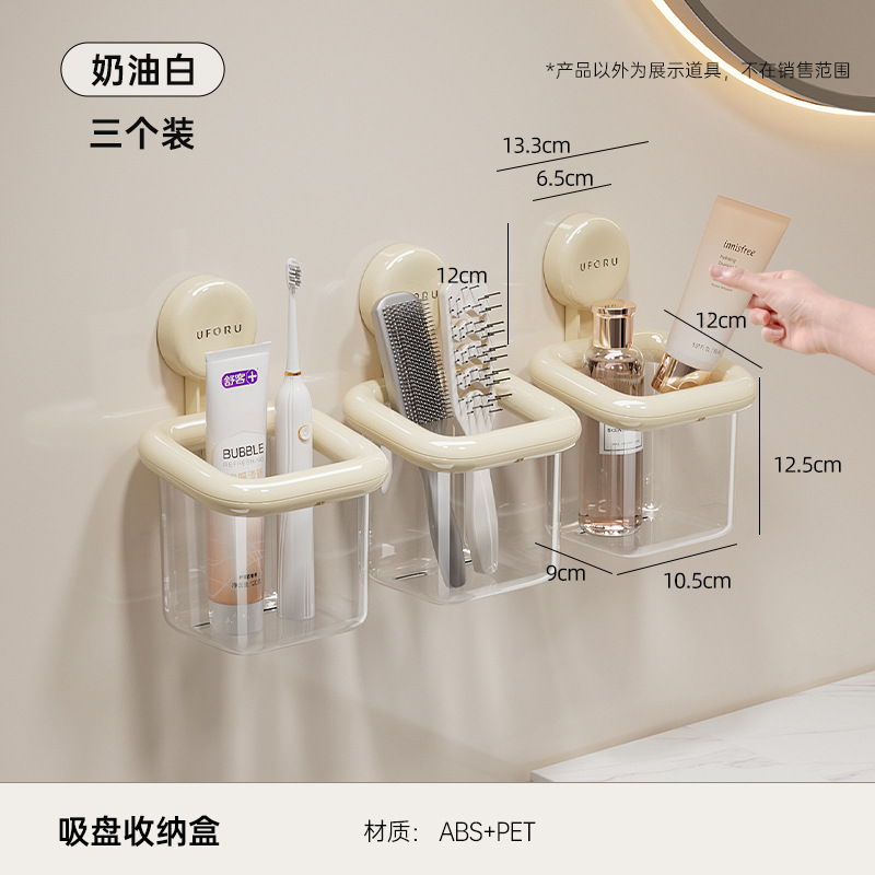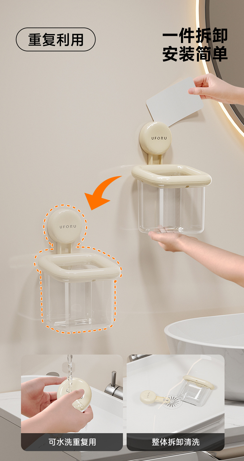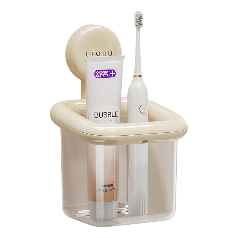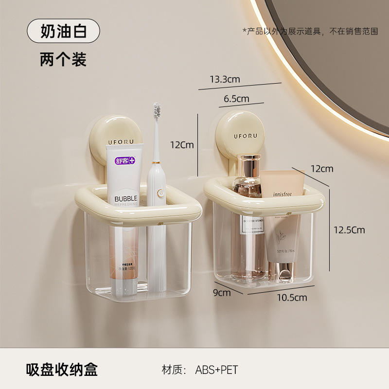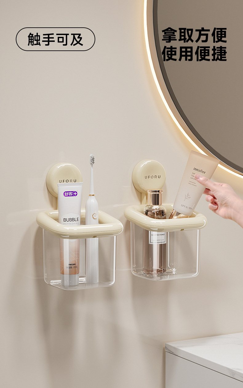 牙刷置物架家用壁挂式免打孔吸盘卫生间高端多功能透明收纳盒塑料