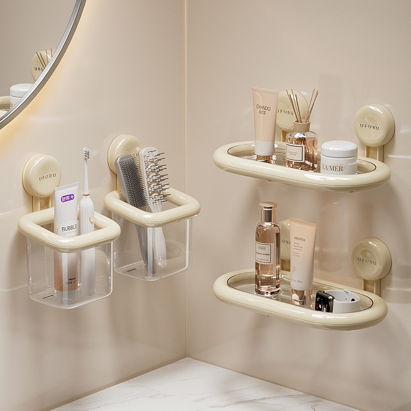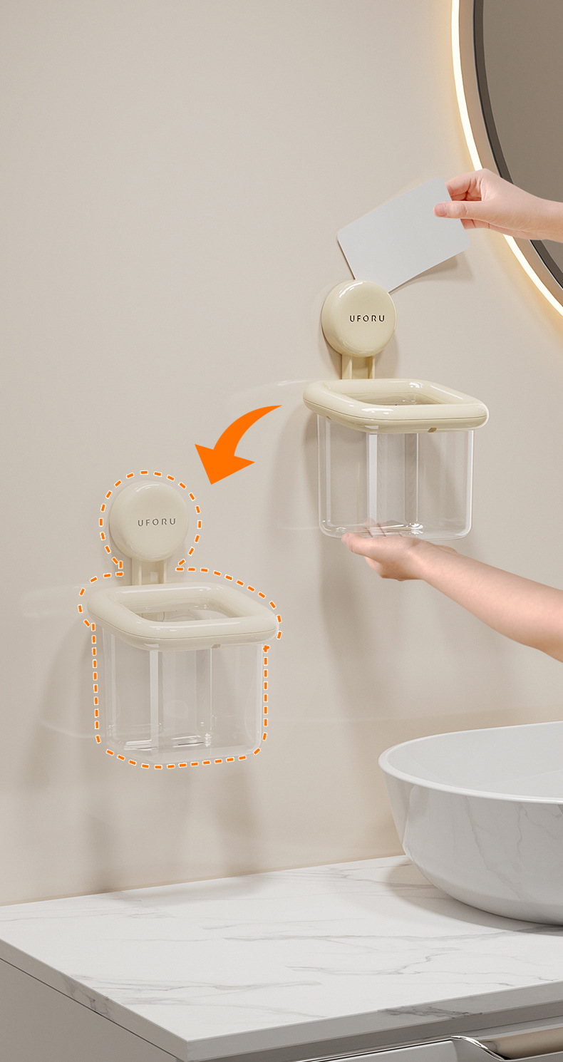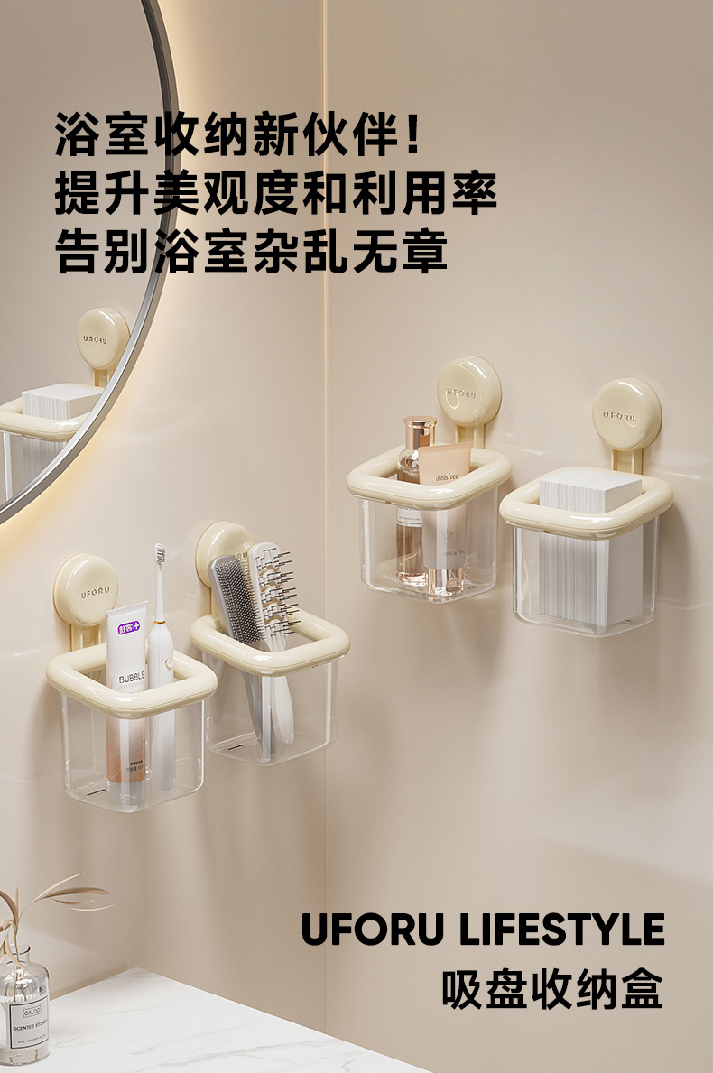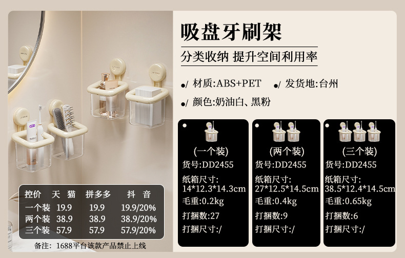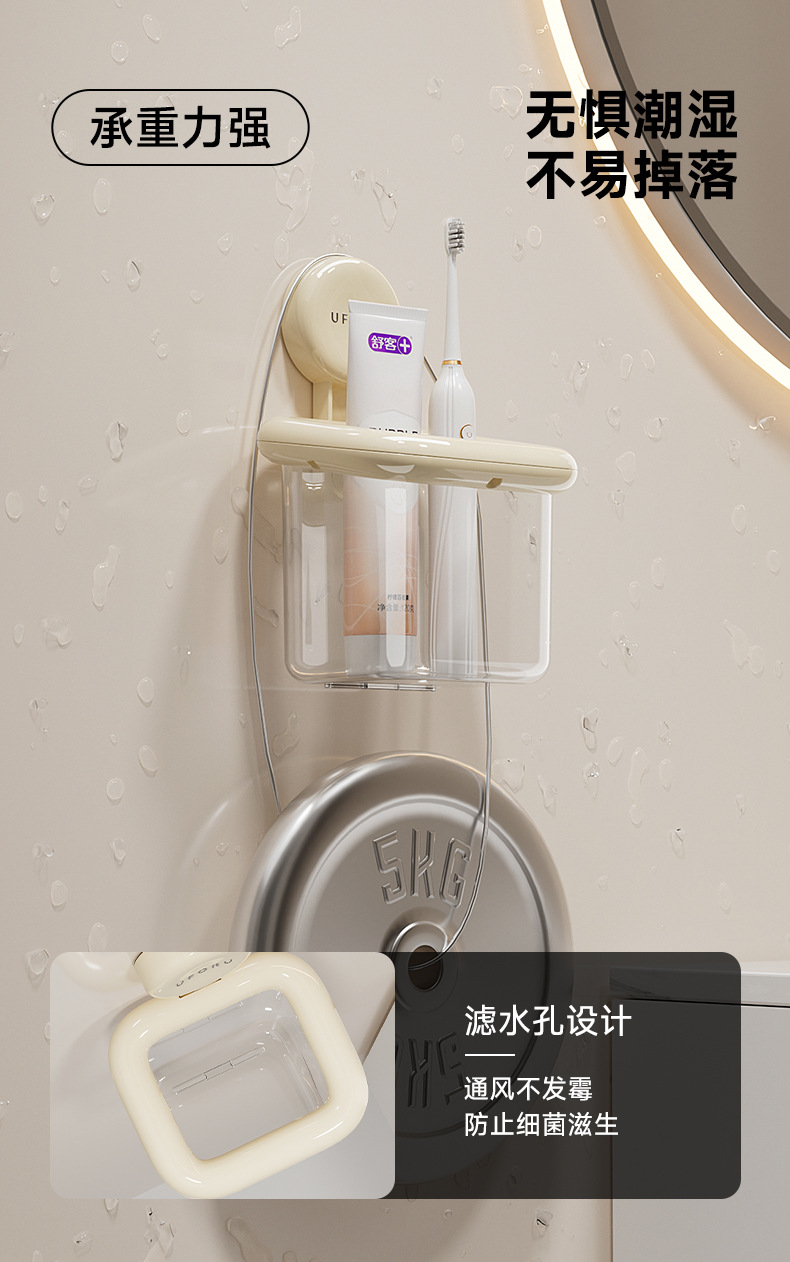 牙刷置物架家用壁挂式免打孔吸盘卫生间高端多功能透明收纳盒塑料