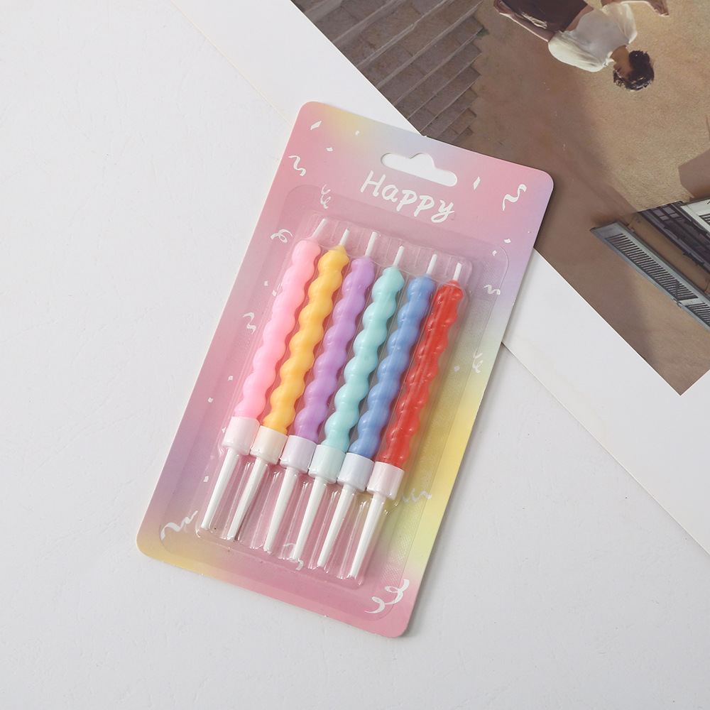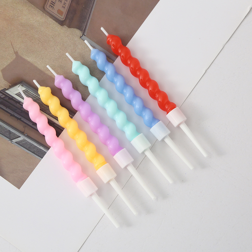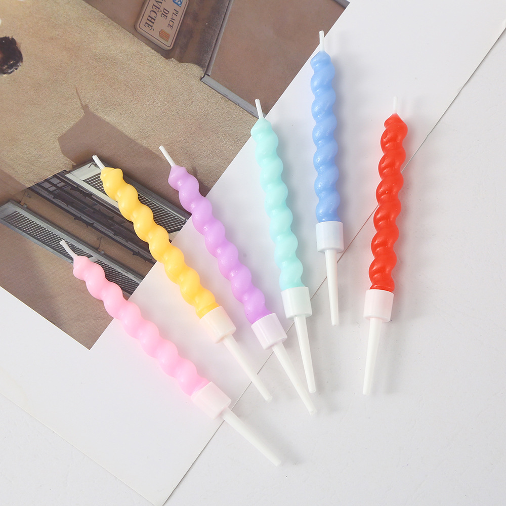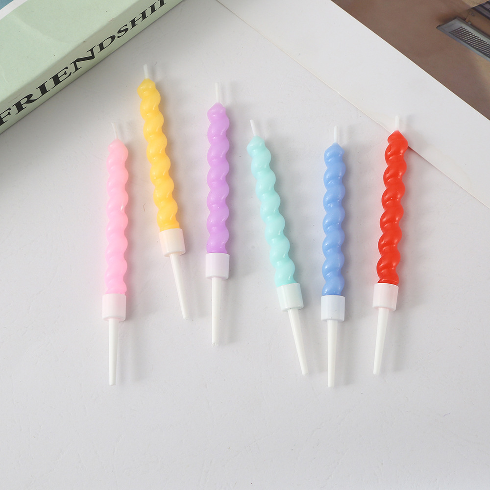 扭扭螺纹生日蜡烛彩色马卡龙可爱弯曲螺旋蜡烛蛋糕烘焙装饰插件