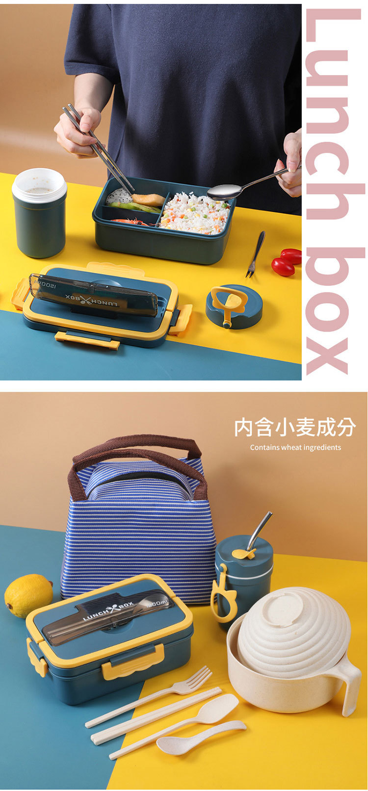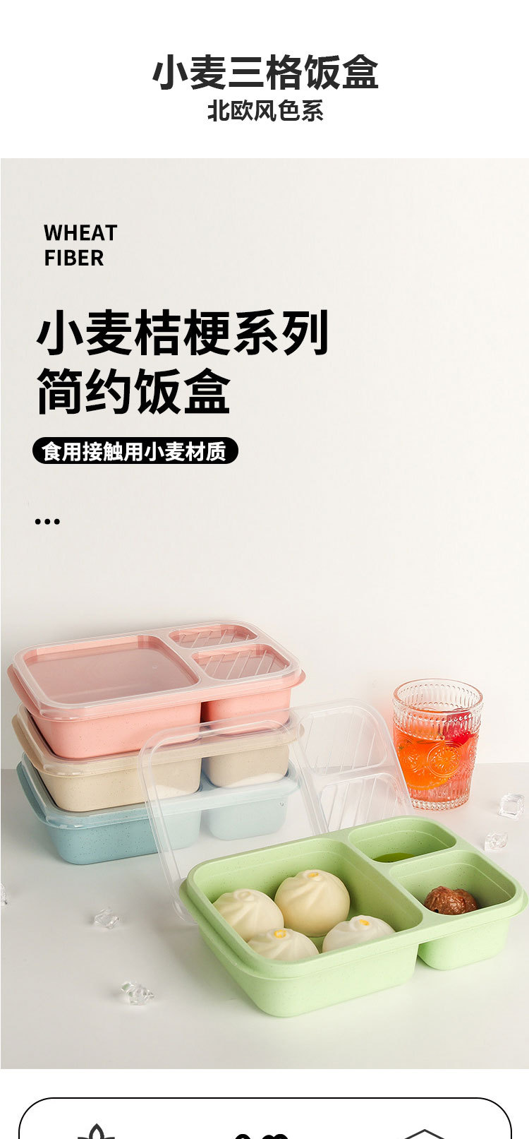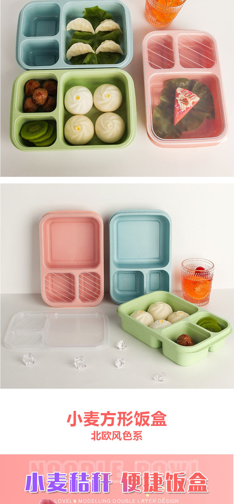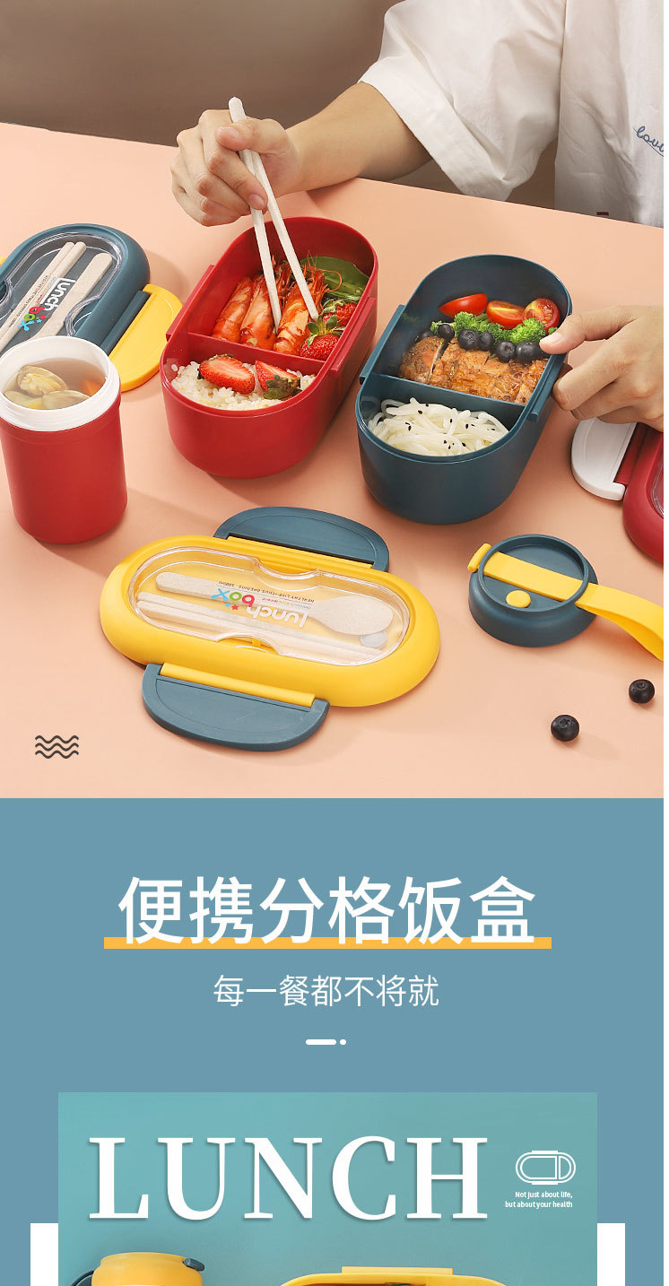 小麦秸秆饭盒上班族学生专用便携式便当盒多格保温日式餐盒微波炉
