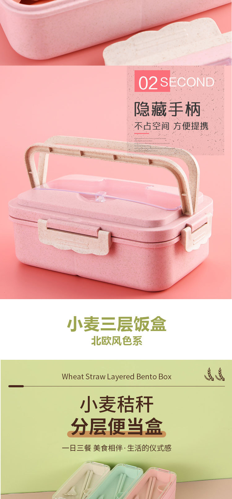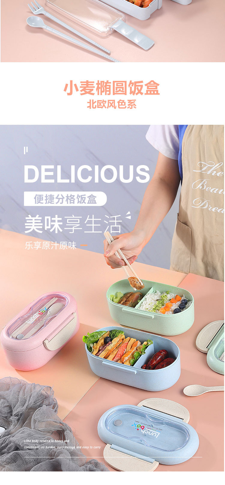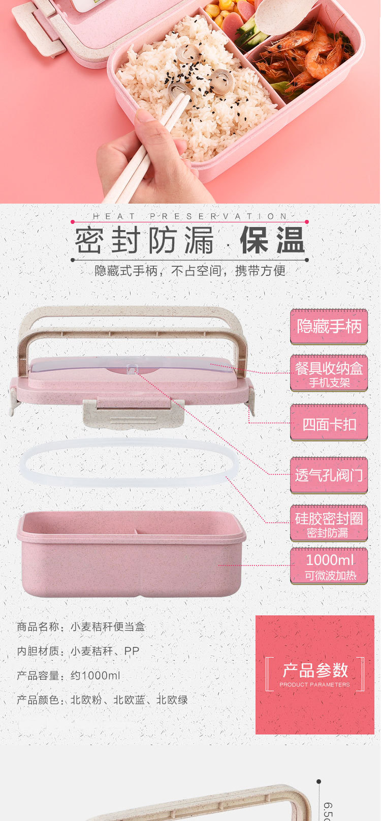 小麦秸秆饭盒上班族学生专用便携式便当盒多格保温日式餐盒微波炉