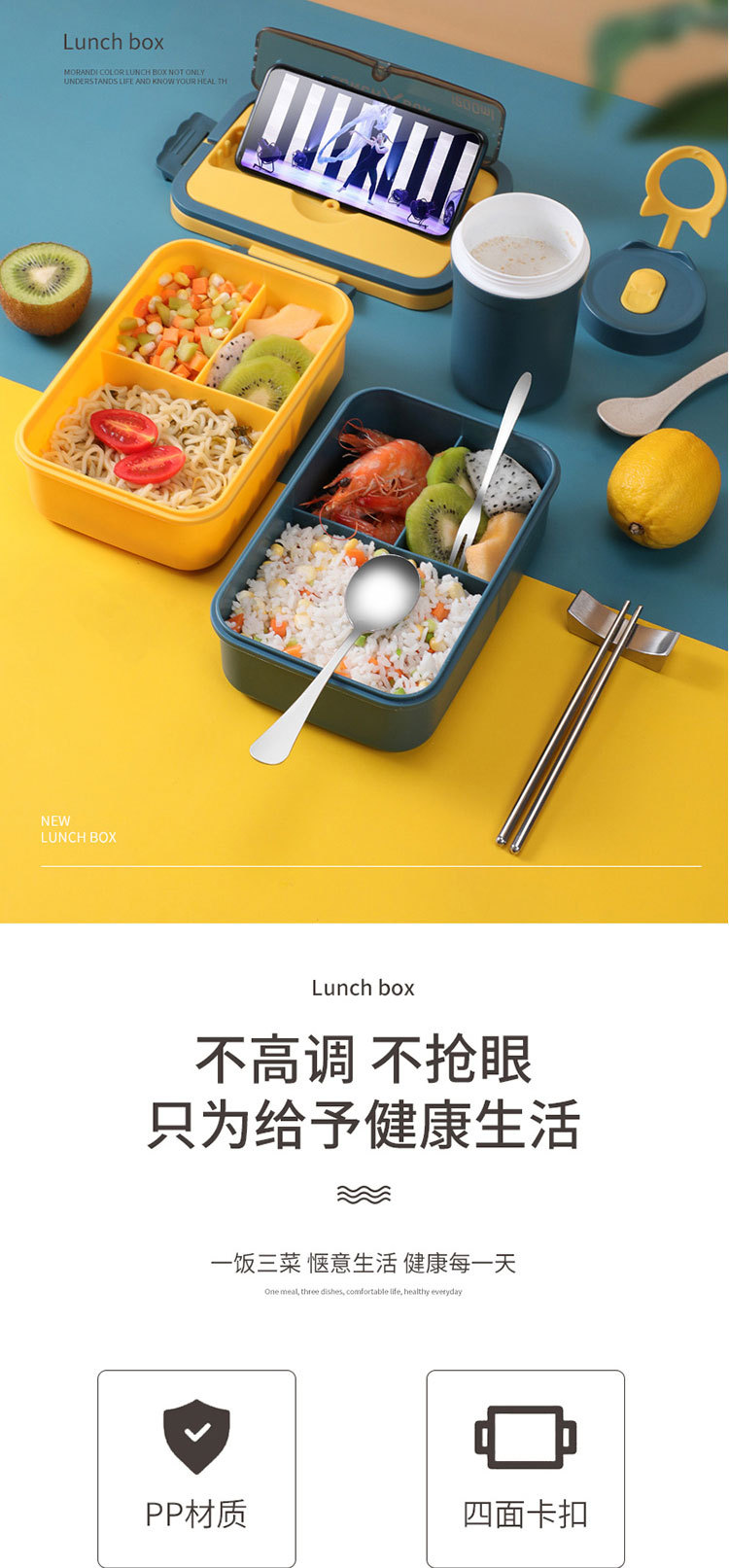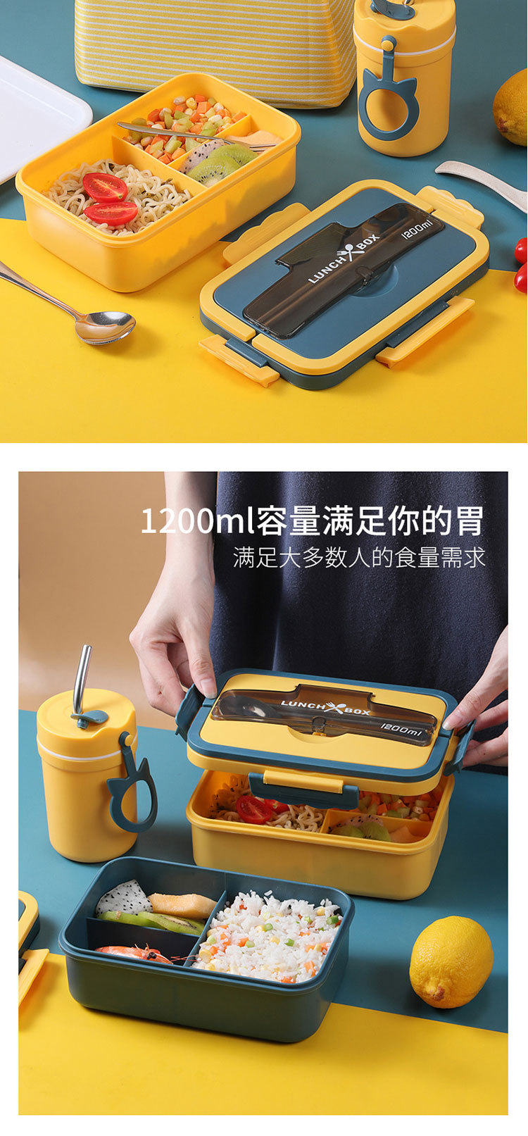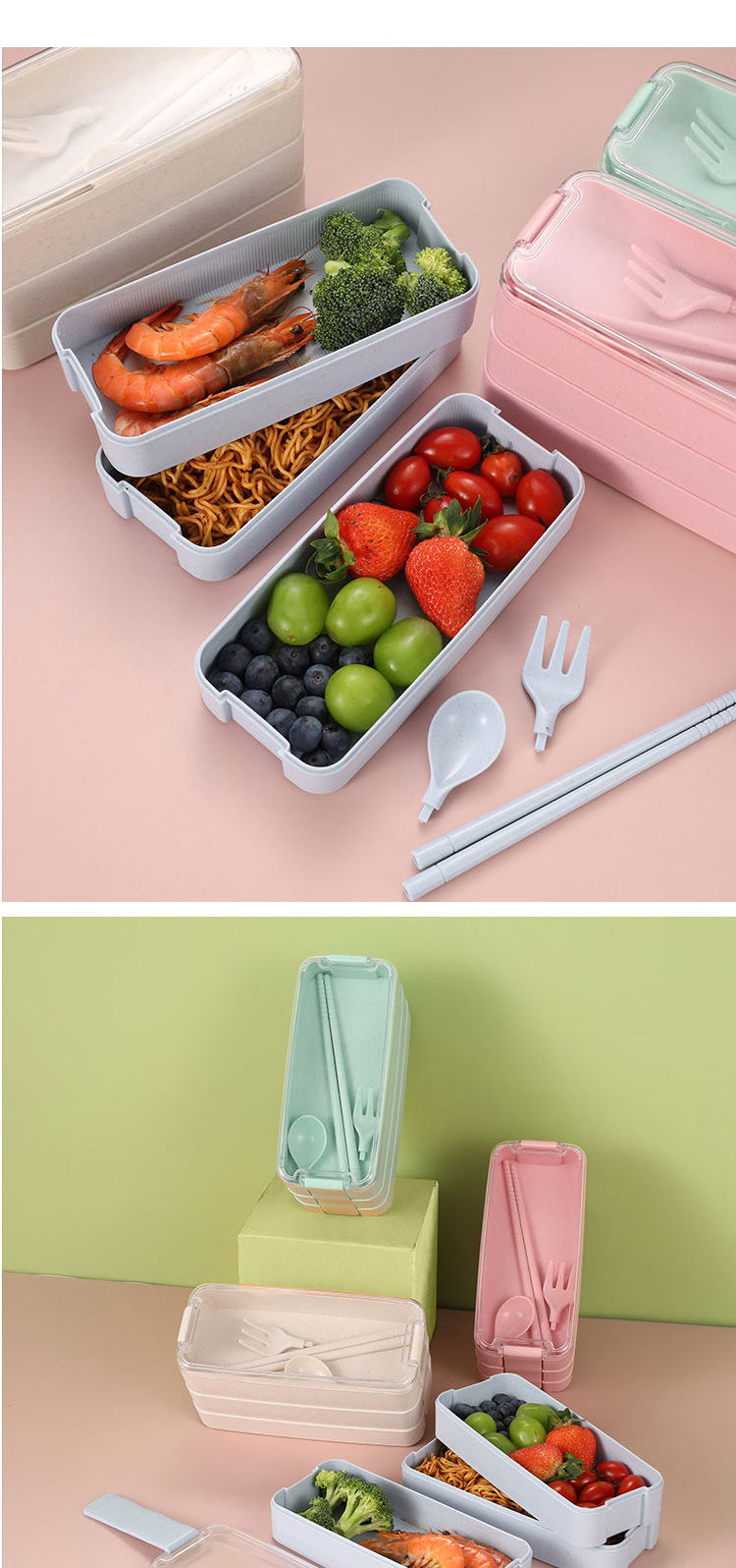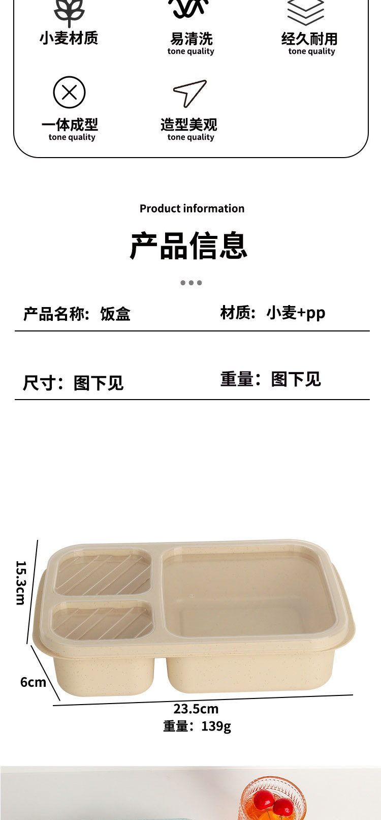 小麦秸秆饭盒上班族学生专用便携式便当盒多格保温日式餐盒微波炉