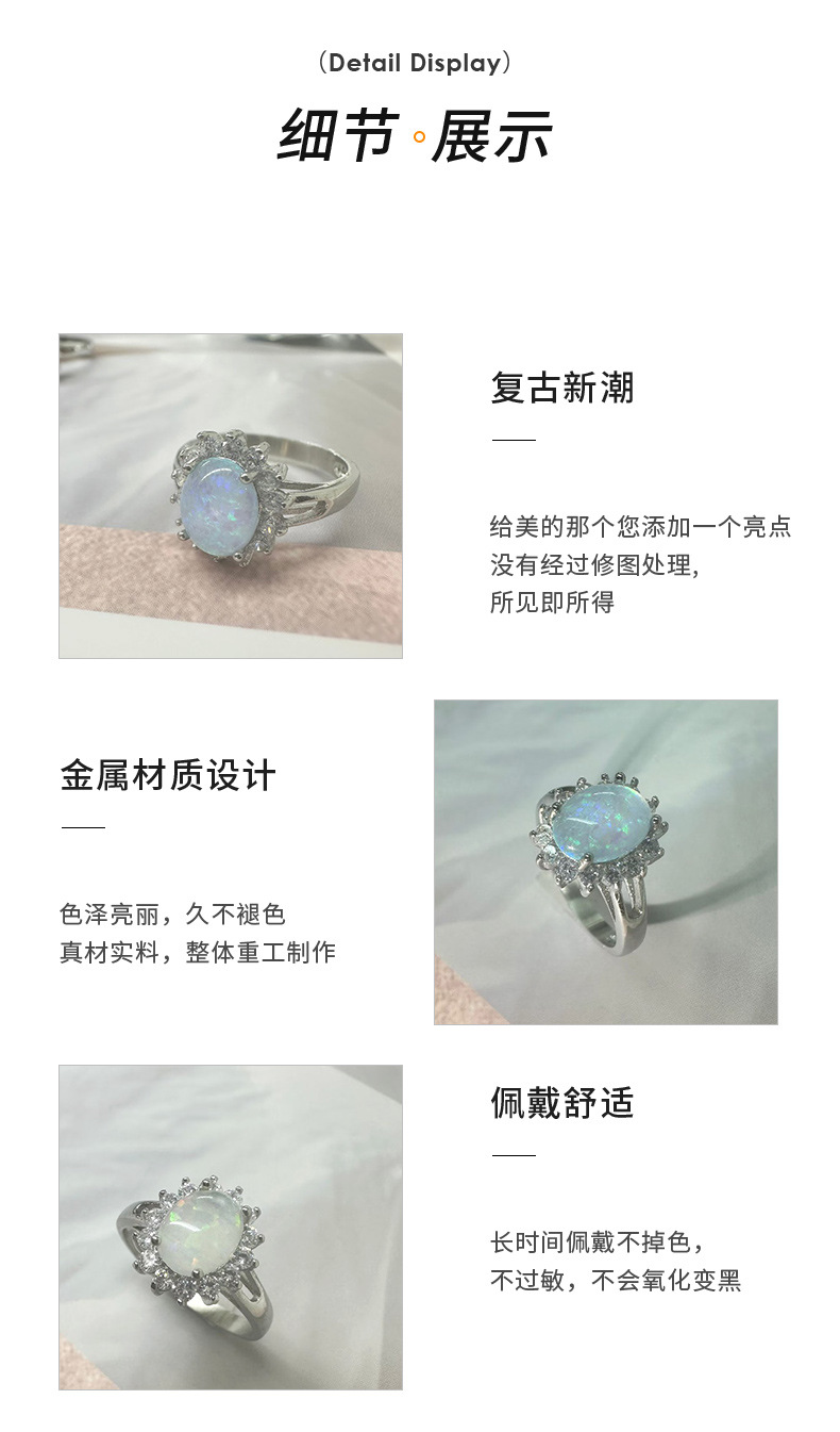 欧美饰品不锈钢镶钻太阳花戒指圆形澳宝时尚简约钛钢戒指女新款