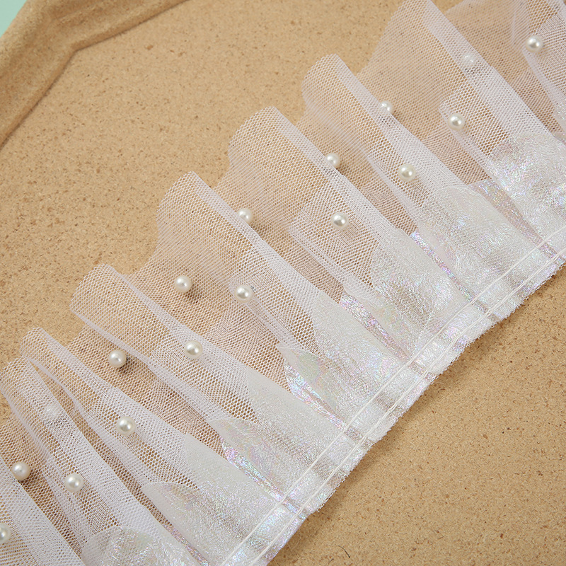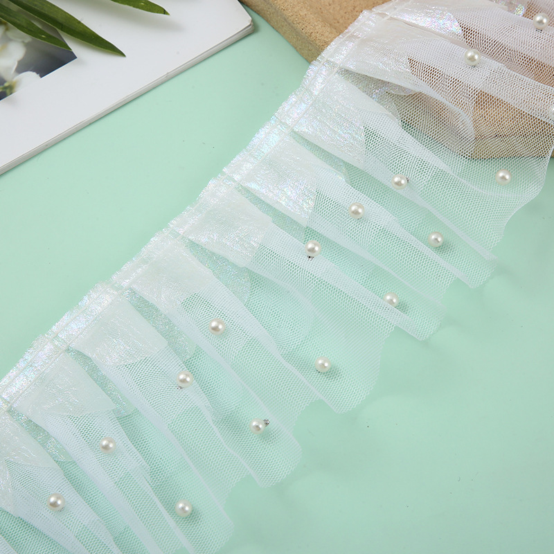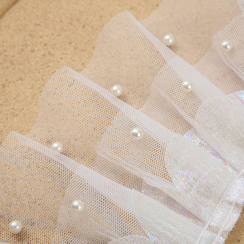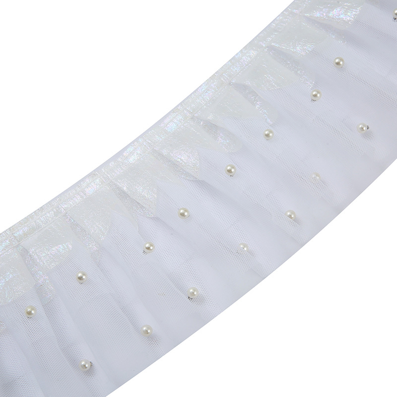 新款波浪边丝带镶珍珠花边白色丝带多层纱带 婚纱礼服饰品配饰