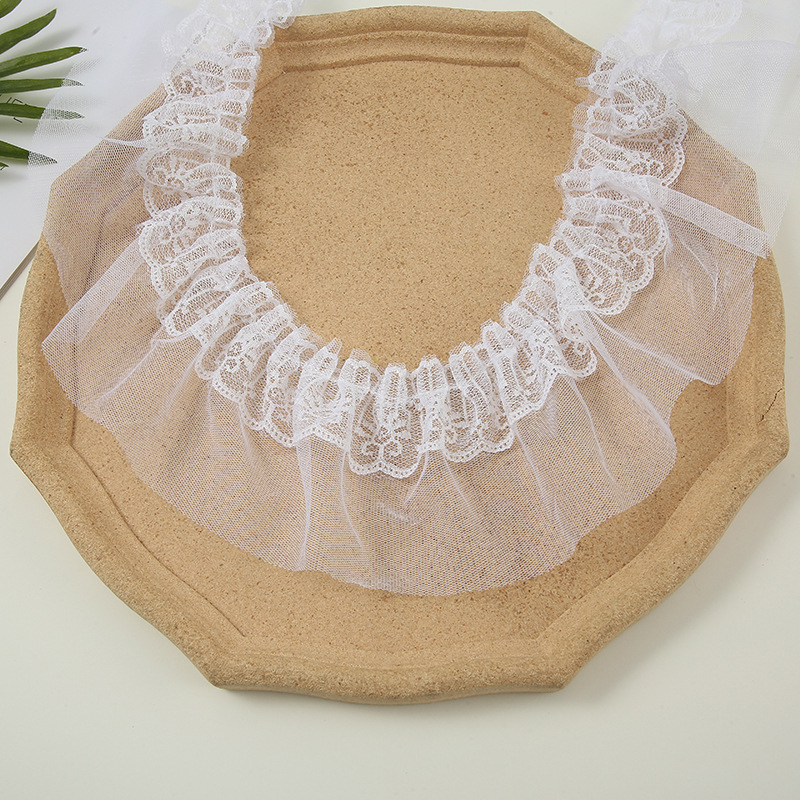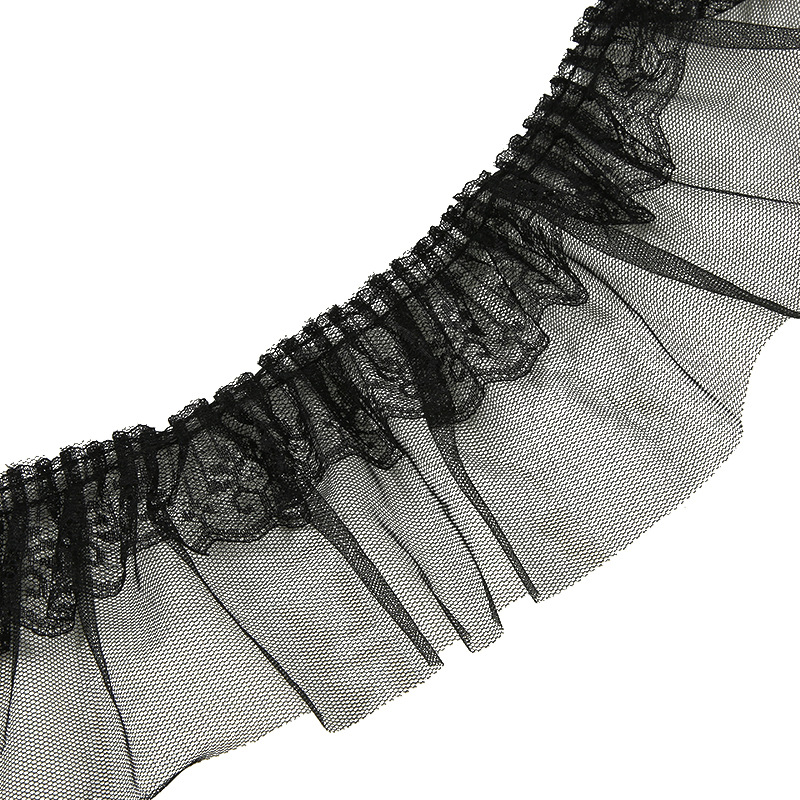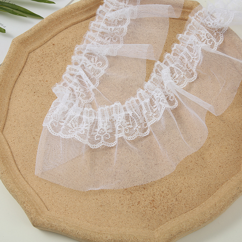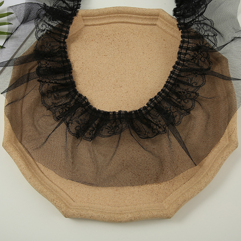 现货百褶丝带双层蕾丝花边洛丽塔黑白色木耳边弹力松紧带服装配件