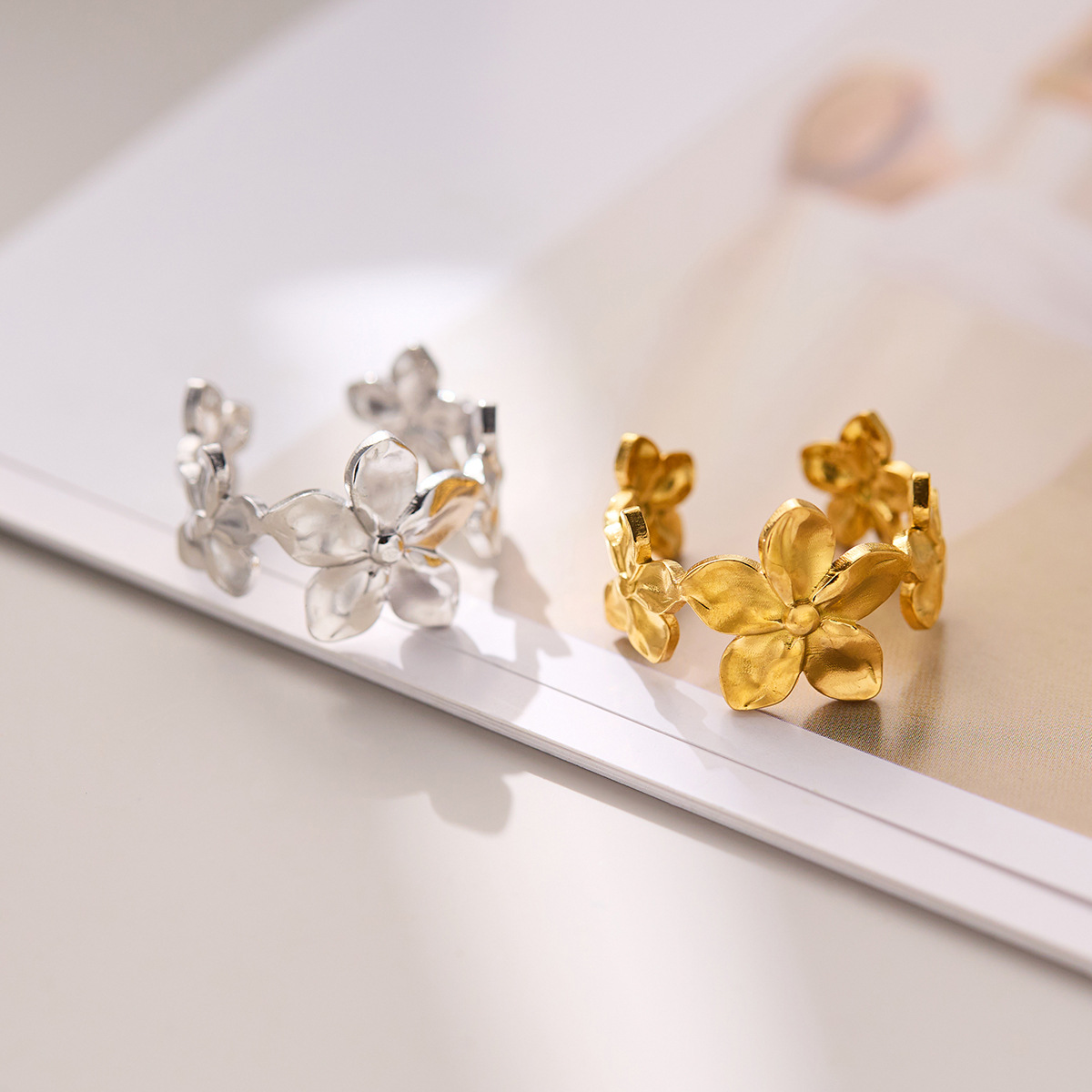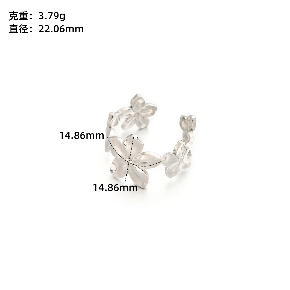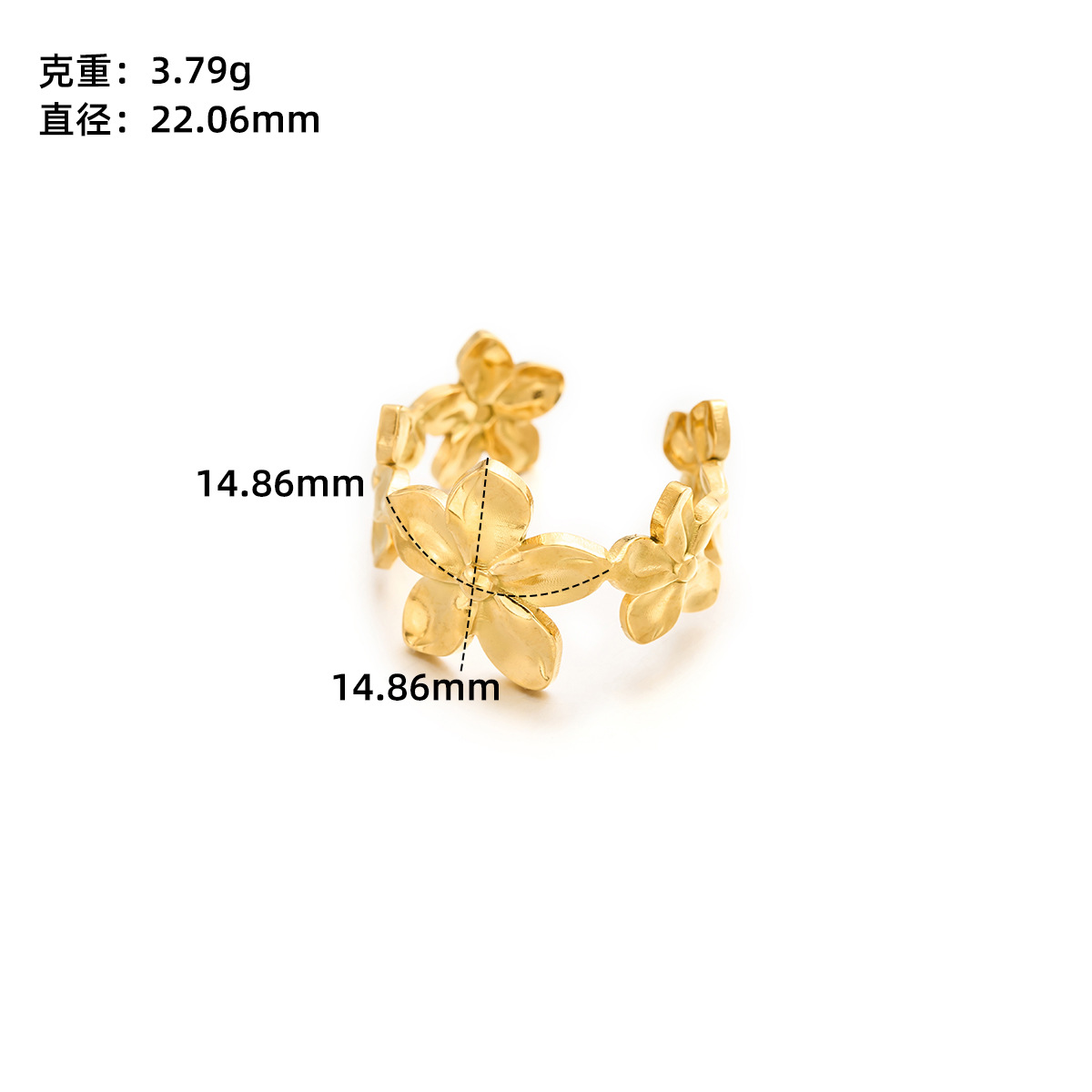 欧美跨境时尚个性紫荆花朵钛钢戒指女开口简约指环保色镀金