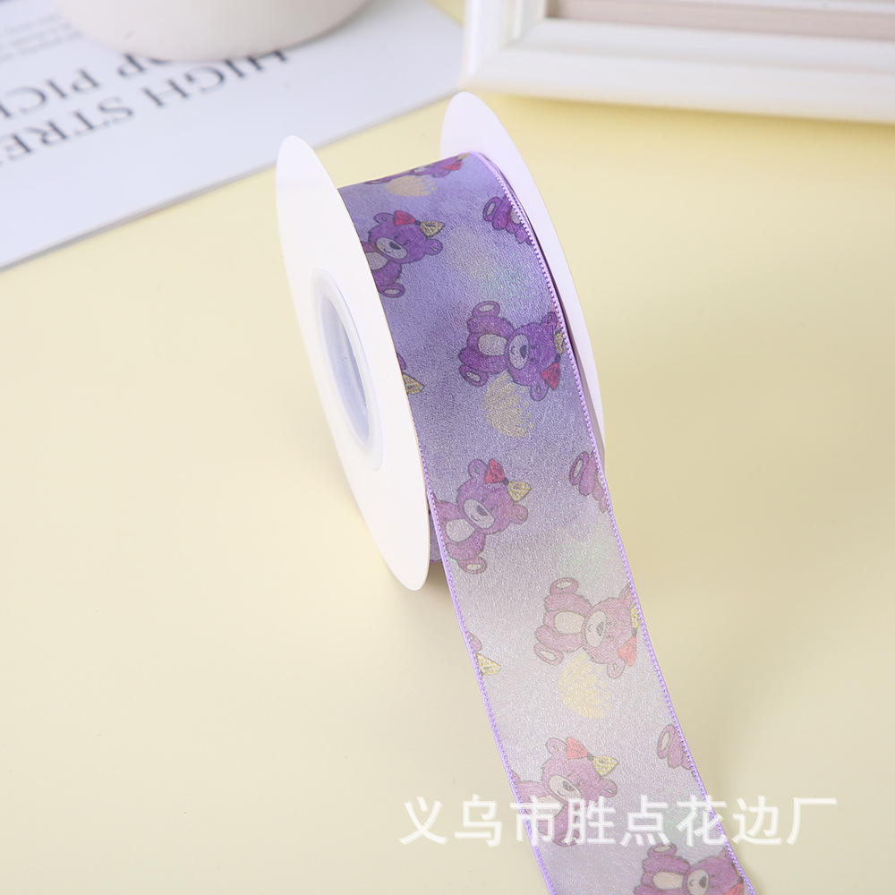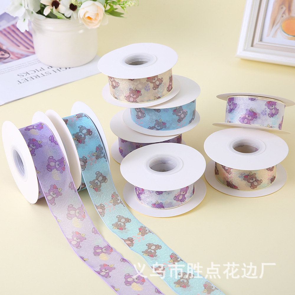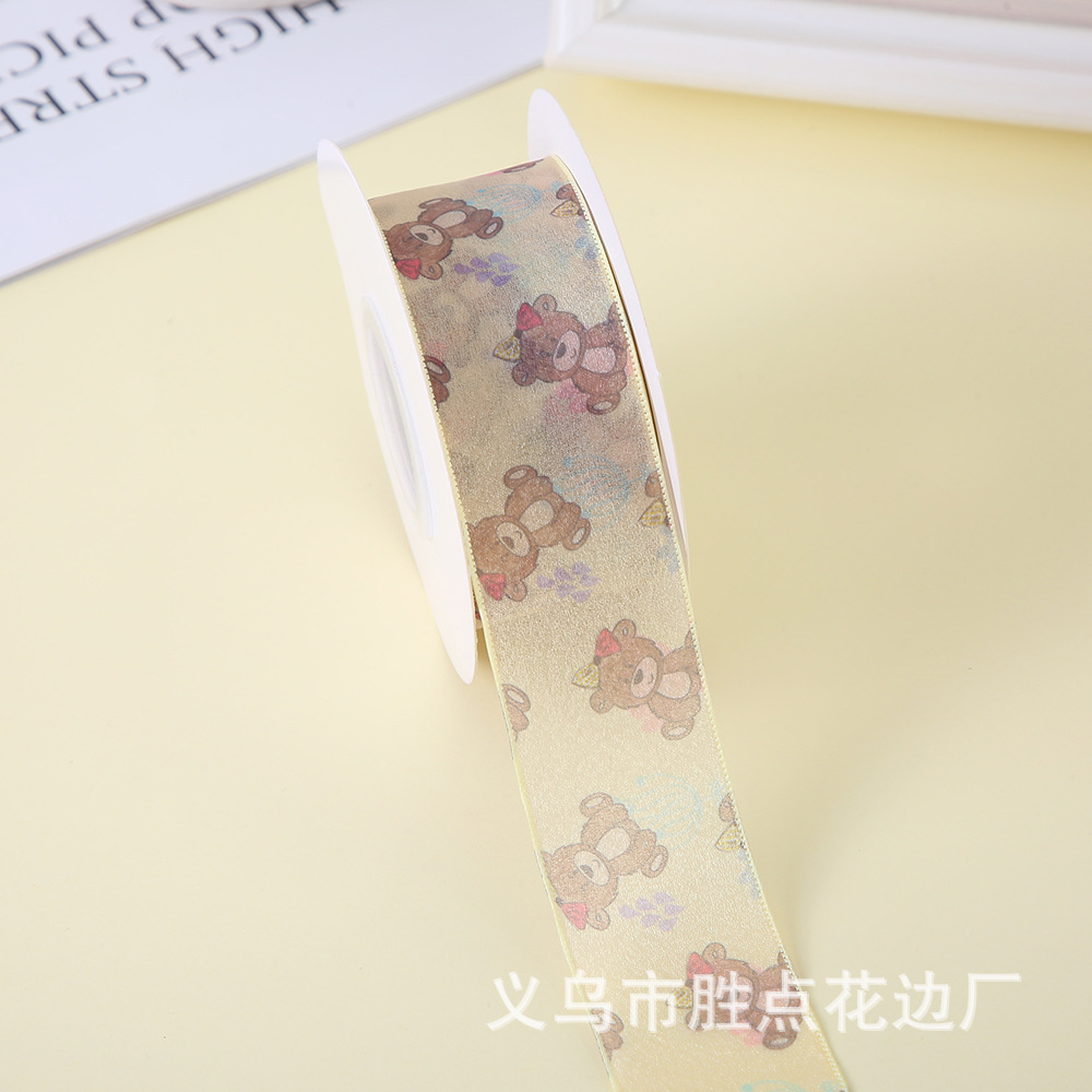 跨境半透明卡通小熊印花丝带DIY蝴蝶结花艺礼品包装缎带家纺装饰