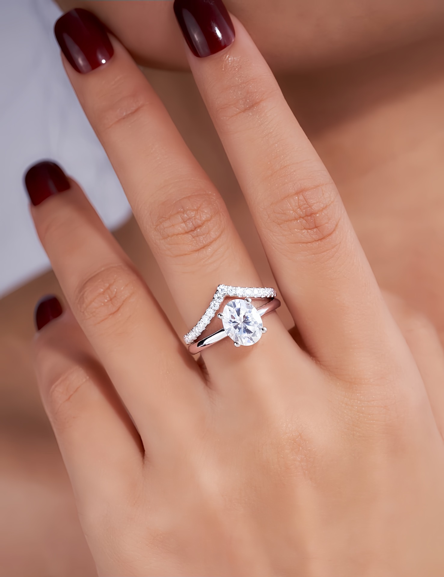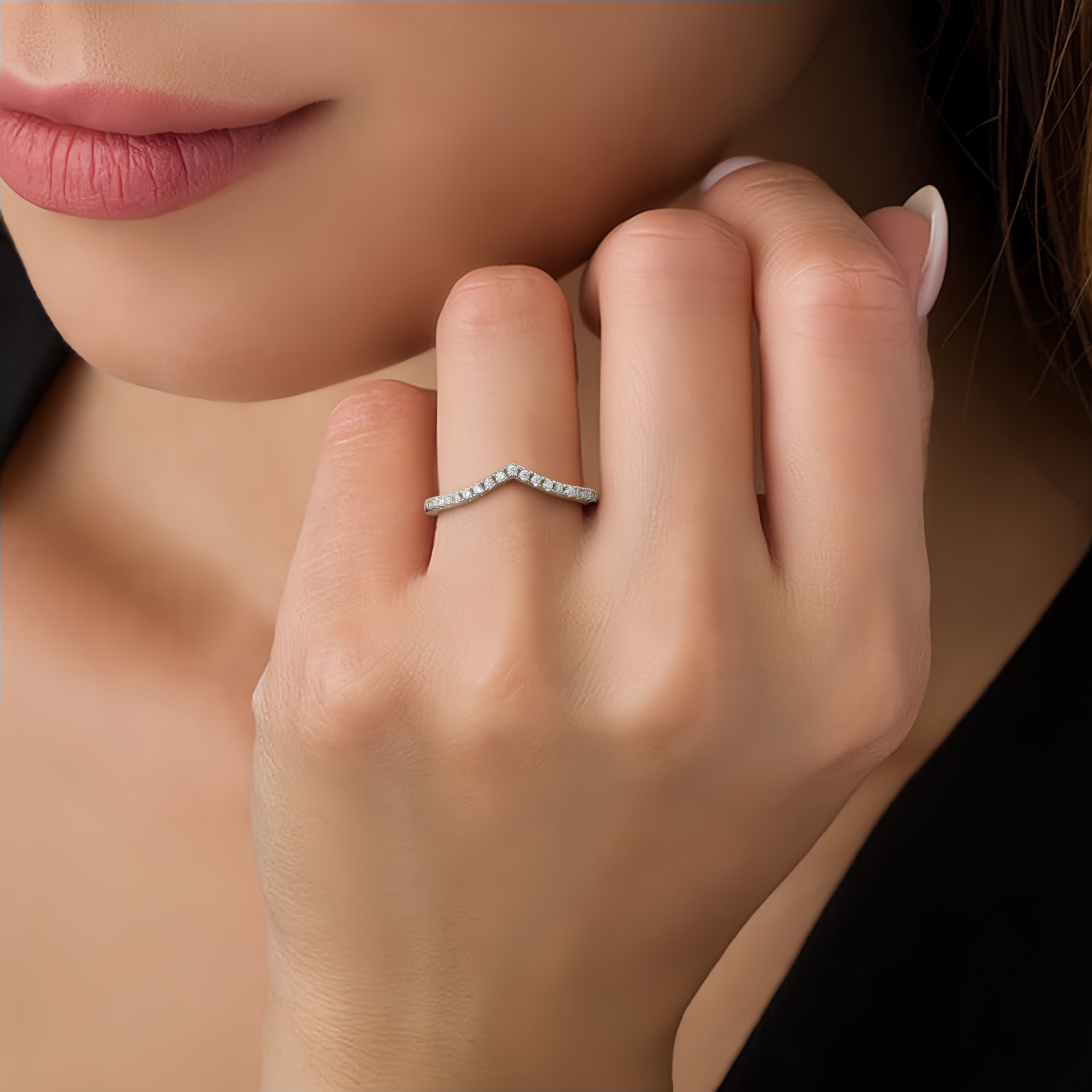 跨境亚马逊爆款超闪镶钻V形排戒简约时尚设计感高级轻奢潮流戒指