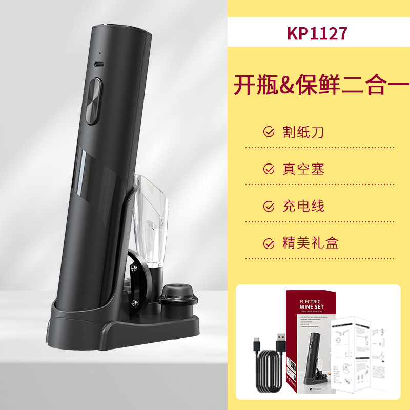 科力通红酒电动开瓶器底座套装礼盒便携式红酒酒具电动开瓶器套装