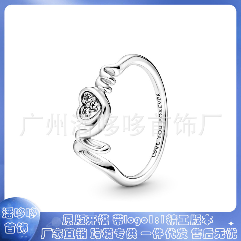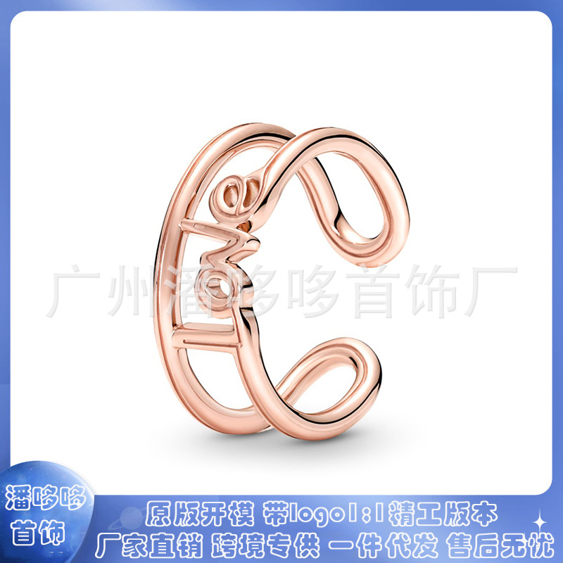 潘家多拉925白铜镀银2022母亲节新款指环diy配件mm双爱心戒指女